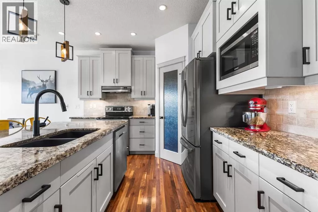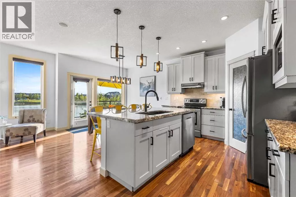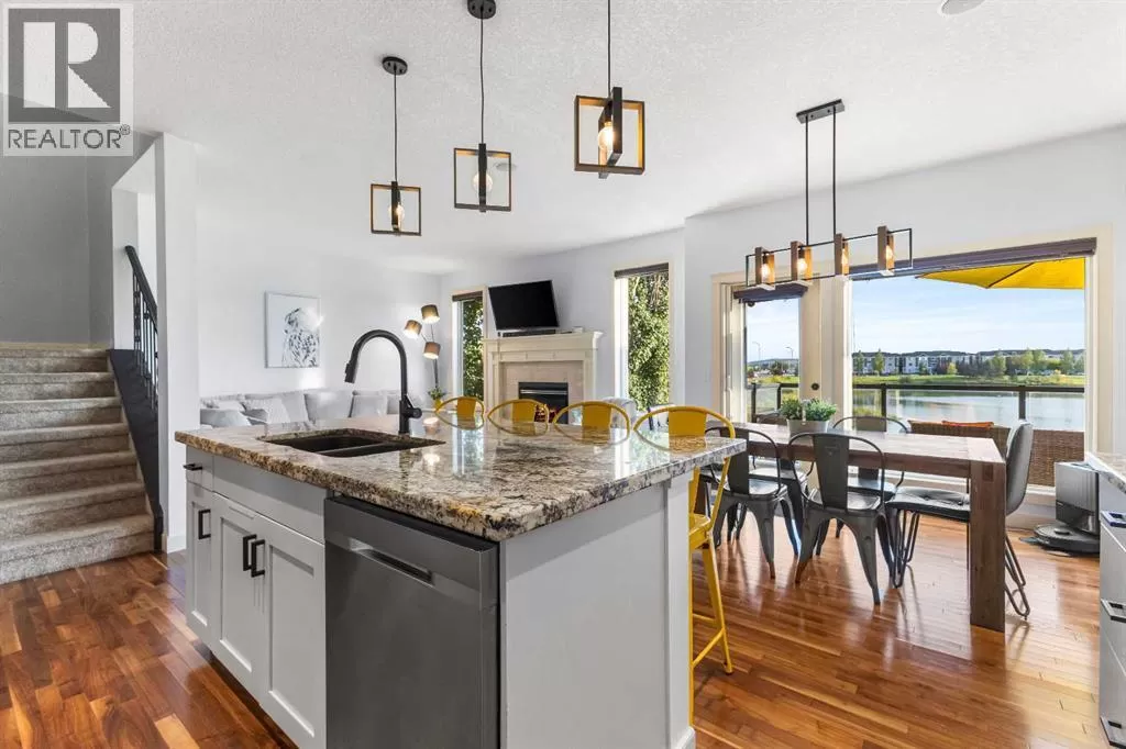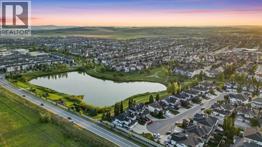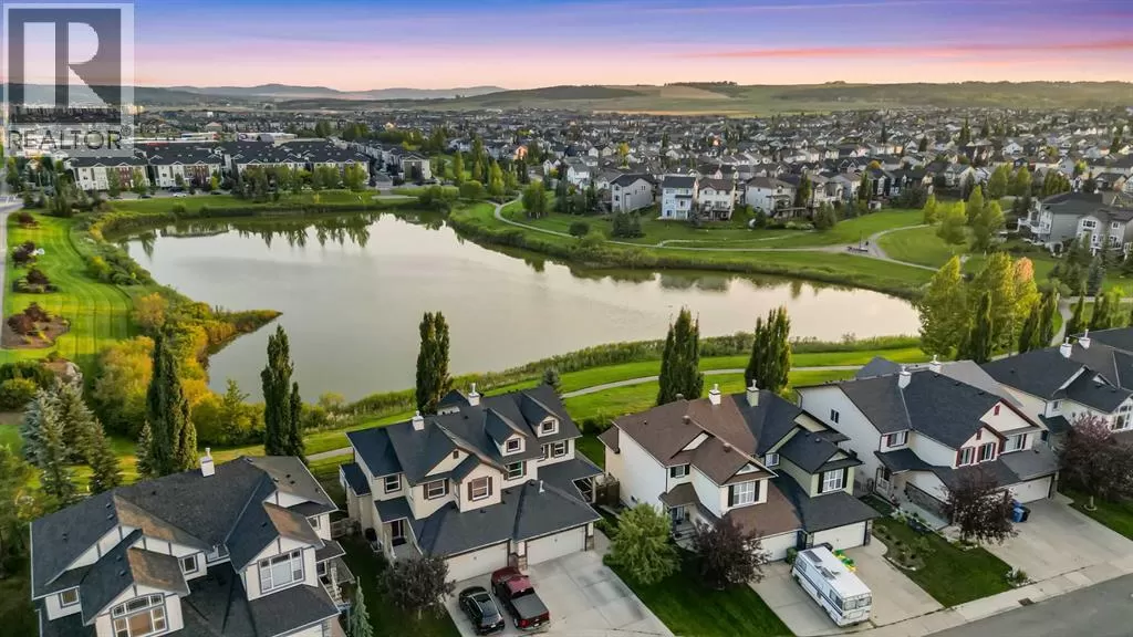 Welcome to 444 Silverado Range Place SW, a stunning family home set on a quiet cul-de-sac in the heart of Silverado. The front porch makes an immediate impression, opening to 9-foot ceilings, walnut hardwood floors, and a bright front office with French doors. At the heart of the main level, a custom travertine fireplace adds character, while oversized windows capture sweeping views of Silveradoâs most scenic green space.The kitchen is both functional and elegant, featuring granite countertops, a large island, corner pantry, new appliances, and under-cabinet lighting. The dining area opens to an oversized patio with glass panel railing, a convenient BBQ nook tucked around the corner, and unobstructed south-facing backyard views.Upstairs, teardrop wrought iron railing and plush carpet lead you to a comfortable family room filled with natural light. Two spacious bedrooms, each with large closets, provide ample room for family or guests. The primary suite is a true retreat, featuring a walk-in closet and a spa-inspired en-suite with an oversized soaker tub, a separate shower, a private toilet room, and dual vessel vanity sinksâall while capturing the most spectacular views of âSilverado Pondâ right from your bedroom. The fully developed walkout basement continues the tour with upgraded finishings, a second gas fireplace, an additional bedroom, bathroom, and direct access to the landscaped yard, complete with a mature pear tree and irrigation system.This home is filled with thoughtful upgrades, including custom Hunter Douglas blinds, designer light fixtures, a heated garage with epoxy flooring, central A/C, central vac, dual-zone climate control with a separate furnace for the basement, a water softener, and fresh paint throughout. A new roof and siding (2023) and a hot water tank (2022) provide peace of mind for years to come.Backing directly onto a green space with parks, pathways, and one of Silveradoâs most picturesque ponds, this home combines comfort, cr aftsmanship, and truly an unbeatable location. (id:27476)