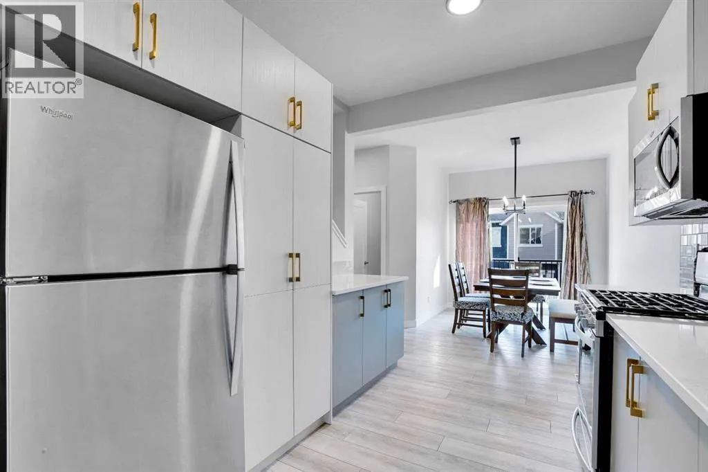 Welcome to your almost brand-new three-story townhouse nestled in the exclusive community of Tuscany. Backing onto a natural area, and there is no neighbor on the back of your house. This property is the most upgraded unit in the project and offers the perfect blend of tranquility and convenience. The main level includes a magnificent kitchen with an abundance of cabinetry, ensuring there's a place for everything. Your inner chef will rejoice with modern two-tone close cabinetry, complemented by sleek quartz countertops and stainless steel appliances, and a Chef loved Gas Stove. Luxury vinyl flooring adds a touch of elegance to the entire main floor and provides comfort throughout. Step onto the good-sized balcony to enjoy morning coffee or evening sunsets from a full wall-sized window in the dining room. The upper level features a generously sized second room and convenient laundry space, along with a large main bathroom. Retreat to the master bedroom, complete with an en suite featuring fully upgraded standing shower with times and double closets. We have upgraded and added future electrical and mechanical tie-ins for the ceiling fan to both bedrooms and also the living room if the new owners wish to install them. Access to Tuscany amenities - community centre, splash park, walking paths, and ravines. Quick access to C-Train, Stoney Trail, and Crowchild Trail. Minutes to the mountains, Cochrane, inner city, south Calgary. Many major roadways, including Stoney Tr, Highway 1A , and many more. Minutes to shopping, restaurants, and services. (id:27476)