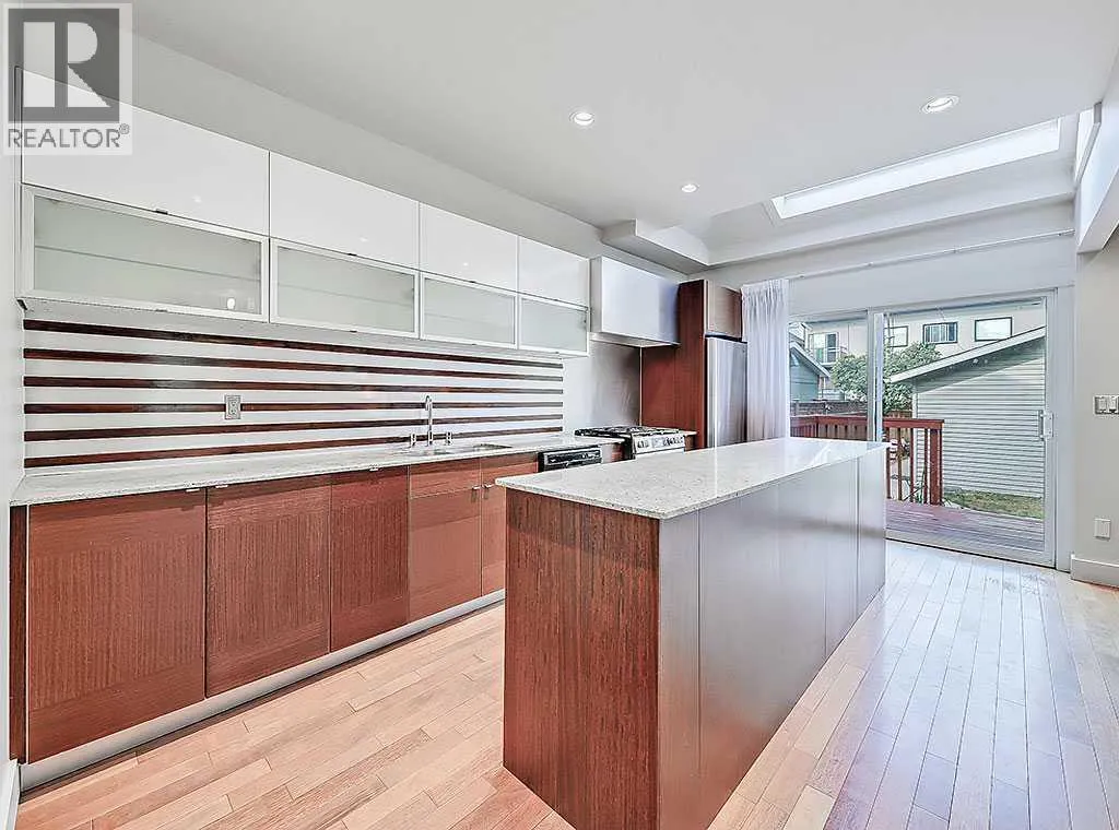 Blending the timeless character of a century home with the comforts of modern living, this beautifully maintained family residence is sure to impress even the most discerning buyer. From its striking curb appeal and inviting front porch to the professionally updated interior. Offering nearly 2,300 sq. ft. of living space across three levels, the home features an open, light-filled layout with three spacious bedrooms. The main floor is designed for both family living and entertaining, showcasing a gourmet kitchen complete with stainless steel appliances, a gas range, and a massive granite island. The adjoining dining and living areas flow seamlessly to a large deck overlooking the sunny west-facing backyard with a heated double detached garage. Upstairs, the primary retreat boasts vaulted ceilings, a skylight that bathes the space in natural light, an inspired 4-piece ensuite, and a walk-in closet. Two additional generously sized bedrooms and a full bathroom complete the upper level. The fully developed lower levelâaccessible from the main floor or a private side entranceâoffers a versatile family room with a wet bar/kitchenette, recreation area, laundry, 3-piece bathroom, generous storage, and a flex room that could easily serve as a fourth bedroom. Additional highlights include a newer furnace and hot water tank. Located in the heart of the inner city on one of the nicest streets Bankview has to offer, this home is just steps from vibrant 17th Avenue with its boutique shops and restaurants, close to excellent schools, and minutes from downtown. (id:27476)