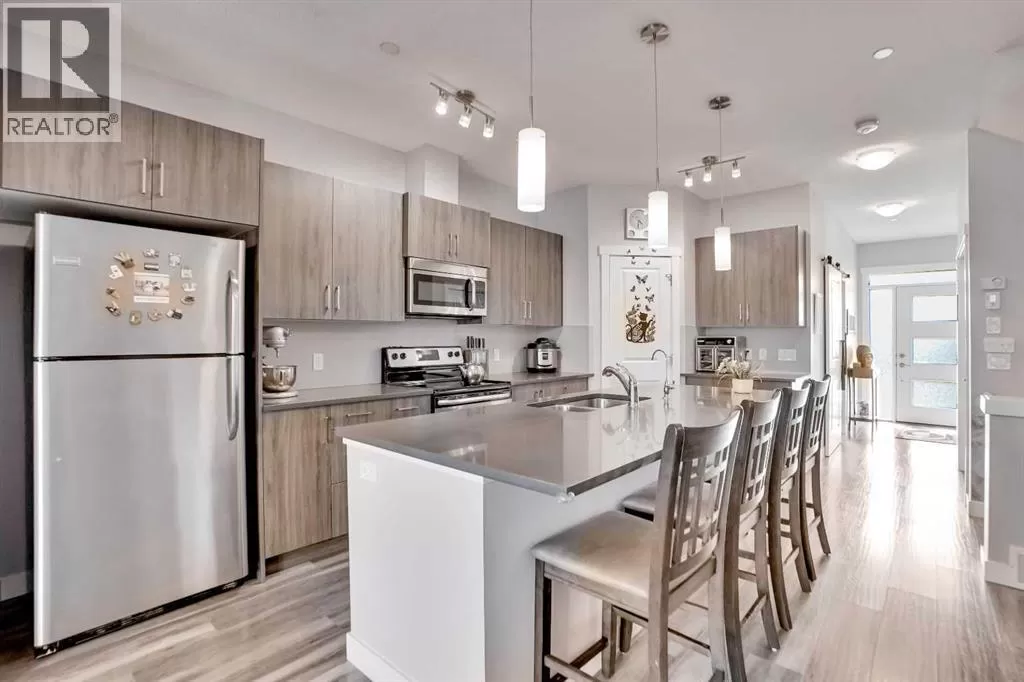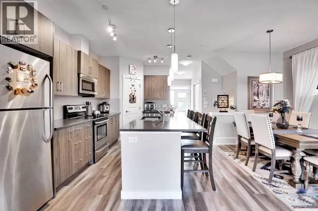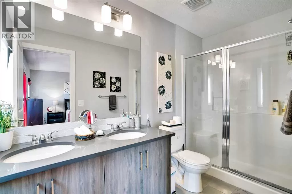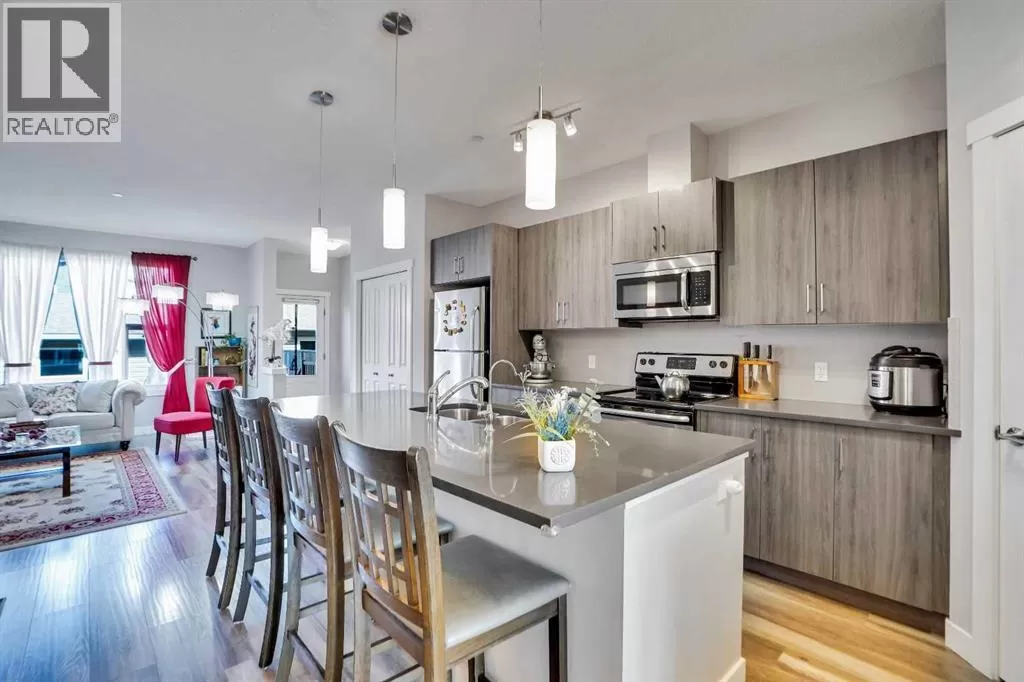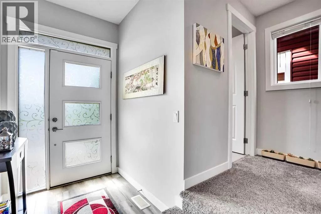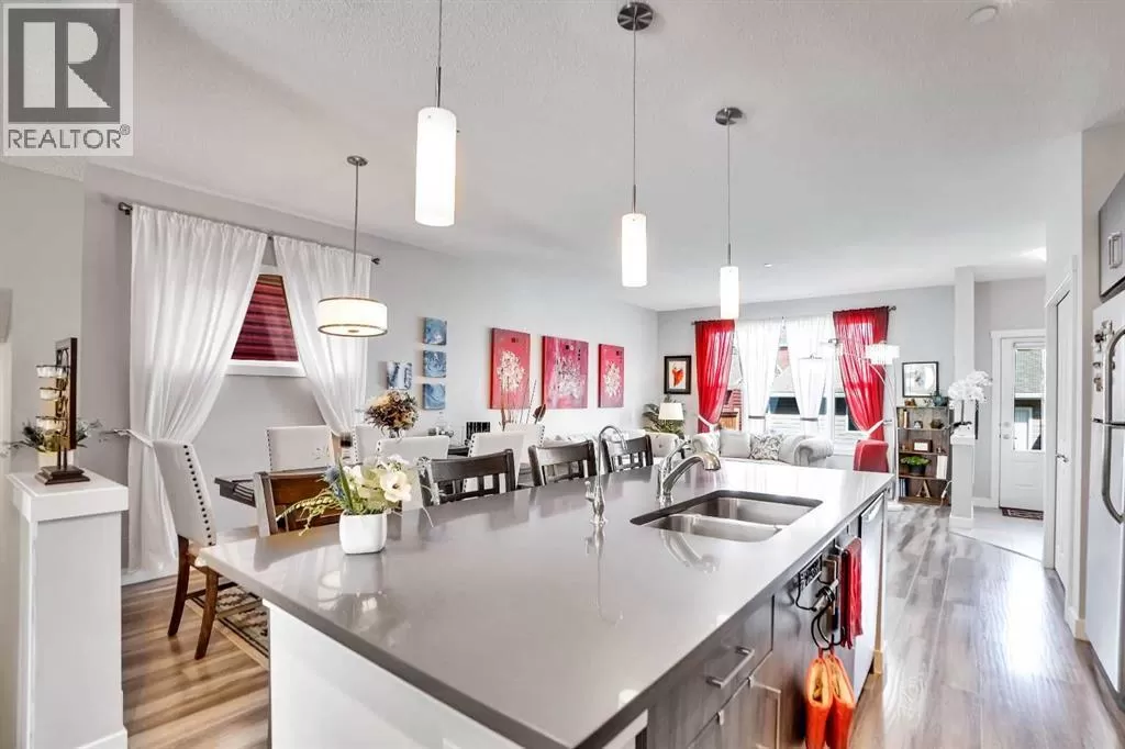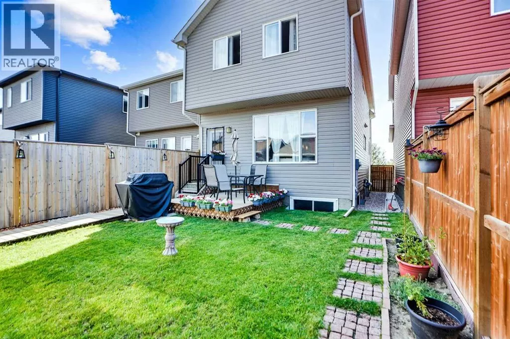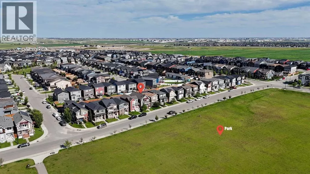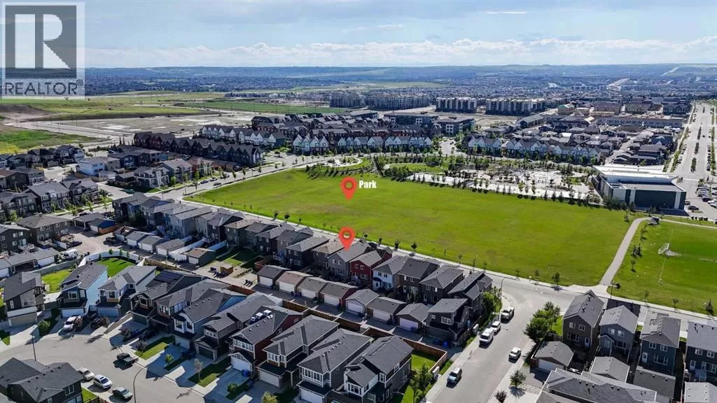 Seller negotiable. Immaculate, original owner, Brookfield built home. It is the perfect blend of style, comfort, and functionality. Pride of ownership is evident the moment you step inside. Perfectly located across from a serene green space with an unobstructed view, and a future school potential. Step inside and feel the difference. 9 foot ceilings with water sprinklers, rich Laminate flooring, and abundance of natural west facing light creating a warm and welcoming atmosphere. The thoughtfully designed main floor features a private front den, an elegant dining area, a stylish kitchen with quartz countertops and ample cabinetry, a spacious living room, and a guest bathroom, all creating a functional layout for every day living. Up the stairs and to the second floor, enjoy a central bonus room perfect for family movie nights or playtime. A generously sized primary bedroom with a 4- piece en-suite, a spacious walk-in closet, and a balcony overlooking green space to enjoy your morning coffee. Two more bright bedrooms, laundry and a second 3-piece bath. The unfinished basement offers an exciting potential for a future secondary suite subject to city approval and awaits your personal touch. Recent updates include a new roof and siding 2025, hot water tank 2022, and a double detached garage. Situated in a family friendly community with easy access to Stoney Trail, close to grocery stores, cafés, restaurants, and parks. This home is move-in ready and waiting for you. Don't miss your chance to own this exceptional home in a growing neighborhood. Go see it for yourself . (id:27476)