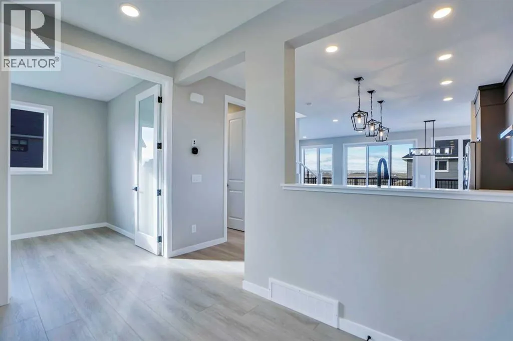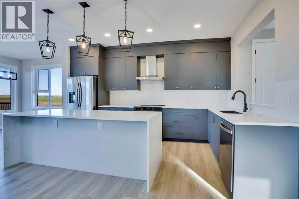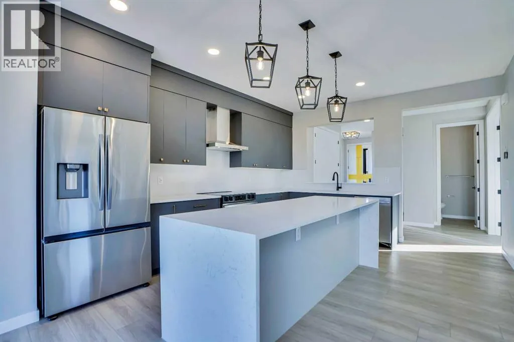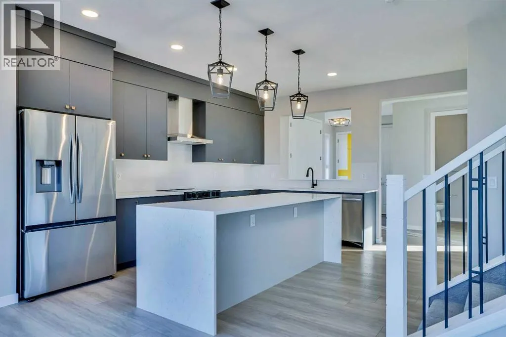 Experience modern luxury living in the Livingston area with the Collingwood model Excel home, featuring high-end finishes and a legal walkout basement suite. The unique exterior is a showstopper, complemented by a modern, functional design and contemporary finishings. Flooded with natural light, this home boasts beautiful finishings throughout. Located in the most sought-after part of Livingston, this excel-built home offers ample square footage and private views. Inside, a bright and spacious living room/dining room awaits, perfect for entertaining, alongside a chef's dream kitchen with upgraded stainless steel appliances, quartz counters, soft-close cabinetry, a chimney-style hood fan, a built-in microwave, and a spice kitchen. The functional floor plan includes a flex room, four bedrooms plus a bonus room on the upper level, ideal for family living. The primary bedroom features a 5-piece ensuite and large walk-in closets, while the other bedrooms share a 4-piece bath. A conveniently located laundry room is just off the bonus room. The custom-built home also includes a two-bedroom open-concept legal suite with stainless steel appliances, quartz counters, and in-suite laundry. Registered with the city, the suite meets all legal requirements, including separate furnace and water tank. Additional highlights include the Alberta New Home Warranty, a newly built deck, upgraded pot lights, and air conditioning. Nestled in Livingston's heart, this incredible home is minutes from major shopping centers. Enjoy the epitome of luxury living! (id:27476)