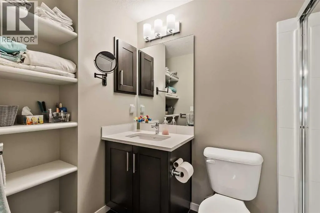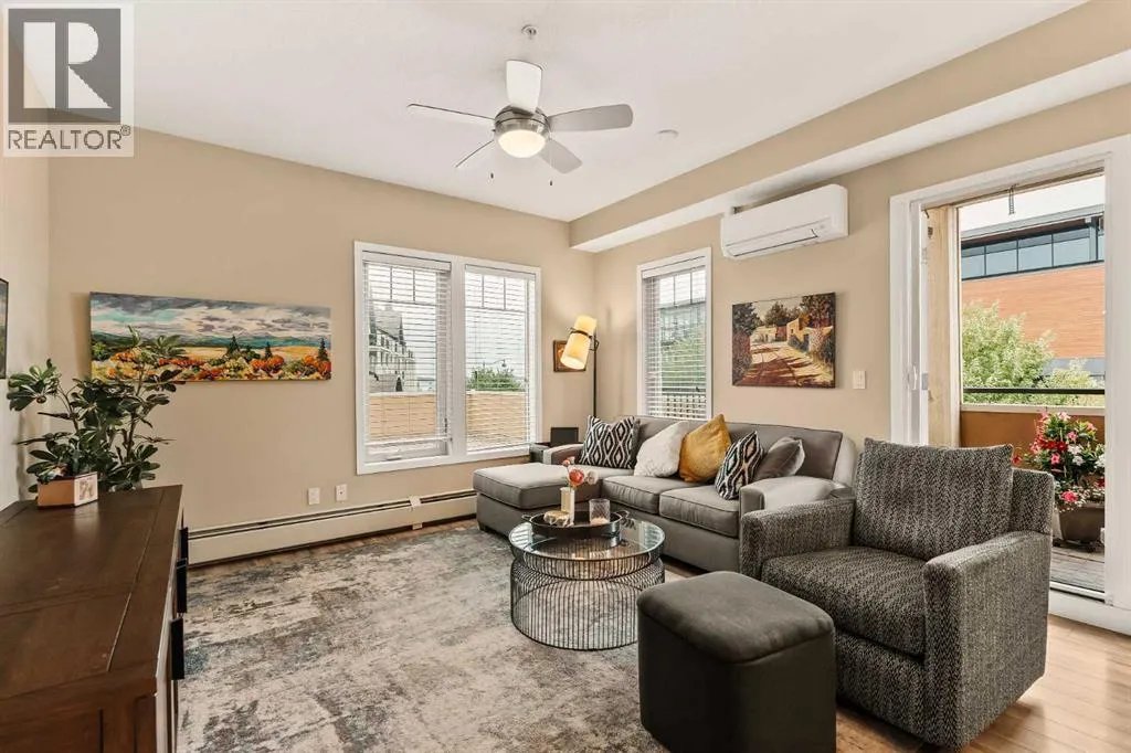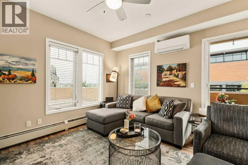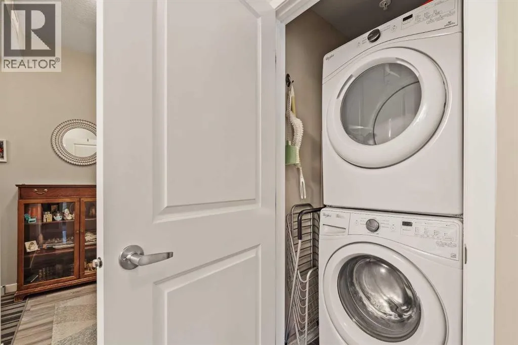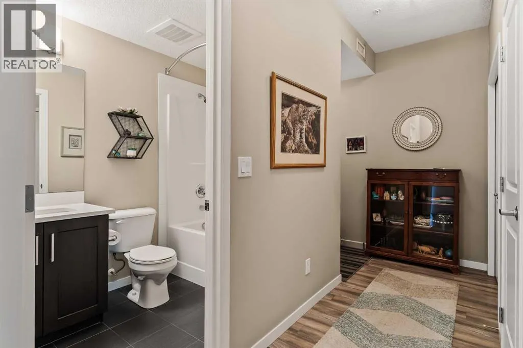 Welcome to Sandgate at Mahogany Lake. This custom built south east facing corner suite offers air conditioning and a private 36 by 6 foot deck that captures the sun throughout the day. The open concept layout features a bright living room with four large windows overlooking the courtyard and a stylish kitchen with quartz countertops, upgraded cabinets, a peninsula island, and premium stainless steel appliances. Two bedrooms and two full bathrooms are located on opposite sides of the living space for privacy, each with organized closet cabinetry. Residents enjoy exceptional amenities including a 1300 square foot fitness centre, a welcoming common area library, and two comfortable guest suites for visiting family and friends. Additional features include nine foot ceilings, luxury vinyl plank flooring, concrete construction, extra storage, and titled underground parking. All of this is set within award winning Mahogany, where you can enjoy year round recreation at Calgaryâs largest lake along with walkable access to Mahogany Village Market with its shops, cafés, and restaurants including Sobeys, Tim Hortons, State and Main, and the renowned Chairmanâs Steakhouse. (id:27476)