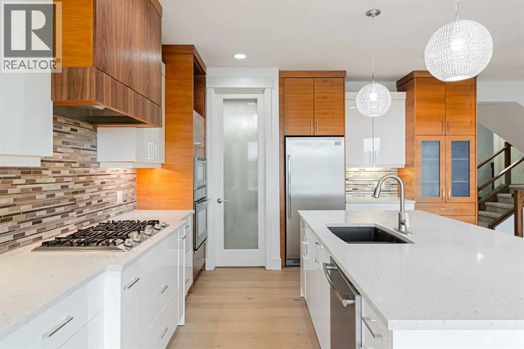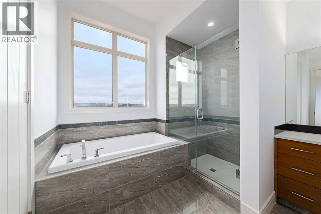 Welcome to this NEWLY RENOVATED, GORGEOUS, 4-bedroom, up-to-date décor, stunning and move-in ready, walkout to grade, front attached garage, located in the desirable and established neighborhood community of Chaparral, and enjoy lots of amenities, which offers endless activities throughout the winter and summer months. This beautiful home comes with a lengthy list of upgraded features, Central Air-conditioning for hot summer weather, 9' ceilings main floor, luxury tiles and vinyl plank sprawls throughout the main floor from the front entrance onto the Foyer, open concept Living room, Kitchen, Dining area, Den/Office, and Powder room. The heart of the main floor is the upgraded kitchen, with built-in premium stainless-steel Appliances, Gas Cook top, quartz counter tops, full heights Cabinets, Pantry, and Island seating for casual dining. This floor also boasts a convenient Powder room, a Dining area with beautiful pot-lights, and a Living room with an inviting electric Fireplace great for relaxing or entertaining family and friends. Lots of natural light floods the home through the large Windows and exterior door, creating a bright and airy ambiance throughout. Upgraded light fixtures and knock down ceiling also adds to this ambiance. The upper level is perfect for family living, featuring a large bonus room with large window that brings in lots of natural light, the Master Bedroom is a retreat itself, beckons with a spacious layout, large walk-in closet, and plush carpeting underfoot. The 5-piece ensuite Bathroom features a Sink with quartz Countertops, a Large Mirror, toilet, beautiful tiles throughout the Floor, around the Soaker Tub, and the large Stand-Up Shower, providing a private retreat for homeowners. 2 other Large Bedrooms with carpet Flooring and closets, a 5-piece Bathroom, Laundry room with sink and drawers for convenience, Downstairs boasts a developed walkout to grade basement with a good-sized bedroom and beautiful finishes like plush carpet Floo ring, a beautiful living room with another inviting fireplace, a Rec Room, Utility Room. The very exquisite 4-piece Bathroom completes this basement with a large mirror, Sink with quartz Counter tops, beautiful Tiles on the floor and a bathtub. A front porch, Double Attached Garage with a driveway for extra parking, a large balcony, Deck impeccably completes this home. This astounding home is in Chaparral community known for its beautiful lakes, green spaces, and parks, offering residents access to Lake Chaparral for swimming, kayaking, fishing, and a private community center with various amenities. Nearby schools include St. Sebastian Elementary School, Chaparral School, Father James Whelihan, Midsun School, and Centennial High School. Easy get away via Stoney Trail and Deerfoot Trail. Book your showings today! Please do not miss out on this gorgeous home!A MUJST SEE. (id:27476)
