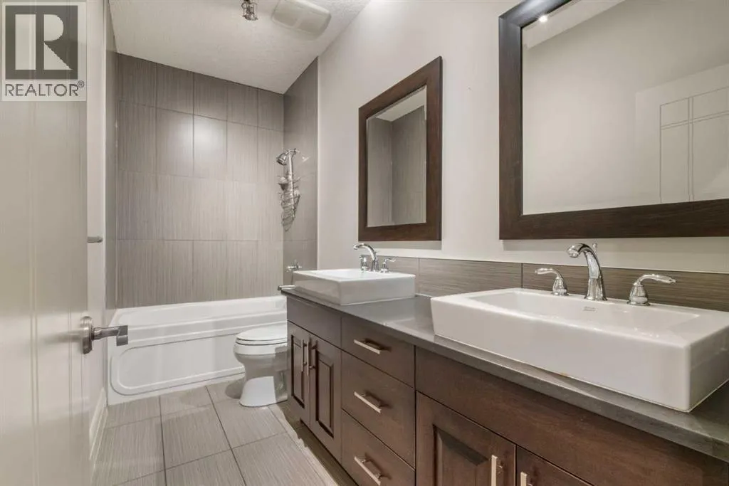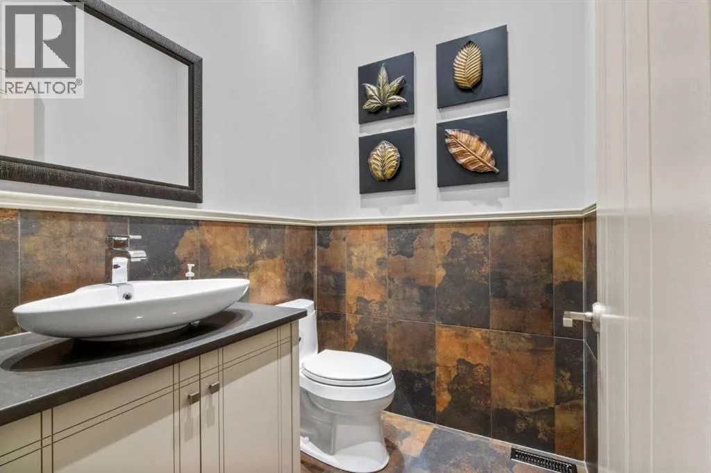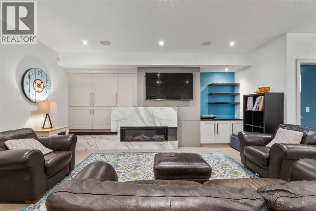 Welcome to custom built elegance in Winston Height-Mountview. Walk in the spacious front entry and be greeted by 20â vaulted ceilings and a grand staircase with wrought iron spindles. Continue past the entry to a private office with French doors before entering the large open concept living space. A stone-facing fireplace is the focal point of the living room along with the 10â on-site finished coffered wood-paneled ceiling. The large kitchen features a commanding 9â island with breakfast bar, a 6-burner Viking gas range with pot-filler, huge refrigerator-freezer combo, wine fridge, and stunning on-site finished dark stained cabinetry. A bright dining room with views of the backyard completes this space. Also on this level is a two-piece powder room. The upper floor has a huge primary retreat with separate sitting area, a stunning 5-piece bathroom with separate soaker tub, separate tiled shower with body spray package, dual sinks, and a large walk-in closet. Two other large bedrooms are also on this level along with a 4-piece main bathroom. The basement level was renovated by the current owners with over $170,000 of finishings featuring a radiant heated, polished concrete floor, large family room with custom built-ins and gas fireplace, a built-in study area with room for two, two more bedrooms, a 4-piece bathroom, and large storage room. There is also access from the basement to the garage via a separate stairway. The garage is double oversized with enough room for your vehicles and toys. The house is wired for sound and comes with a Russound system. The fully fenced backyard has a large patio, gas BBQ line, and green space. This home is built by a reputable Italian builder and the quality shows in what can be seen and what isnât seen including double joists used to construct the sub-floor and solid core doors. Steps away from The Winston Golf Club, this home is close to schools, shopping and more and is within a short commute to the downtown core. (id:27476)