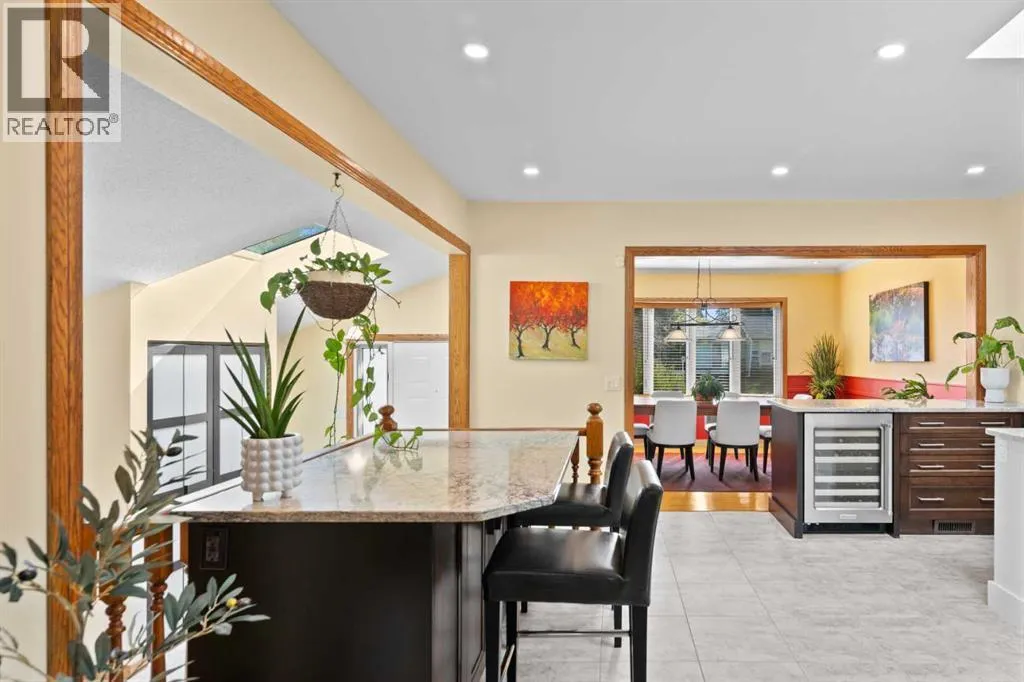 Close to the UNIVERSITY and HOSPITAL! | HUGE 50' x 120' R-CG ZONED LOT | DETACHED GARAGE | Perfect INVESTMENT property | RENOVATED KITCHEN | A/C. Not your typical bungalow! An impressive rear addition and high-end upgrades sets this Banff Trail home apart from the rest. The vaulted great room is filled with NATURAL LIGHT from west-facing windows, anchored by custom built-ins and a wood-burning fireplace with gas starter. A RENOVATED KITCHEN with quartz counters, premium appliances and cabinetry flows into a large dining area ready for entertaining. Skylights in the entry, kitchen, and main bath brighten key areas, and the updated bathroom with HEATED FLOORS offers direct access to the primary bedroom. Two additional bedrooms round out the main level, while the lower floor adds a family room with wood burning fire place, versatile rec space with WET BAR, two bedrooms, full bath, and abundant storage. Upgrades include KINETICO WATER FILTRATION, NEW SEWER LINE (2023 with warranty), SPRINKLER SYSTEM, Telus security, A/C, and a detached double garage. With schools, parks, LRT, U of C, and Foothills Hospital all nearby, this home combines character, modern upgrades, and inner-city convenience. Developers and homeowners and investors alike will appreciate this one-of-a-kind opportunity! Book a showing today. (id:27476)