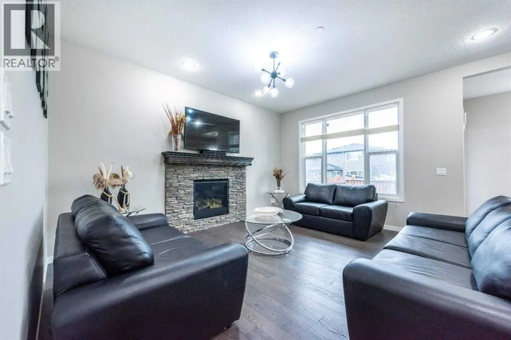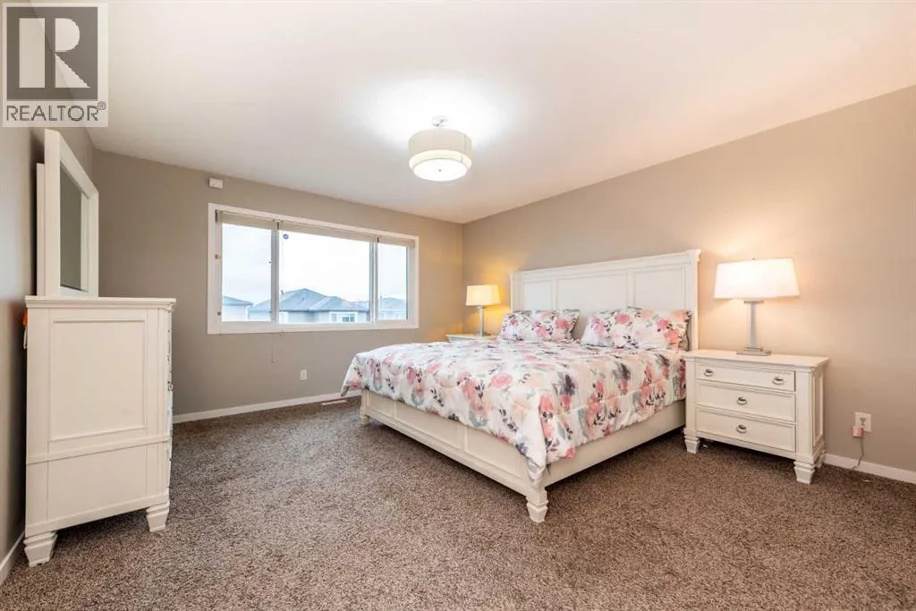 Welcome to this beautifully 2-storey home, perfectly situated in a family-friendly location facing onto a vibrant playground! Featuring a stylish white kitchen with gleaming quartz countertops, stainless steel appliances, and an open-concept layout with luxury hardwood flooring throughout the main floor, this home is as functional as it is elegant. The spacious living and dining areas flow seamlessly to the east-facing backyard, where a large deck ,concrete pad ,Main floor bedroom/office with a charming pergola invites you to relax and soak in the morning sun. Upstairs, youâll find a generous bonus room,, laundry room and three generously sized bedrooms with walk-in closets, including a serene primary suite with a 5-piece ensuite. With 2.5 bathrooms, a double attached garage, and an unfinished basement ready for your creative touch, this home offers the perfect blend of comfort, style, and future potential. (id:27476)