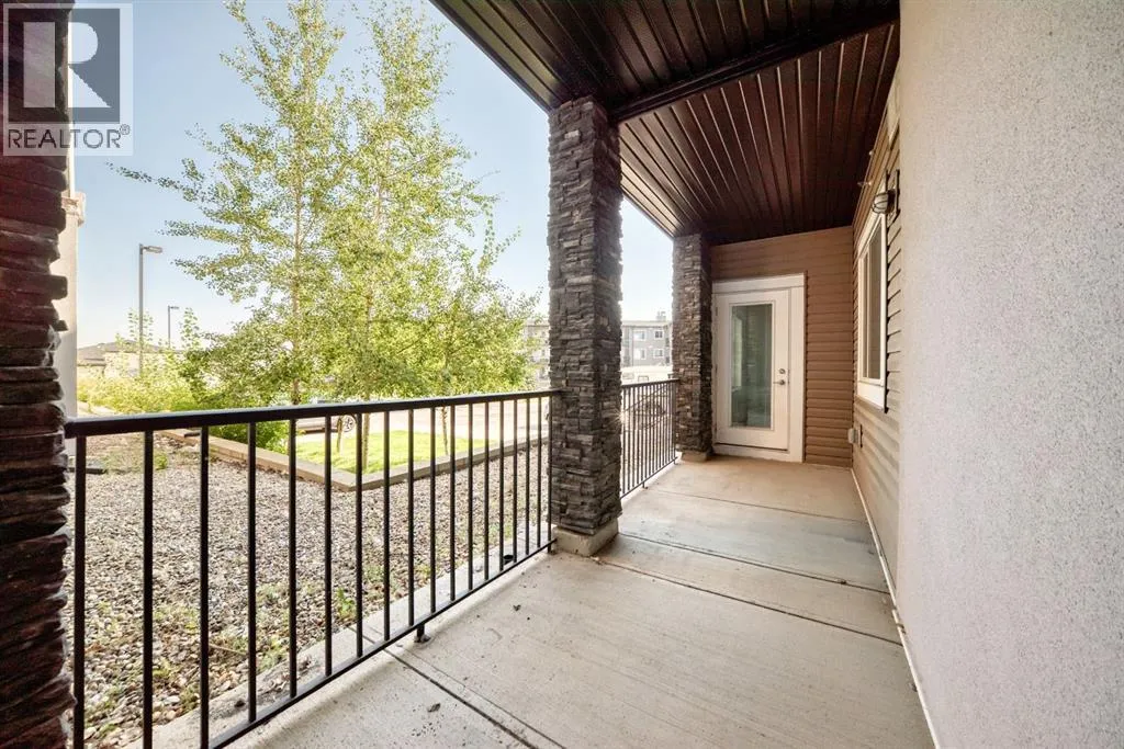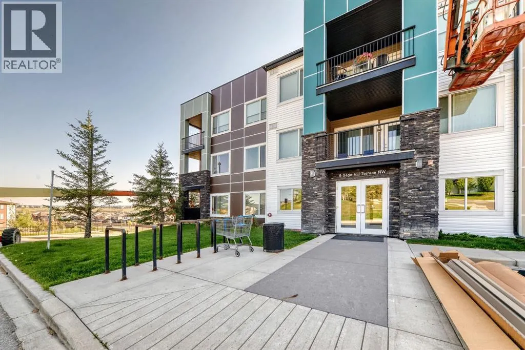 Welcome to 8 SAGE HILL TERRACE! This gorgeous bright One Bedroom + Den, move-in ready open concept ground-level condo has over 585 sq ft of cozy living space in popular and desirable SAGE HILL! Packed with tons of features to love, including light hardwood laminate flooring throughout, 9ft ceilings, large master with ensuite bathroom with walk-through closets, and a den with custom cabinetry which makes for a great office. This lovely unit also has ensuite laundry! A large open concept living/dinning area includes a big window to brighten up the space, along with stainless steal appliances and lots of cabinets space! You may also enjoy a private ground level balcony, large enough to fit BBQ, table and plenty of seats! Close to everything you need for day-to-day living! Shopping and commuting are a breeze as everything is right at your doorstep, including Stoney Trail! Call today to book private viewing! You wonât want to miss this one! (id:27476)