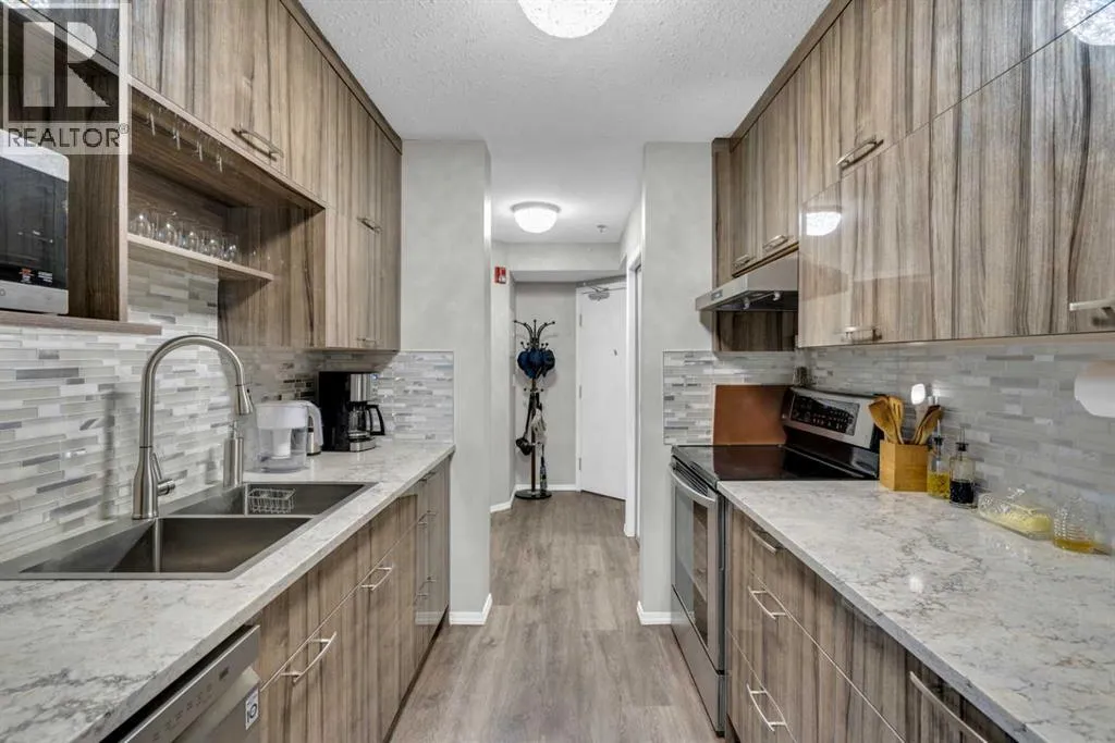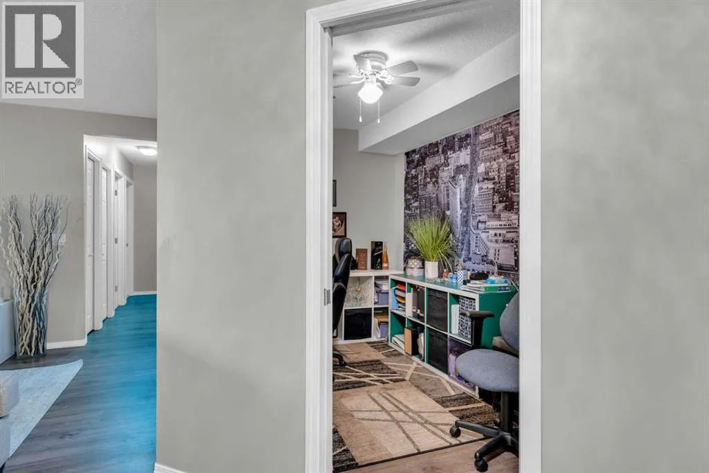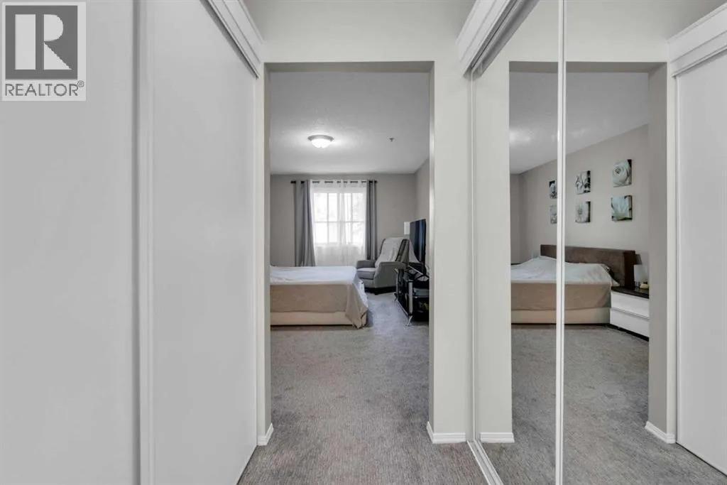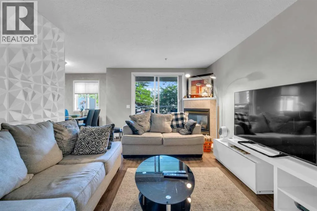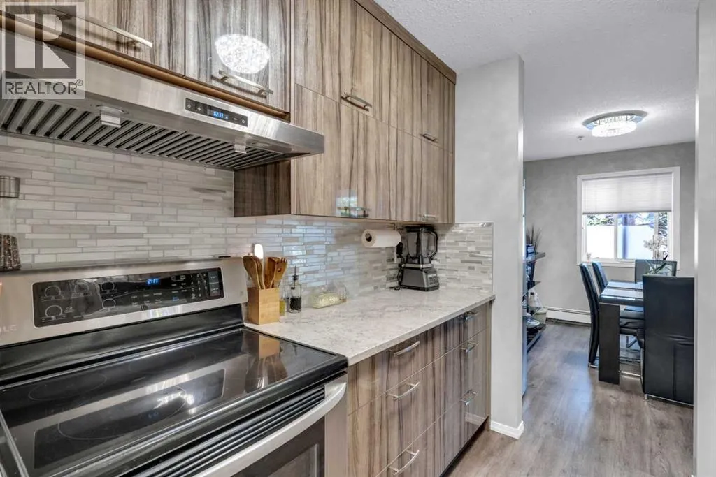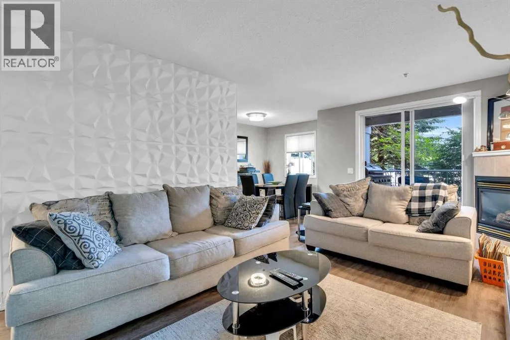 Welcome to a very large (1100+ sq.ft) 2 bedroom/2 bathroom + DEN....FULLY RENOVATED apartment located in Chaparral Ridge. Your future home is located on the main floor (north side, in a well managed building with a TITLED UNDERGROUND parking spot (conveniently located right by the parkade entrance) and a secure storage locker. The current owner upgraded and updated the unit in 2022, so there's nothing for you to do here, other than ENJOYING LIFE! You will love the high end kitchen with gorgeous brand new cupboards, brand new granite countertops and stainless steel appliances. The bathrooms have been also upgraded with new vanities. New carpet in both bedrooms! Now let's talk about the layout! This has a very rare and super functional floor plan that offers an office/den with an interior window right off the entrance, a large living room with a corner gas fireplace and access to the balcony, a formal dining room and the kitchen. Further down the hall you will find a very large laundry/storage room, a 4PC bathroom, and the two bedrooms. The master bedroom has its own 4PC ensuite. Both bedrooms are spacious. The unit is north facing which is great during the hot summer months. There are no age restrictions for this complex. The complex is conveniently located a short walking distance to the Bow River/Fish Creek Park and their vast pathway system. The Blue Devil golf club is only a 7 minute drive, offering a unique experience in a river valley setting! Super easy access to Stoney Trail and Deerfoot. Book your private showing before it's gone! (id:27476)