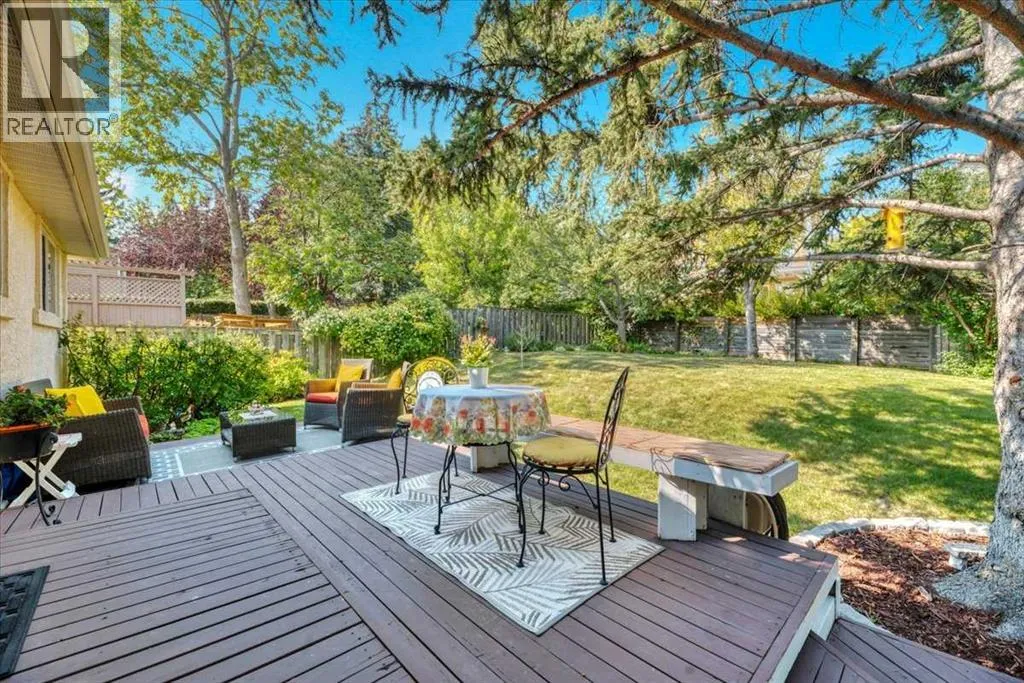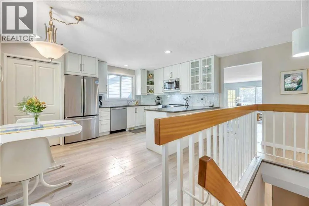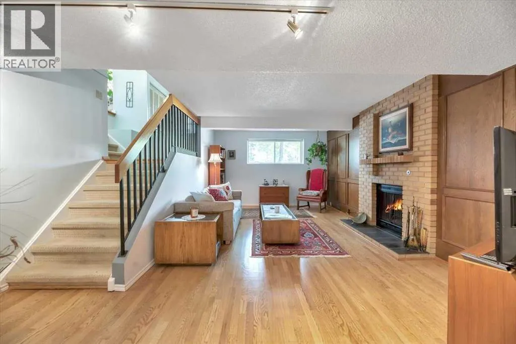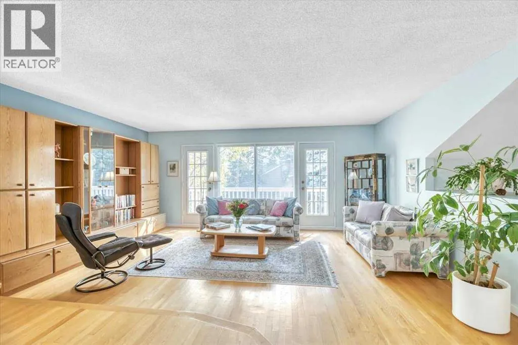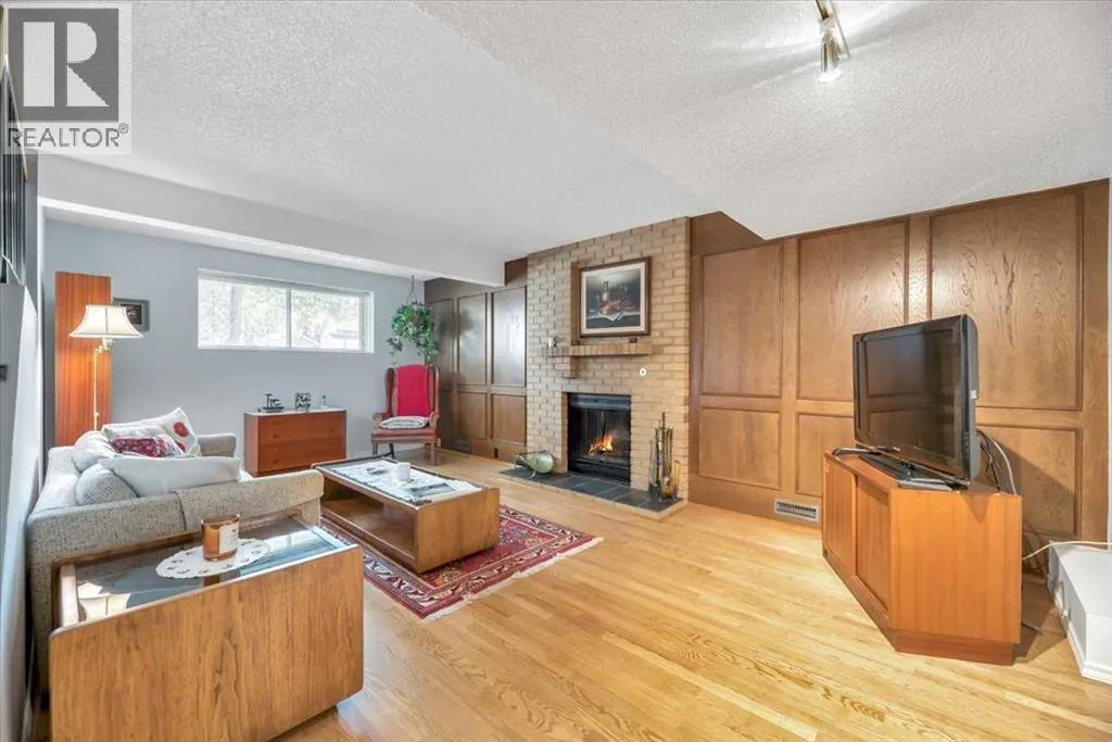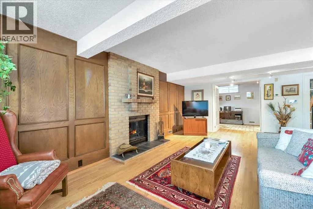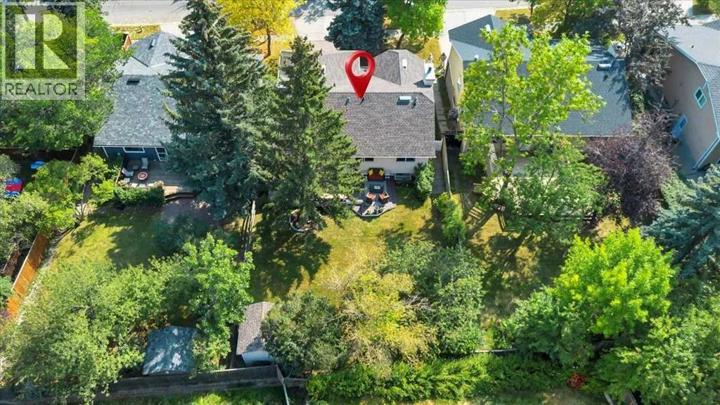 Welcome to this charming, standout bi-level with 2300+ square feet of living space in desired Strathcona Park. The exceptional layout showcases the best of the individual areas of the home and outdoor spaces. Ideal for relaxation and accommodating large gatherings.The large foyer with high ceiling takes you to upper and lower family spaces. The centerpiece open concept living room features hardwood flooring, large south-facing windows and two doors opening onto a balcony. The dining space is suited for a formal table. A modern and functional kitchen highlights are an induction oven, serving counter, and a table space overlooking the picture perfect backyard. Through a hallway are a full washroom and great sized bedrooms. The retreat, king-size primary bedroom has extra space for crib, desk, or lounging furniture. The ensuite is complemented by the walk-in shower with glass doors. On to the fully developed basement⦠there is great accessibility with front and back stairwells that improve airflow and lighting. The recreation room has a big south-facing window, raised hardwood floor, and fireplace. Through the adjacent glass french doors is the large den that is great for an office, or easily converted to a fourth bedroom. Adding to the efficient layout are the conveniently located full bathroom, spacious laundry room, storage room great for a cold room or winemaking, and utility room with two furnaces and even more storage space. The man-cave double garage is insulated and heated, and has window and water line. The large tree-lined lot is fully landscaped and easy keep. The backyard is a true peaceful getaway with a tiered deck, walk-in storage shed, and big grassed play space. More to mention are the paving stone driveway and decorative fencing. The longtime owner has maintained this home exceptionally well. Upgrades include vinyl windows (some triple-glazed), stucco, kitchen, ensuite, and water heater.This quiet established neighborhood is walking distance from sought after elementary schools, parks, and ravine trails and green space with plenty of wildlife. Just a little further is Bow Trail, Edworthy Park, a C Train station, and more schools. Conveniently accessible are commercial centers, downtown, Universities, and major roads. The curb appeal draws you in and the warmth and beautiful finishes will make you want to stay and enjoy the positive atmosphere. Donât miss your chance to discover the value of this truly wonderful home. (id:27476)