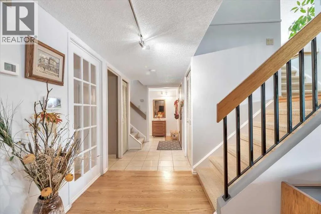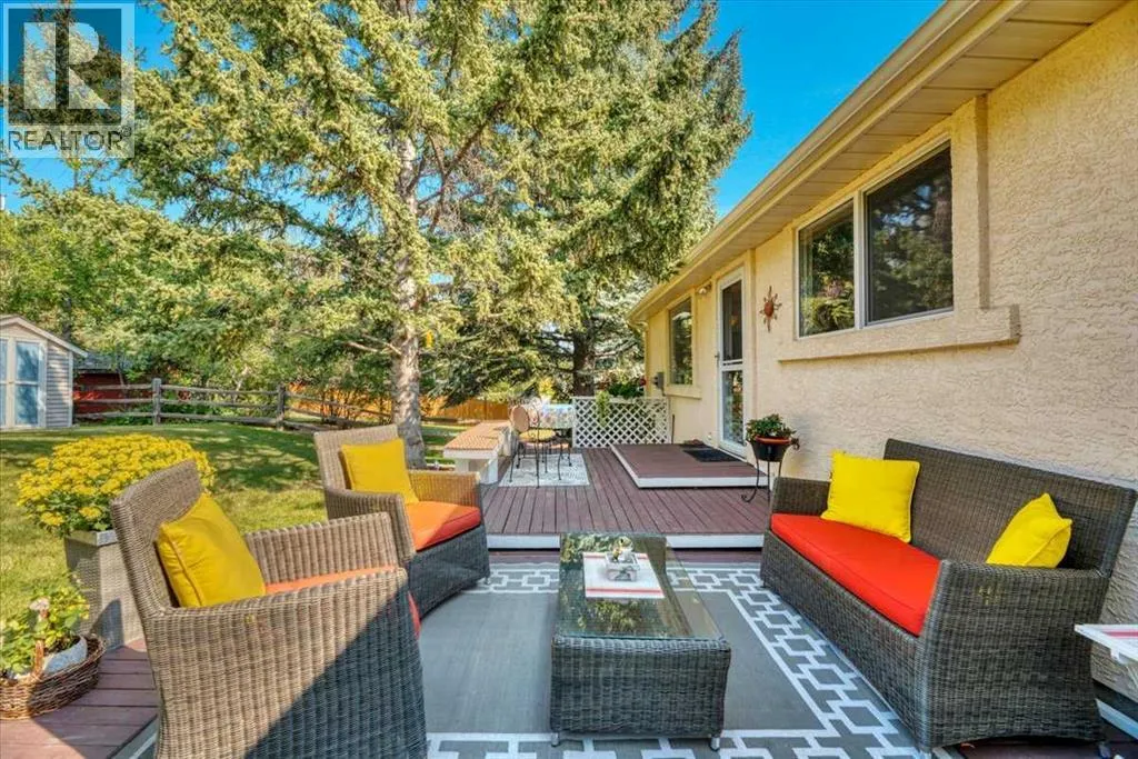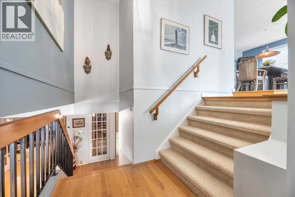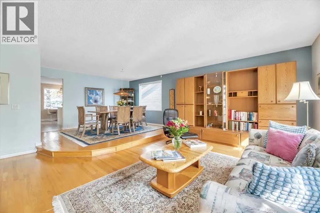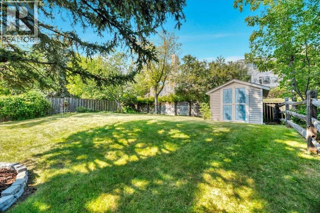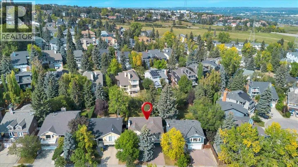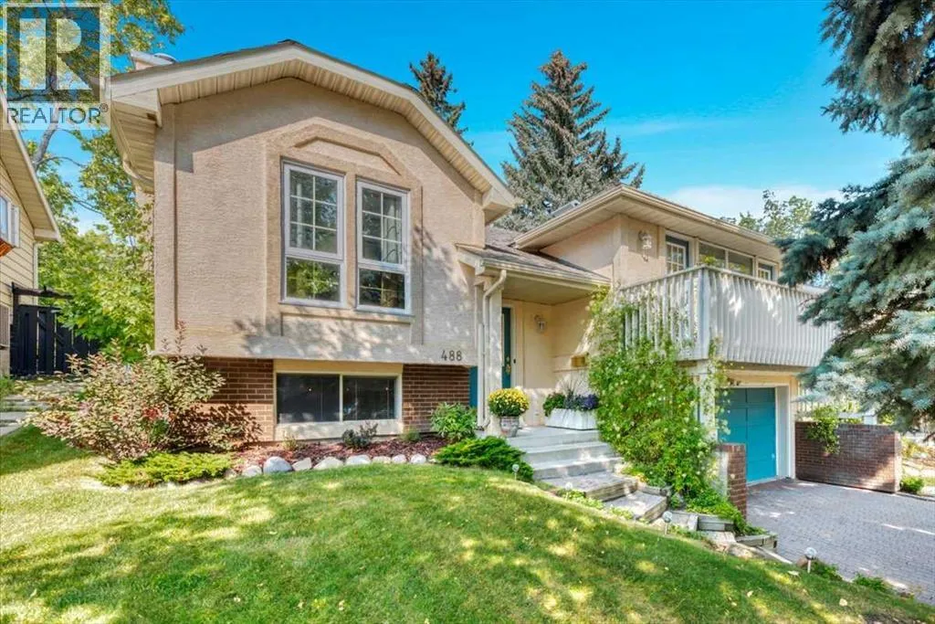 Welcome to this charming, standout bi-level with 2300+ square feet of living space in desired Strathcona Park. The exceptional layout showcases the best of the individual areas of the home and outdoor spaces. Ideal for relaxation and accommodating large gatherings.The large foyer with high ceiling takes you to upper and lower family spaces. The centerpiece open concept living room features hardwood flooring, large south-facing windows and two doors opening onto a balcony. The dining space is suited for a formal table. A modern and functional kitchen highlights are an induction oven, serving counter, and a table space overlooking the picture perfect backyard. Through a hallway are a full washroom and great sized bedrooms. The retreat, king-size primary bedroom has extra space for crib, desk, or lounging furniture. The ensuite is complemented by the walk-in shower with glass doors. On to the fully developed basement⦠there is great accessibility with front and back stairwells that improve airflow and lighting. The recreation room has a big south-facing window, raised hardwood floor, and fireplace. Through the adjacent glass french doors is the large den that is great for an office, or easily converted to a fourth bedroom. Adding to the efficient layout are the conveniently located full bathroom, spacious laundry room, storage room great for a cold room or winemaking, and utility room with two furnaces and even more storage space. The man-cave double garage is insulated and heated, and has window and water line. The large tree-lined lot is fully landscaped and easy keep. The backyard is a true peaceful getaway with a tiered deck, walk-in storage shed, and big grassed play space. More to mention are the paving stone driveway and decorative fencing. The longtime owner has maintained this home exceptionally well. Upgrades include vinyl windows (some triple-glazed), stucco, kitchen, ensuite, and water heater.This quiet established neighborhood is walking distance from sought after elementary schools, parks, and ravine trails and green space with plenty of wildlife. Just a little further is Bow Trail, Edworthy Park, a C Train station, and more schools. Conveniently accessible are commercial centers, downtown, Universities, and major roads. The curb appeal draws you in and the warmth and beautiful finishes will make you want to stay and enjoy the positive atmosphere. Donât miss your chance to discover the value of this truly wonderful home. (id:27476)