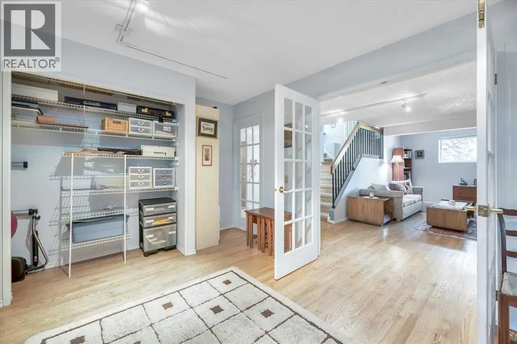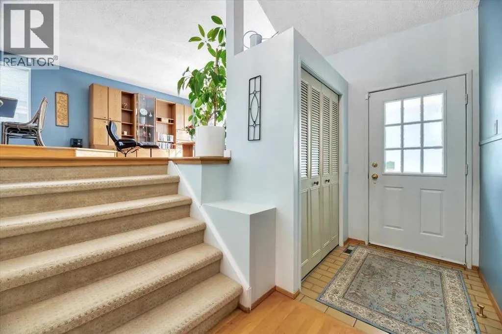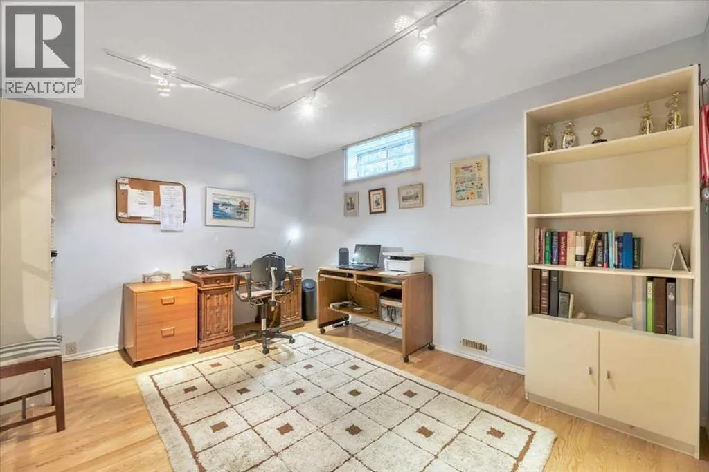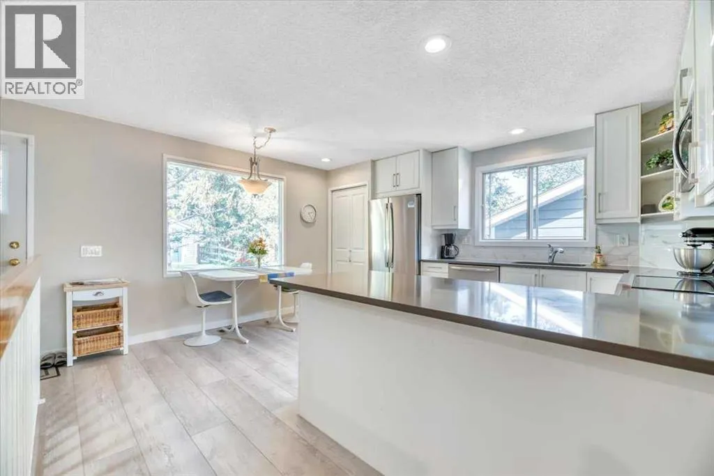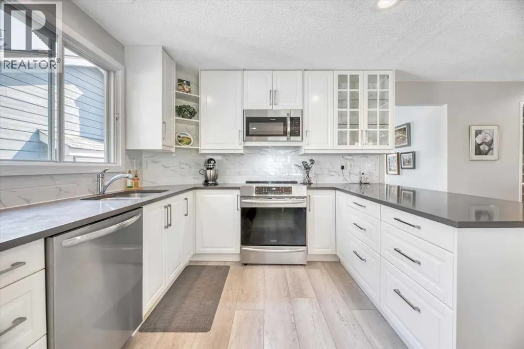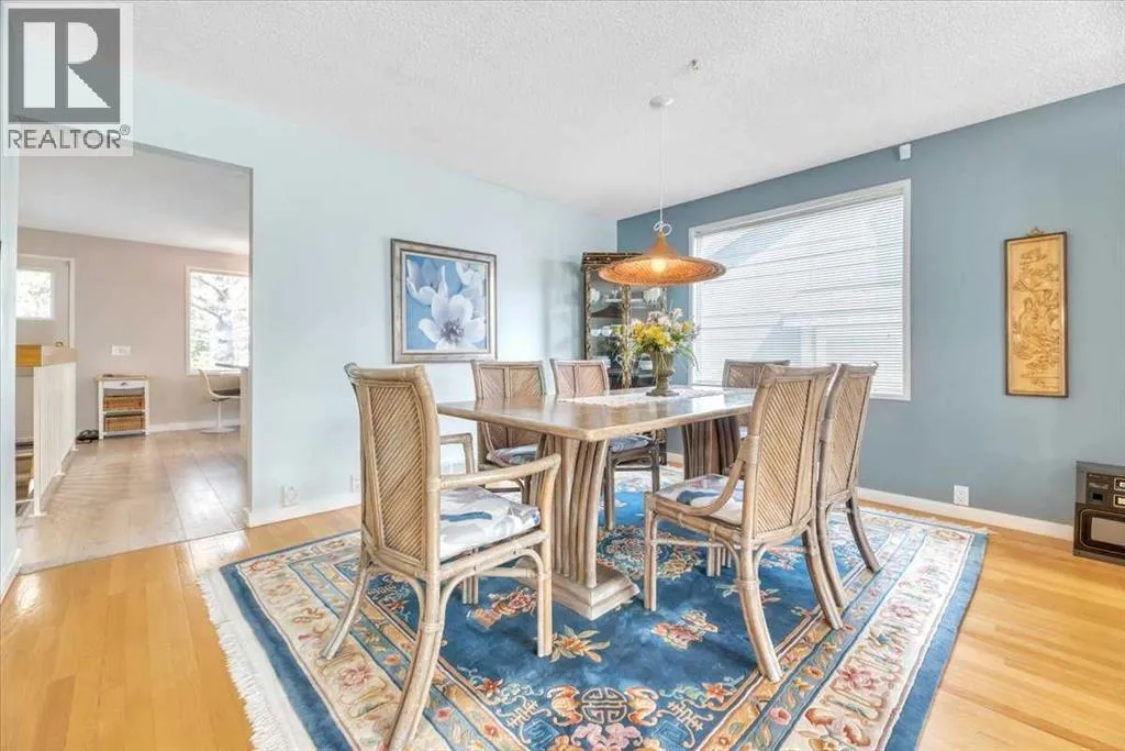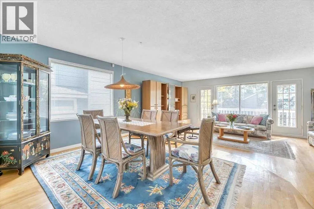 Welcome to this charming, standout bi-level with 2300+ square feet of living space in desired Strathcona Park. The exceptional layout showcases the best of the individual areas of the home and outdoor spaces. Ideal for relaxation and accommodating large gatherings.The large foyer with high ceiling takes you to upper and lower family spaces. The centerpiece open concept living room features hardwood flooring, large south-facing windows and two doors opening onto a balcony. The dining space is suited for a formal table. A modern and functional kitchen highlights are an induction oven, serving counter, and a table space overlooking the picture perfect backyard. Through a hallway are a full washroom and great sized bedrooms. The retreat, king-size primary bedroom has extra space for crib, desk, or lounging furniture. The ensuite is complemented by the walk-in shower with glass doors. On to the fully developed basement⦠there is great accessibility with front and back stairwells that improve airflow and lighting. The recreation room has a big south-facing window, raised hardwood floor, and fireplace. Through the adjacent glass french doors is the large den that is great for an office, or easily converted to a fourth bedroom. Adding to the efficient layout are the conveniently located full bathroom, spacious laundry room, storage room great for a cold room or winemaking, and utility room with two furnaces and even more storage space. The man-cave double garage is insulated and heated, and has window and water line. The large tree-lined lot is fully landscaped and easy keep. The backyard is a true peaceful getaway with a tiered deck, walk-in storage shed, and big grassed play space. More to mention are the paving stone driveway and decorative fencing. The longtime owner has maintained this home exceptionally well. Upgrades include vinyl windows (some triple-glazed), stucco, kitchen, ensuite, and water heater.This quiet established neighborhood is walking distance from sought after elementary schools, parks, and ravine trails and green space with plenty of wildlife. Just a little further is Bow Trail, Edworthy Park, a C Train station, and more schools. Conveniently accessible are commercial centers, downtown, Universities, and major roads. The curb appeal draws you in and the warmth and beautiful finishes will make you want to stay and enjoy the positive atmosphere. Donât miss your chance to discover the value of this truly wonderful home. (id:27476)