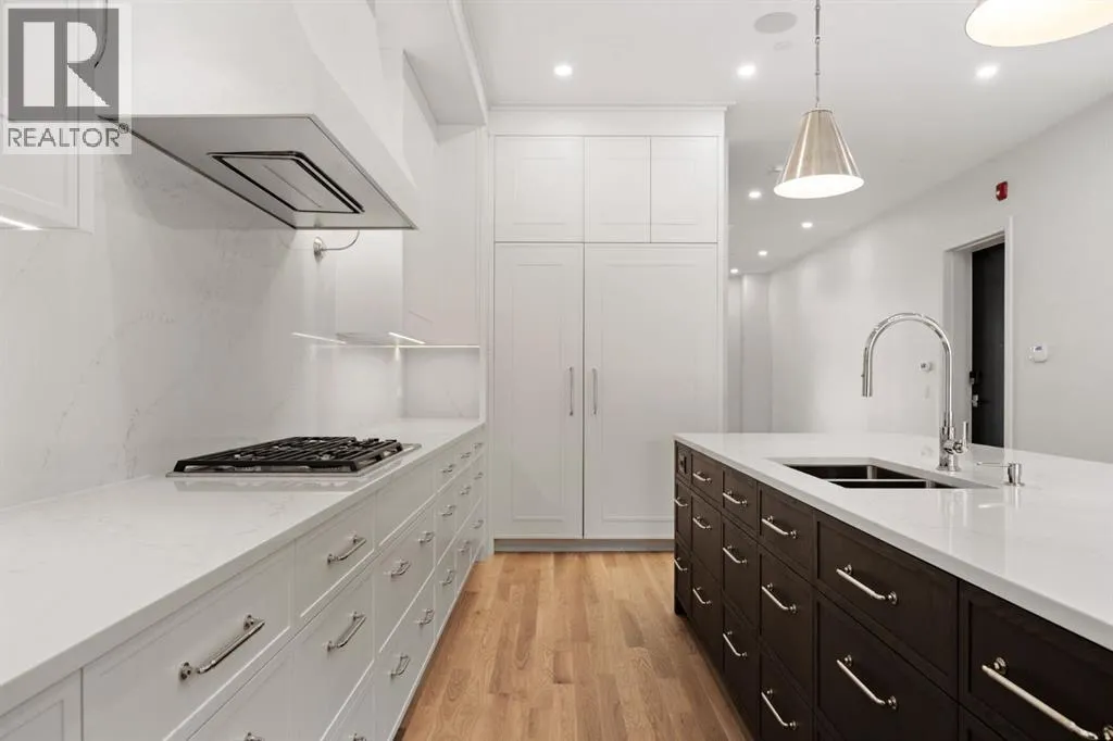 Welcome to The Terrace Residence at Parkhill Flats, an extraordinary fusion of nearly 3,000 sq. ft. of single-level living, impeccable craftsmanship, and forward-thinking design. This rare âStacked Bungalowâ reimagines what it means to live luxuriously without compromise, offering the privacy of a home and the ease of a lock-and-leave lifestyle in one of Calgaryâs most coveted neighbourhoods.Step through secure, gated entry into your heated, lift ready 4 car garage and ascend directly to your residence via a private elevator, an arrival experience reserved for the truly discerning. Inside, bespoke designer millwork, natural stone, and white oak floors exude understated sophistication, while soaring 12' ceilings and windows on all four sides of the structure infuse the living areas with natural light. The chefâs kitchen, equipped with Wolf and Sub-Zero appliances, custom cabinetry, and a generous walk-in pantry is both a showpiece and a workspace, equally suited to intimate dinners or grand entertaining. Host in a formal dining room awash in golden evening light, with park views, or simply unwind while enjoying a meal in the open dining nook. The serene primary retreat, with its private patio access, spa-calibre ensuite, and expansive walk-in closet that feels more like a boutique than a dressing room will lure you into relaxation. A second bedroom with ensuite, a versatile den, powder room and laundry room complete the floor plan. Just beyond the great room, an 18â x 16â partially covered patio invites elegant alfresco dining and seamless indoor-outdoor living, a perfect, private spot for summer gatherings. Thoughtfully designed for effortless living, this home also offers abundant in-suite storage plus a private storage room at garage level, perfect for a home gym, golf simulator, or theatre. Engineered ICF concrete walls, triple-pane windows, and a commercial-grade sprinkler system deliver unmatched comfort, safety, and efficiency. Crafted by the acclaimed builde r behind Elveden Court, a 26-unit sold out luxury bungalow villa project on Calgaryâs west side, and exquisitely designed by Bridgette Frontain Interiors, this development carries forward a legacy of timeless design, enduring quality, and sophisticated living. Set just minutes from The Glencoe Club, Calgary Golf & Country Club, Britannia Plaza, and downtown, The Terrace Residence places you at the heart of Calgaryâs most prestigious amenities while preserving your privacy. This is more than a home; itâs an architectural statement, where modern innovation, timeless elegance, and lock-and-leave convenience converge for those who expect nothing less than the exceptional. The Penthouse Level is also available and shares all the same extraordinary features on a grander scale. Please see MLS#A2254340. (id:27476)