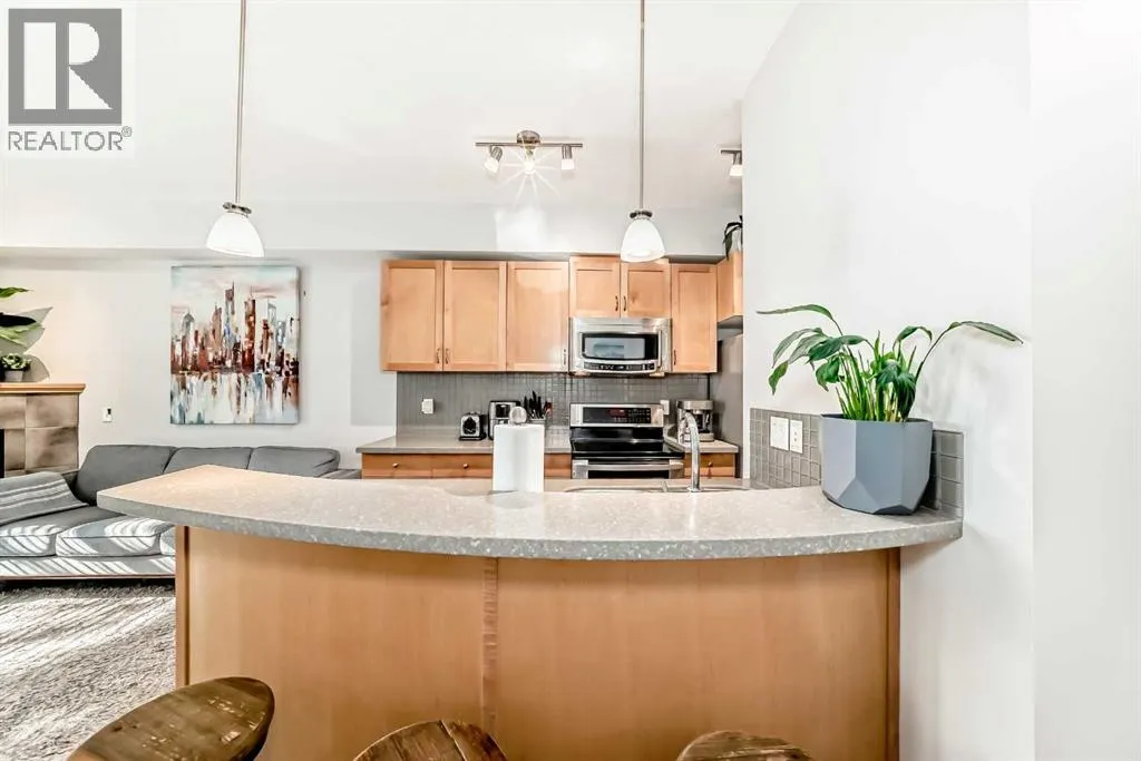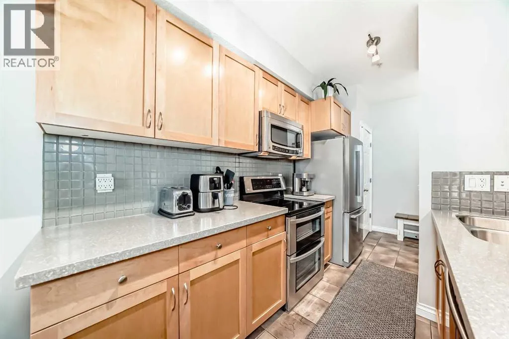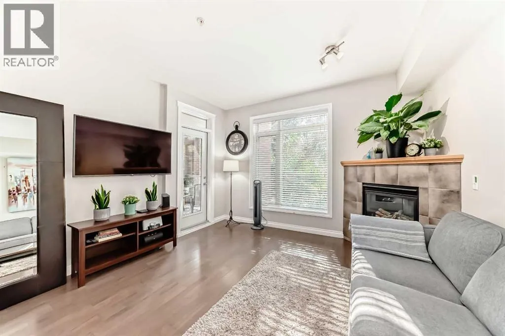 Welcome Home! Beautiful 1 bedroom, 1 bath, West facing condo in the desirable neighbourhood of Spruce Cliff! This second floor unit overlooking a green space boasts privacy and filtered shade created from the towering trees that are found in abundance on the immaculately kept grounds of Copperwood. Featuring a bright open floorplan with tall ceilings, soft neutral colour palate, cozy gas fireplace and in-suite laundry. The open galley style kitchen with newer stainless steel appliances, showcases maple cabinets, stylish grey tile backsplash, newer lighting and a curved breakfast bar. Find oversized windows that allow for plenty of natural light, dual closets in the large bedroom, plus a convenient cheater door to the 4pc bathroom. Copperwood is a well maintained quiet community, offering a fitness room, party room, visitor parking, car wash bay, assigned storage locker, bike storage . Fantastic location close to downtown with every amenity nearby! Walking distance to shopping, restaurants and the LRT, steps to Bow river pathways and Shaganappi Golf Course. This property is move-in ready and a must-see. (id:27476)