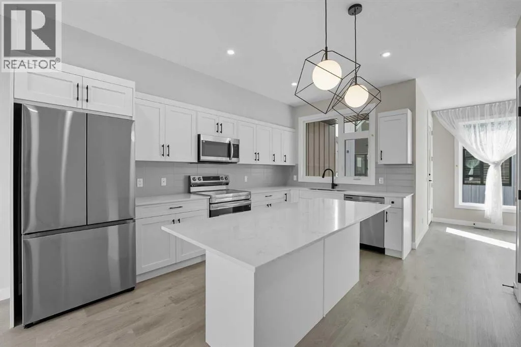 This home, constructed by Logel Homesâan award-winning builder recognized as Calgary's most decorated multi-family developerâis situated in Sage Hill and offers a blend of quality and functionality. The residence is thoughtfully designed for both comfort and convenience. It includes four bedrooms and 2.5 bathrooms, providing ample space for families or guests. The southeast-facing orientation ensures abundant natural light throughout the home, enhanced by oversized windows and 9-foot ceilings on the main level. Residents enjoy breathtaking views overlooking an environmental reserve, bringing a sense of tranquility to everyday living. High-quality finishes are featured throughout, including full-height cabinets, elegant quartz countertops, beautiful, upgraded lighting fixtures, and stainless-steel appliances. Both a front patio and a covered rear deck extend the living space outdoors, perfect for relaxation and entertaining. This home is ready for possession and comes with no HOA fees, providing added value and flexibility for future homeowners. This house shows 10/10. Donât miss your chance to call it yours! (id:27476)