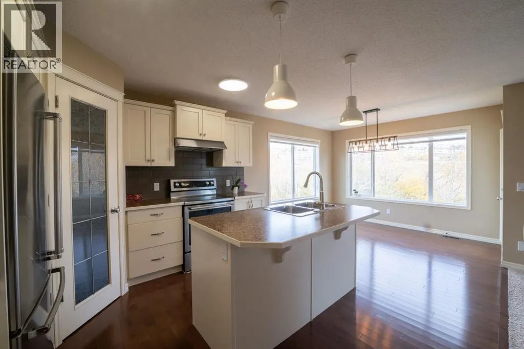 Discover this elegant family home with a WALK-OUT Developed basement tucked away of a cul-de-sac in sought-after Tuscany, backing directly onto a park and ravine for privacy and beautiful views. Inside, the bright open floor plan features gleaming hardwood floors, fresh designer paint, and large windows that fill the home with natural light. The kitchen is upgraded with premium stainless steel appliances and a gas line to the stove, while the living room is centered around a cozy natural gas fireplace. Step outside to the spacy 215 sq. ft. lower deck, perfect for relaxing or entertaining, with direct access through your back gate to the ravine pathways and park. Upstairs offers a versatile bonus room with vaulted ceilings, three bedrooms, and a spacious primary suite with a tiled 4-piece ensuite and walk-in closet.Basement is fully developed with 1 bed and 1 bathroom, and additional features include a gas BBQ line on the deck and central vac rough-in. This meticulously maintained home feels like new and delivers the full Tuscany lifestyleâexcellent schools, shopping and dining at Crowfoot Crossing, one-bus (#174) to the LRT, nearby golf at Bearspaw, and quick access to Crowchild Trail, Stoney Trail, and the mountains. A must-see propertyâbook your private showing today! (id:27476)
