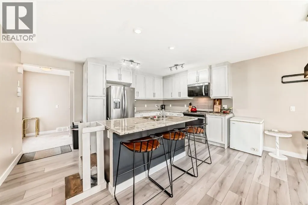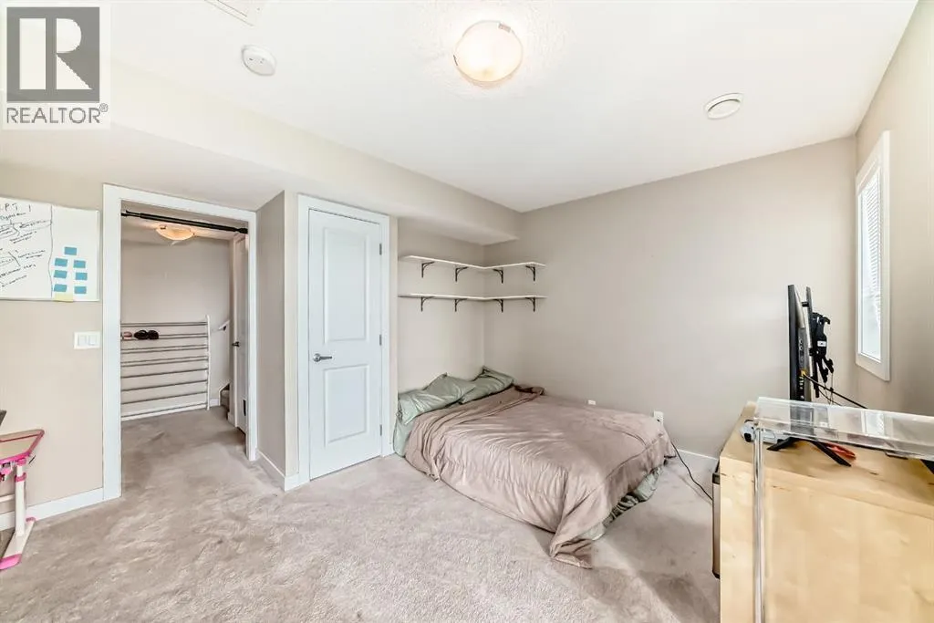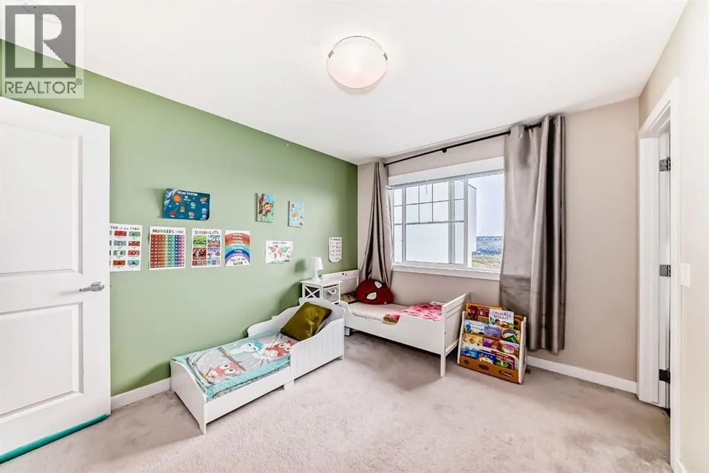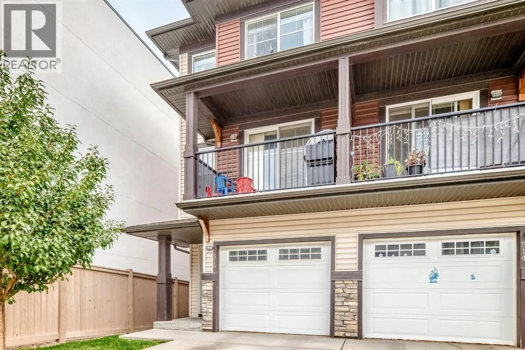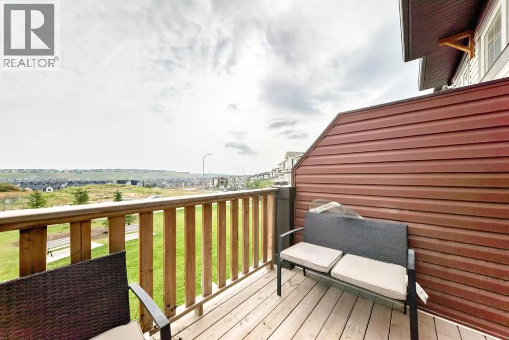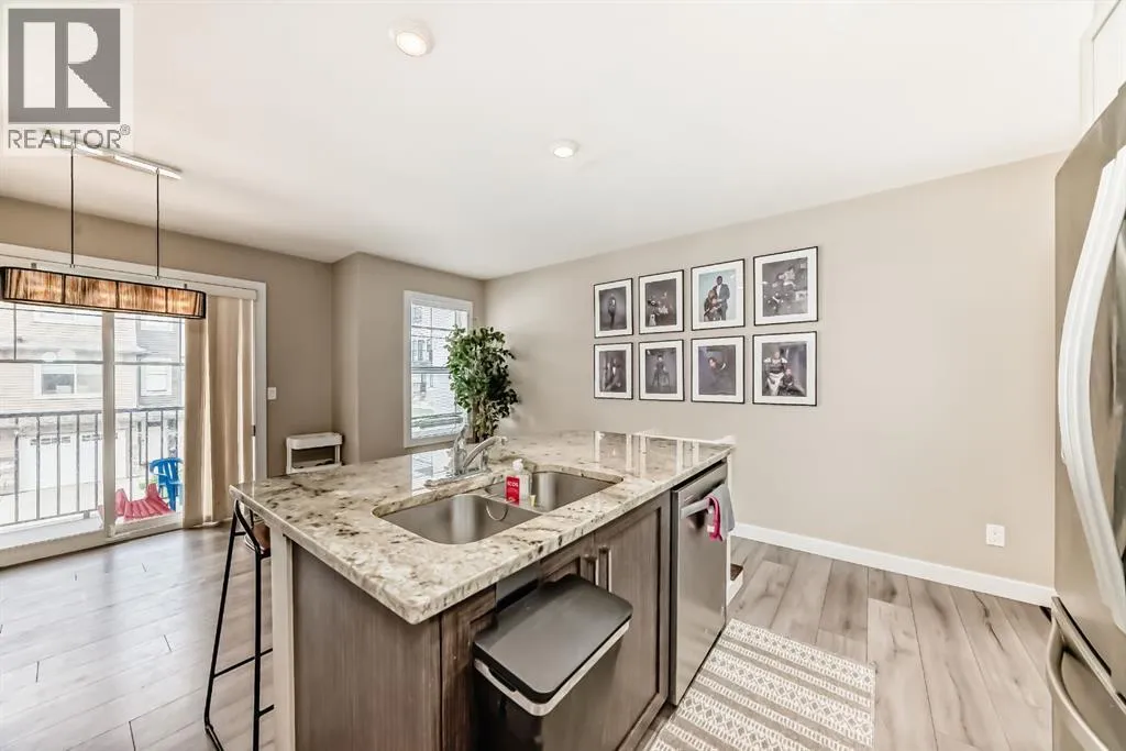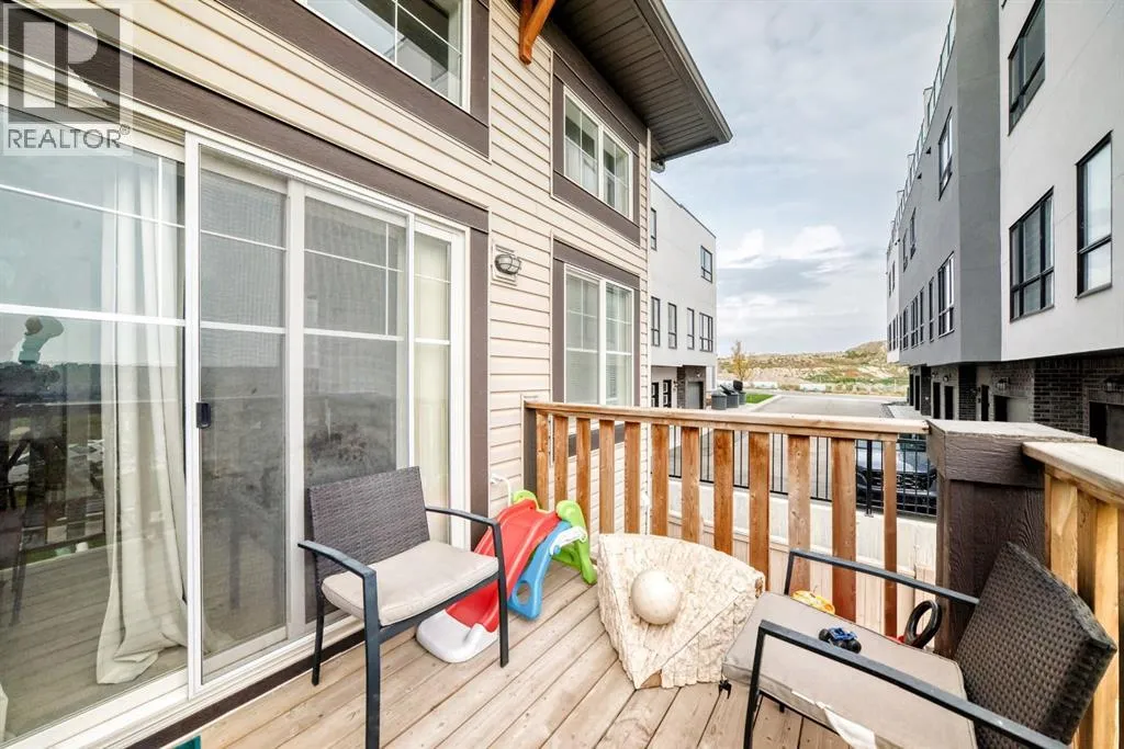| Attached Garage With Driveway | Vaulted Ceiling | Bright Interior | Finished Walk-Out Basement | Welcome home to this beautifully designed END-UNIT WALKOUT townhome, built in 2016 in the sought after neighbourhood of Sage Hill! Surrounded by community pathways that run along the picturesque environmental reserve and great access to amenities, there is no better place to call home. With an abundance of windows, you will love the bright and airy atmosphere of this modern and meticulously maintained townhome, featuring over 1,500 Sqft of living space. The Home has attached garage, full size driveway, private entrance greets you upon arriving at the home,spacious living room with 12-foot vaulted ceiling, huge windows, and back deck facing the semi-private green space! The gourmet kitchen features ceiling-high cabinetry complete with under cabinet lighting, granite counters, upgraded stainless steel appliances, and contemporary laminate flooring. The kitchen island has a flush eating bar with two-tone cabinetry and an undermount sink. The balcony has a gas line, and is adjacent to the dining area with plenty of space for your whole family. Perfect for entertaining! The top-most floor is home to the private ownerâs retreat complete with his-and-her closets and 5-piece ensuite (dual vanity with granite countertop and undermount sinks). Across the hall is the 2nd bedroom with its own ensuite and walk-in closet. The side-by-side laundry closet with front loading washer and dryer is located near the bedrooms for maximum convenience and features plenty of storage space. You will love the flexibility made possible by the finished walk-out basement space which can be used as an office, spare bedroom, or bonus room. Step out onto your private patio and enjoy the green space that sits just behind the home. There is a LARGE storage space that runs under the front entrance, and the property has A/C roughed in. (id:27476)