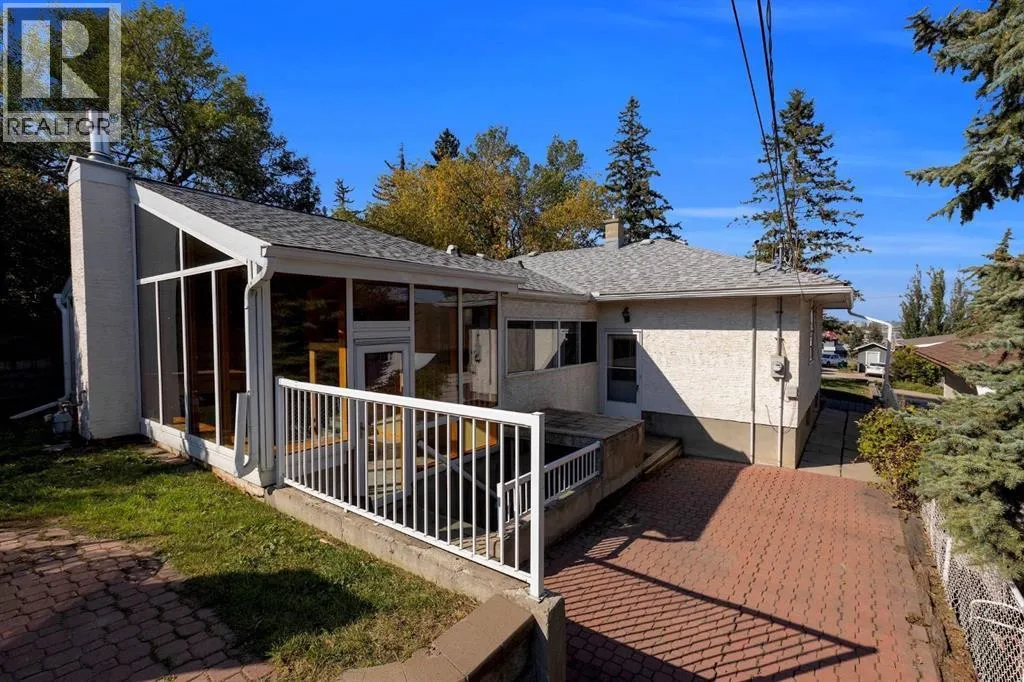 *Price has improved for quick sale* This charming BUNGALOW is brimming with potential. Situated on a 50'x115 lot with RC-G zoning and located in the highly desirable community of Winston Heights. This could be a holding property and future build, or renovate and move right in. Offering over 2,500 square feet of living space with 5 BEDROOMS and 3 FULL BATHROOMS across two levels, making it ideal for families or those needing extra space. MAIN LEVEL features 3 bedrooms and 2 full bathrooms, and boasts a large, functional kitchen that opens into a stunning sun room addition, highlighted by handcrafted cedar woodwork and a striking three-sided gas fireplace. The home retains original hardwood flooring, built-in features, and large windows that fill the space with natural light. BASEMENT is accessible via a separate entrance at the back of the house, includes TWO BEDROOMSânote that these do not have egress windowsâ FULL BATHROOM and a large recreation room, offering the potential for a suite (with city approval). Exterior stairs at the back of the house lead to a large storage room. The outdoor space is both beautiful and functional, featuring a south and east facing backyard that features a stunning brick outdoor fireplace, interlocking stone work and retaining wall. There is an unpaved parking pad and is large enough for two vehicles. Let's not forget curb appeal with its thoughtfully designed stonework, and mature trees and landscaped yard. LOCATION. Close to schools, shopping, transit, off leash dog park, and The Winston Golf Club. This home is just minutes from downtown, with easy access to major routes like Deerfoot Trail, TransCanada Highway, and Edmonton Trail. If you are looking for timeless charm with exciting potential please call your REALTOR today to view this home. Donât miss the virtual tour and floor plans to explore this wonderful property. (id:27476)