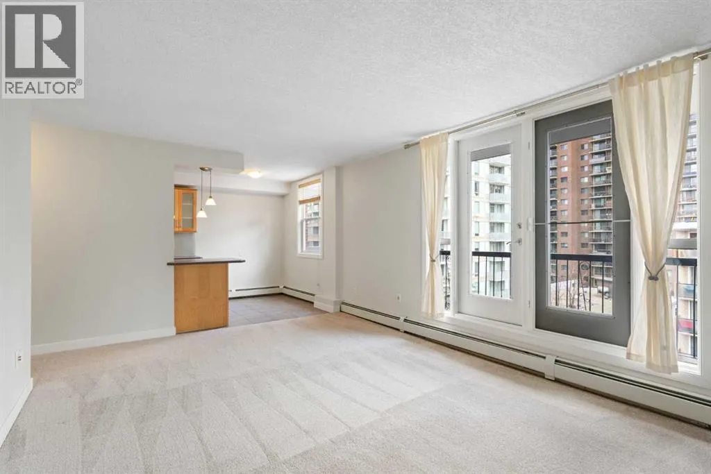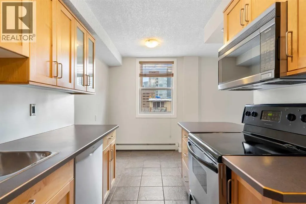 Step into this 2 bedroom TOP FLOOR CORNER UNIT in the heart of the Beltline, and enjoy top floor living with great downtown views. The Avenue is a concrete, quiet building in the heart of the Beltline, and this unit has in-suite laundry. The entire unit has been freshly painted and has newer high quality carpet, and features 833 square feet of living space. The balcony affords wonderful downtown views and extends the living space, providing generous light during the day and a downtown light show at night. A well laid out kitchen with a breakfast bar adjoins the dining room. The living room is open to both the dining room and the kitchen, creating a functional and open floor plan. Two spacious bedrooms with good sized windows are nicely located affording privacy and a quiet location in the unit. A 4-piece bath, and separate and defined front entry complete the floor plan. This unit comes with one assigned parking stall, and an assigned storage locker. This is a fantastic opportunity to live in or invest in a rental property, in the premier location of the building. The Avenue is within walking distance to downtown, all the amenities of 17th Avenue, and offers the quiet enjoyment of an adult only, concrete building. (id:27476)