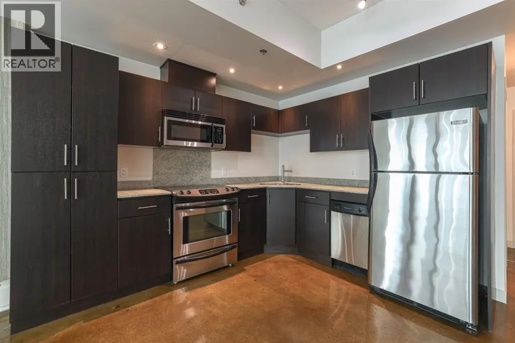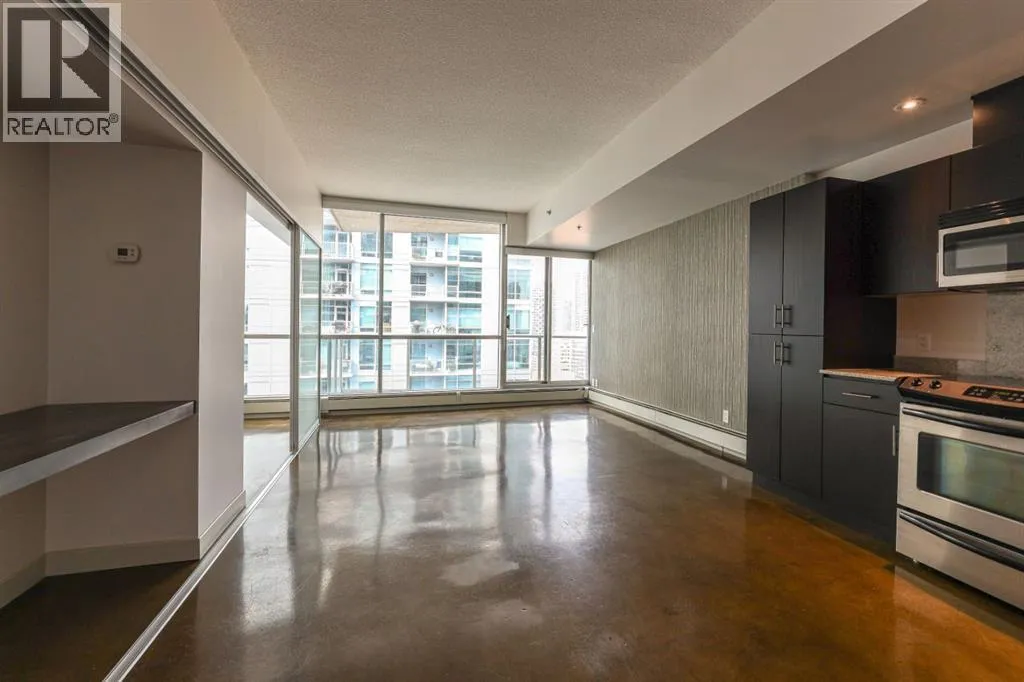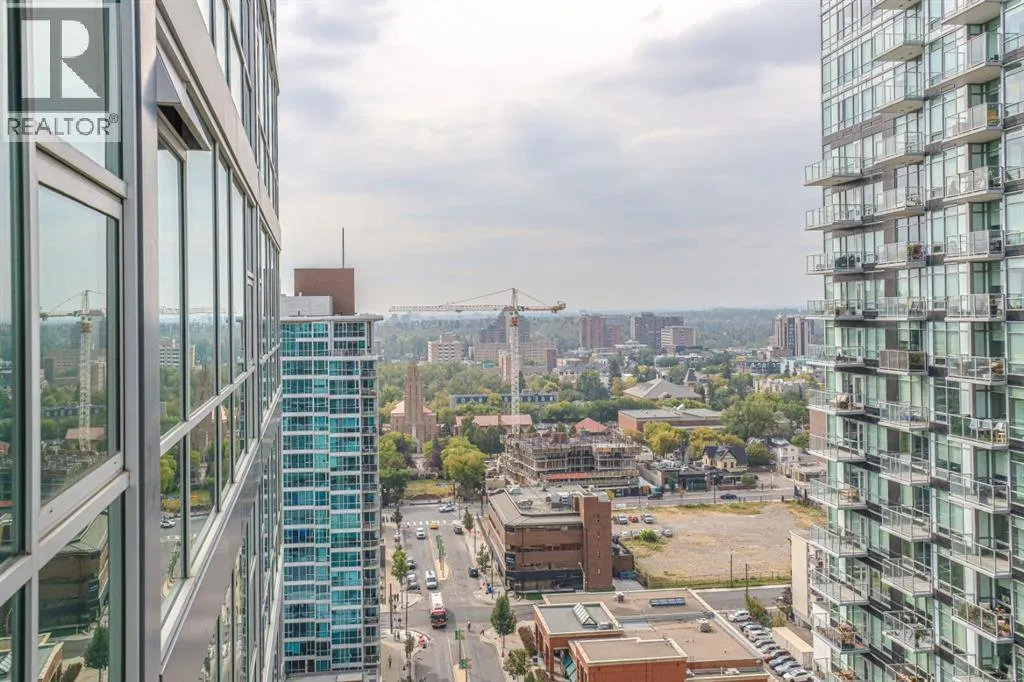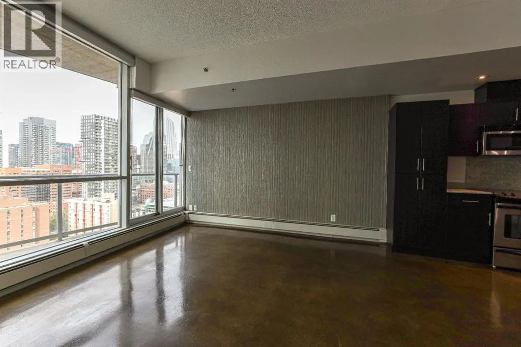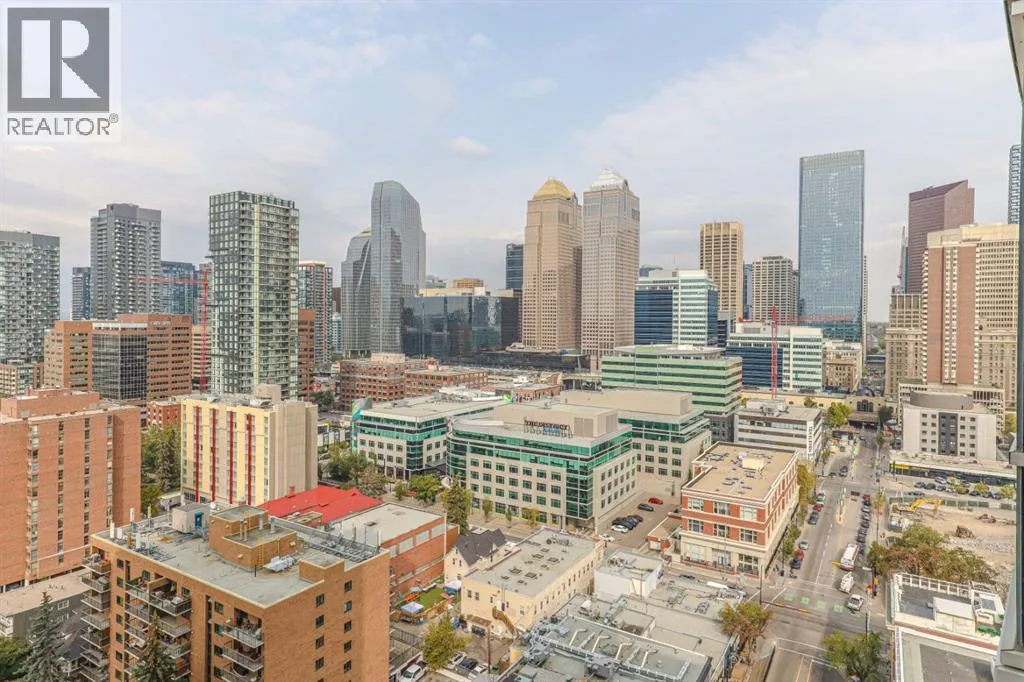 AIRBnB/short term rental friendly building! Perched on the 18th floor, this stylish 2-bedroom, 1-bathroom unit showcases spectacular downtown Calgary views through expansive floor-to-ceiling windows. The bright, open layout features polished concrete floors, in-suite laundry, and comes with a secured, heated parking stall in this solid concrete building. Enjoy a prime Beltline location with a 98/100 Walk Score and 94/100 Bike Scoreâjust steps from some of Calgaryâs best restaurants, cafeâs and shops. Right next door youâll find Vine Arts, Proof Cocktail Lounge, Anytime Fitness and First Street Market. Building amenities include a 4th-floor terrace garden and convenient bike storage. This is inner-city living at its finestâwhether as a home or investment! (id:27476)