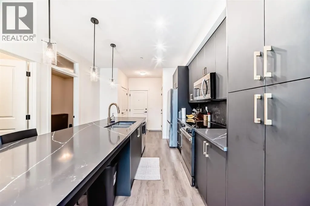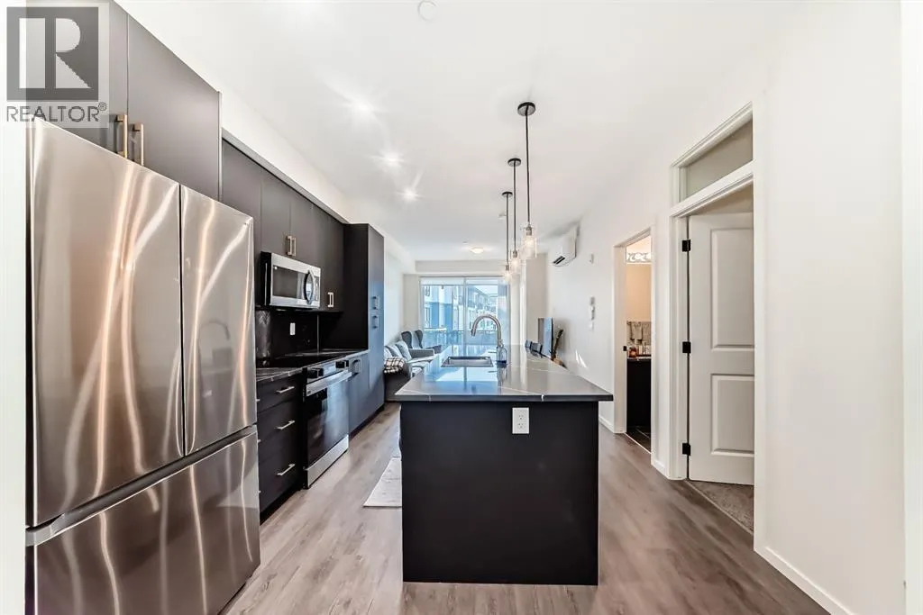 Welcome to Legacy Village! This stunning 2 bedroom, 2 bathroom condo offers 680 sq. ft. of thoughtfully designed living space, perfectly blending comfort and modern style. Built in 2024 with top-notch quality and contemporary finishes, this second-floor unit showcases a sleek open-concept kitchen with quartz countertops, stainless steel appliances, a large island with seating, and elegant cabinetry that maximizes storage.The spacious primary bedroom includes a walk-in closet and ensuite, while the second bedroom and full bathroom provide flexibility for family, guests, or a home office. Enjoy the convenience of in-suite laundry, a private balcony for relaxing or entertaining, and an assigned parking stall just steps away.Residents of Legacy Village appreciate the secure building, stylish common areas, and unbeatable locationâclose to shopping, schools, restaurants, walking paths, and quick access to Macleod Trail and Stoney Trail.Whether youâre a first-time buyer, downsizer, or investor, this home offers incredible value in one of Calgaryâs most desirable communities. (id:27476)