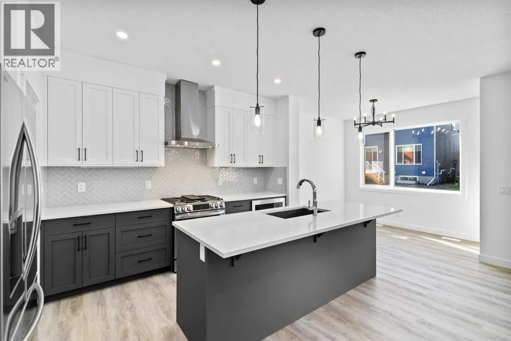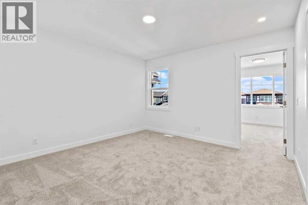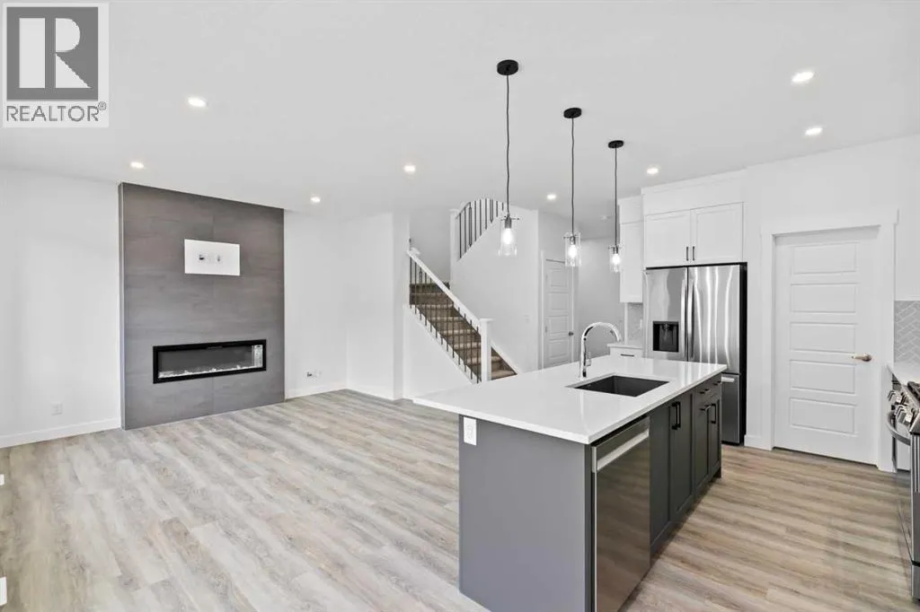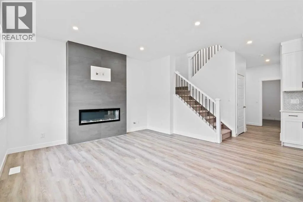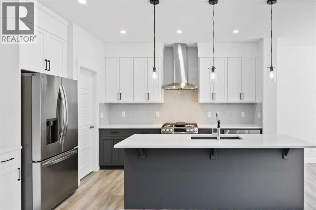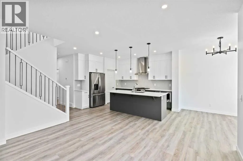 Welcome to Pine Creek â Brand New 2025 Anthem Front Drive Home! This stunning Front Drive 110 model by Anthem Properties offers modern design and thoughtful upgrades throughout. With 4 bedrooms and 3 full bathrooms, including a main floor bedroom and bath option, this home is perfect for growing families or multi-generational living.The main floor impresses with 9-foot ceilings, an open-concept upgraded kitchen featuring Level 2 cabinets to the ceiling, a chimney hood fan, built-in microwave, gas range, fridge with water & ice dispenser, and convenient garbage/recycling pullouts. Gather in the spacious living area with a sleek electric fireplace, while oversized triple pane windows fill the home with natural light. Main to upstairs, boasts stylish open railings lead to the private family spaces. With four bedrooms total, thereâs room for everyone. The home also includes a 9-foot foundation basement for future development and a separate side entrance, offering potential for a suite (subject to city approval). This is a brand new, never-lived-in 2025 construction, ready for you to make it your own. Located in the beautiful community of Pine Creek, youâll enjoy a family-friendly atmosphere surrounded by nature with easy access to Calgaryâs southwest amenities. Donât miss your chance to own a move-in ready new build loaded with upgrades! (id:27476)