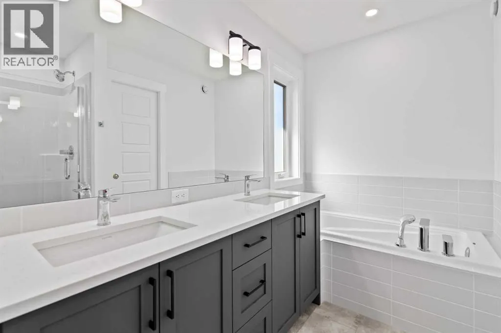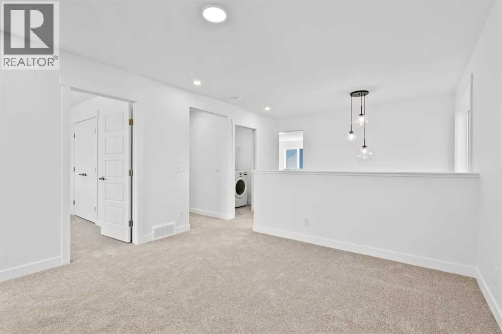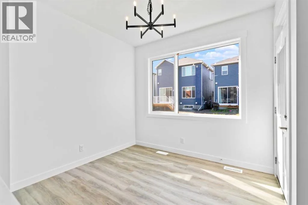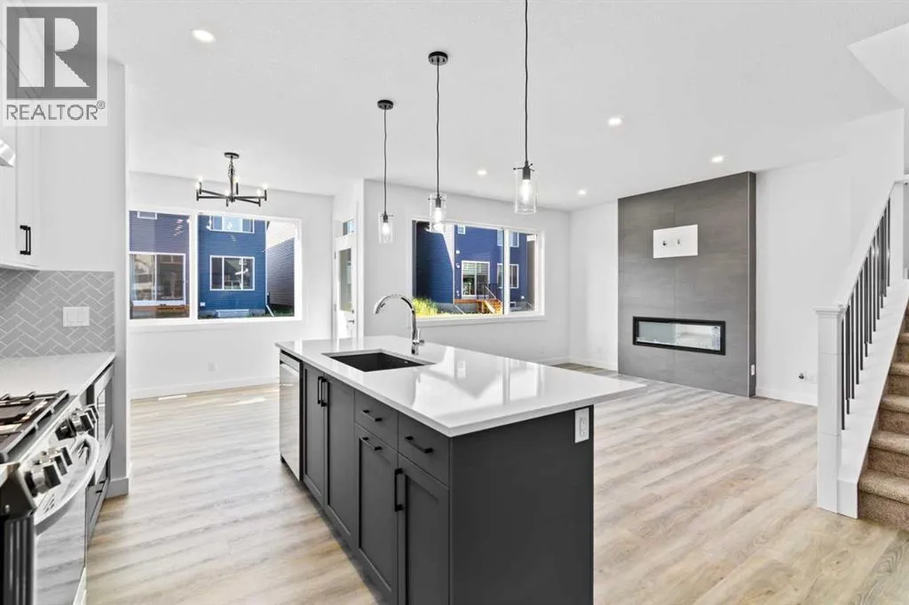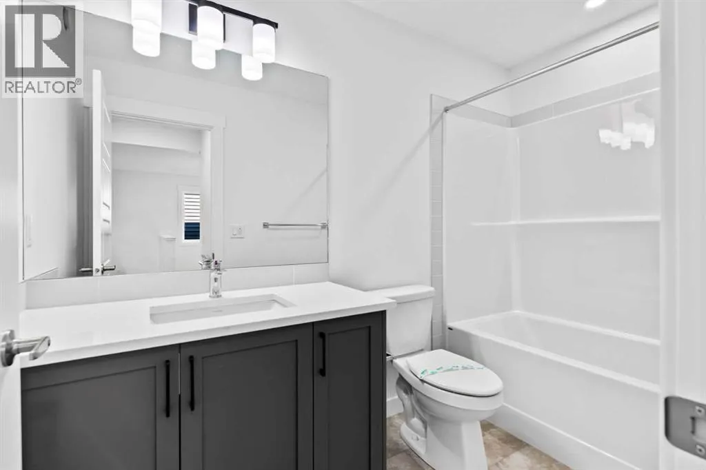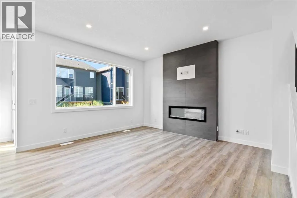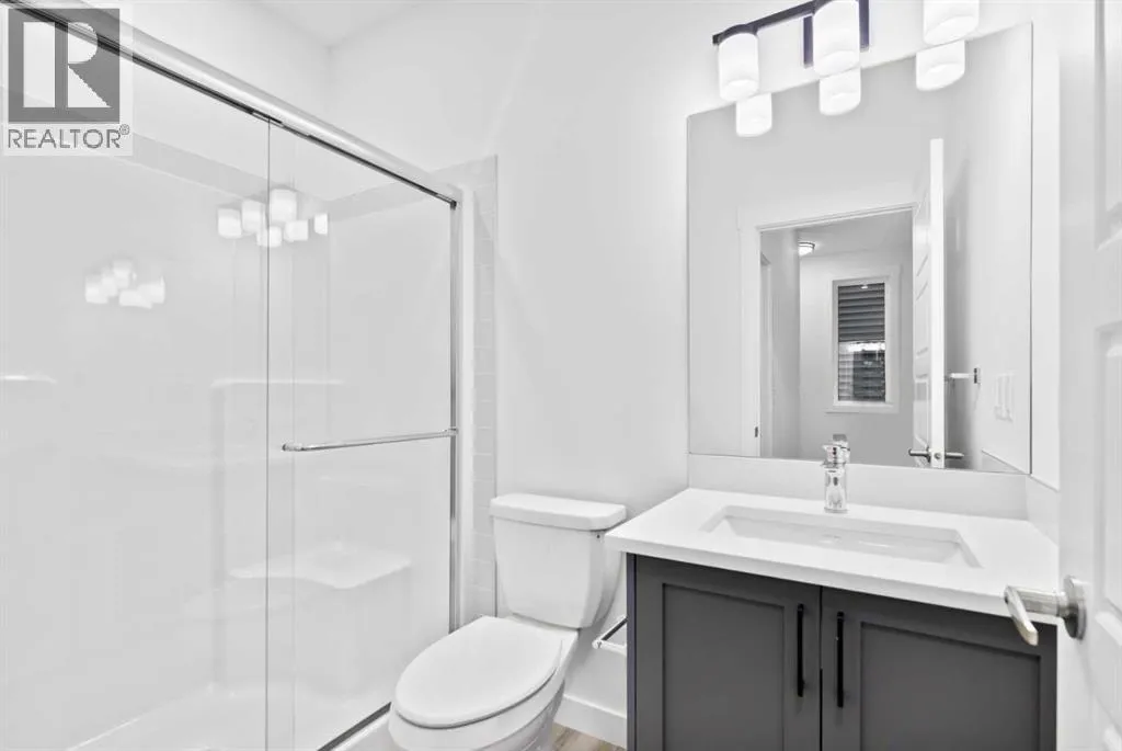 Welcome to Pine Creek â Brand New 2025 Anthem Front Drive Home! This stunning Front Drive 110 model by Anthem Properties offers modern design and thoughtful upgrades throughout. With 4 bedrooms and 3 full bathrooms, including a main floor bedroom and bath option, this home is perfect for growing families or multi-generational living.The main floor impresses with 9-foot ceilings, an open-concept upgraded kitchen featuring Level 2 cabinets to the ceiling, a chimney hood fan, built-in microwave, gas range, fridge with water & ice dispenser, and convenient garbage/recycling pullouts. Gather in the spacious living area with a sleek electric fireplace, while oversized triple pane windows fill the home with natural light. Main to upstairs, boasts stylish open railings lead to the private family spaces. With four bedrooms total, thereâs room for everyone. The home also includes a 9-foot foundation basement for future development and a separate side entrance, offering potential for a suite (subject to city approval). This is a brand new, never-lived-in 2025 construction, ready for you to make it your own. Located in the beautiful community of Pine Creek, youâll enjoy a family-friendly atmosphere surrounded by nature with easy access to Calgaryâs southwest amenities. Donât miss your chance to own a move-in ready new build loaded with upgrades! (id:27476)