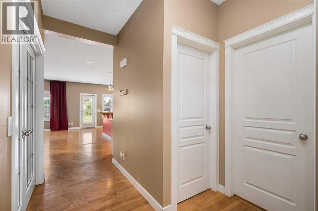 Discover this impeccably cared-for detached residence nestled in the desirable neighbourhood of New Brighton. Offering plenty of space and flexibility, this home features 4 bedrooms and 3.5 bathrooms, making it ideal for families of all sizes or those needing room for guests or extended family.As you enter, you'll be greeted by a welcoming main floor that showcases rich hardwood flooring, a carpeted front flex room perfect for a study or home office, and a handy guest bathroom. The kitchen is both stylish and practical, outfitted with stainless steel appliances and seamlessly connected to the open-concept living area, where a fireplace creates a cozy atmosphere for unwinding or hosting friends.Upstairs, youâll find three well-sized bedrooms, including a tranquil primary suite with a walk-in closet and a spa-inspired ensuite bathroom. A second full bathroom provides comfort and convenience for the remaining bedrooms.The fully finished basement expands your living space, featuring a large rec room with a custom-built entertainment center, included AV setup, and integrated speaker wiring â a dream setup for movie lovers or game nights. You'll also find a fourth bedroom, another full bathroom, and a laundry room equipped with a brand-new washer and dryer.Other updates and upgrades include a central vacuum system and a recently replaced hot water tank. Step outside to a private, landscaped backyard complete with a spacious deck, stone patio, pergola, and a storage shed â a perfect space to enjoy Calgaryâs beautiful summers.This home truly offers a blend of comfort, style, and practicality â all in a welcoming, family-oriented community. An excellent opportunity you wonât want to miss! (id:27476)