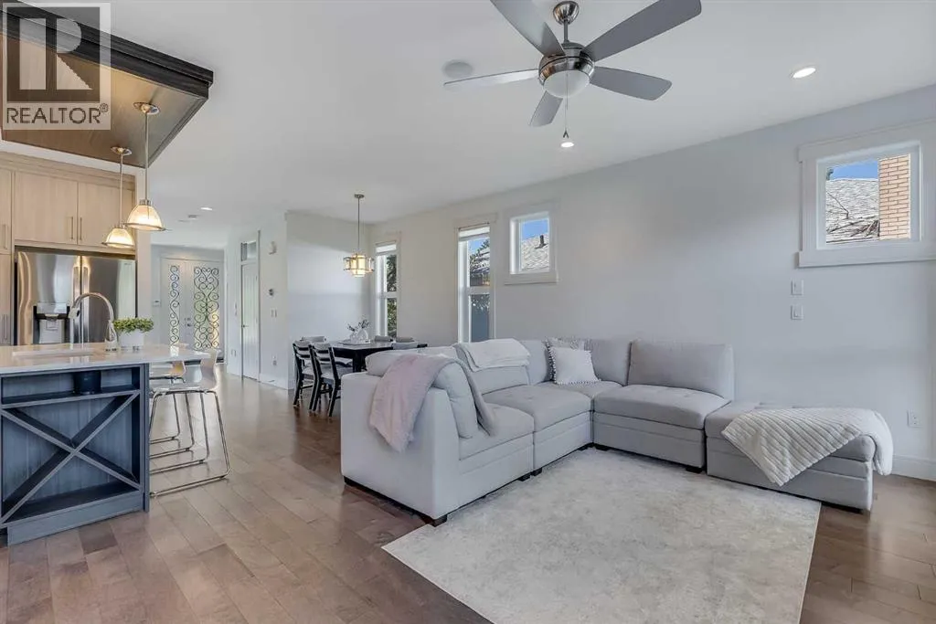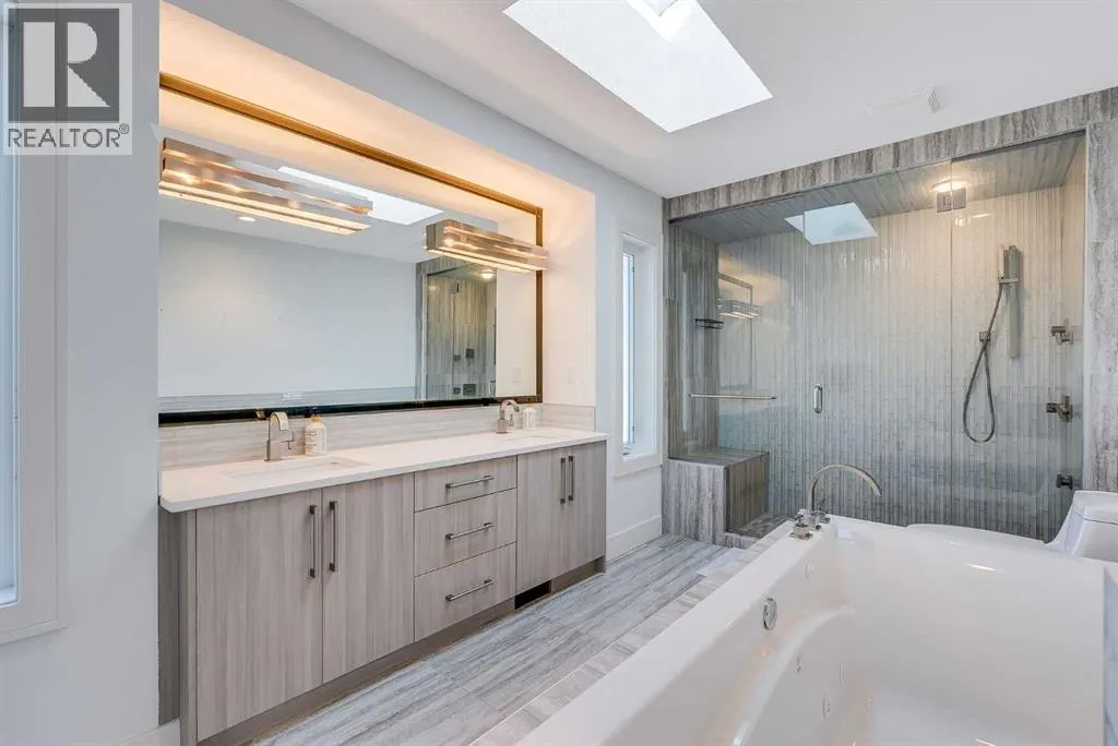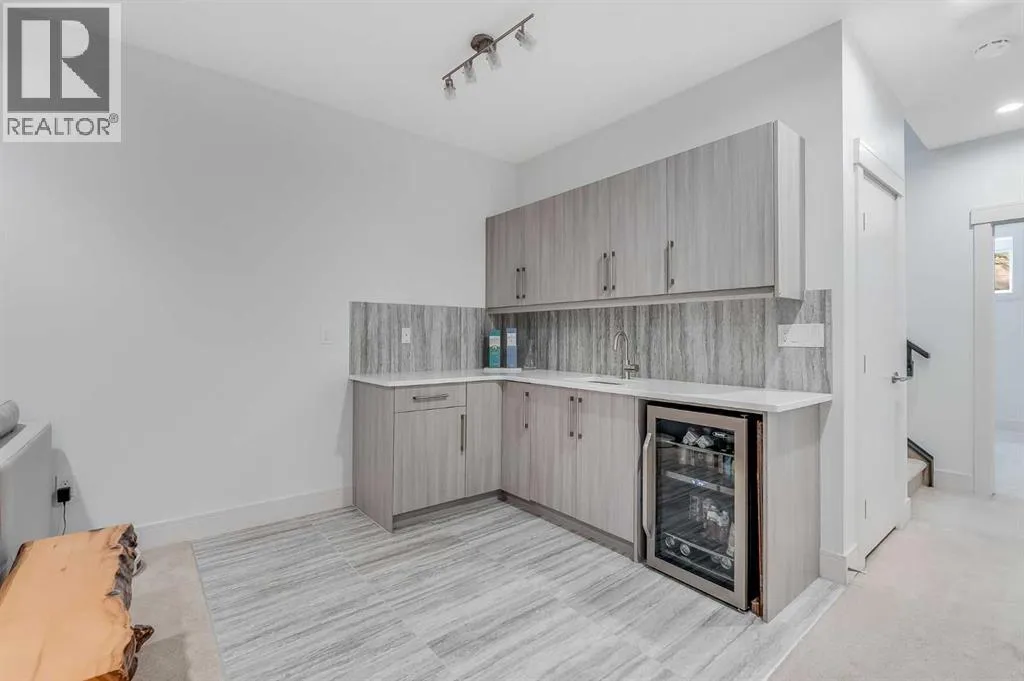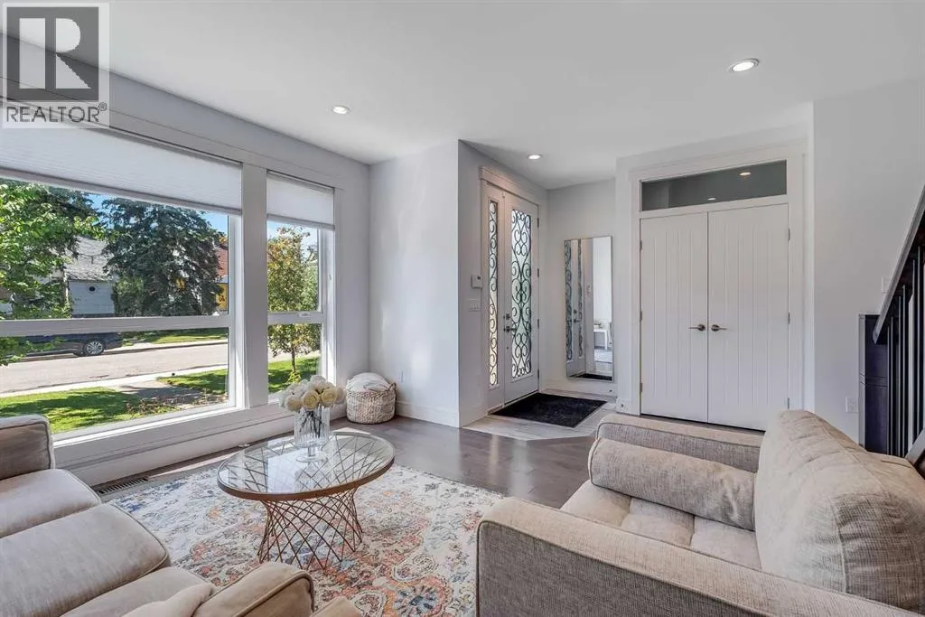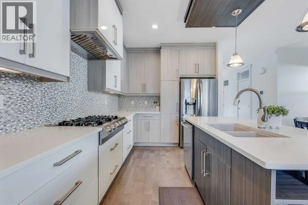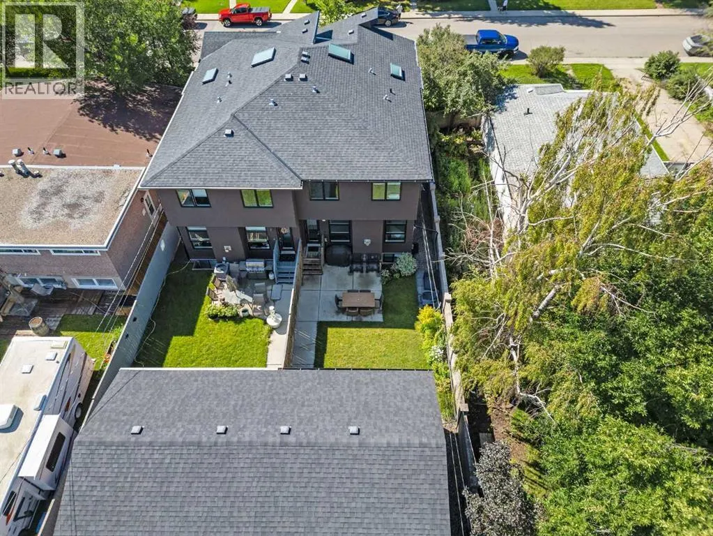Welcome to this modern home in Mount Pleasant, just steps from Confederation Park and minutes to DOWNTOWN, U of C, and SAIT. With OVER 2,800 SQ. FT. of beautifully designed living space, this property blends style, comfort, and functionality.The main level is bright and open, showcasing WIDE PLANK HARDWOOD floors, a dramatic OPEN-RISER STAIRCASE, and a stone-accented fireplace. The chefâs kitchen is equipped with sleek cabinetry, QUARTZ counters, a 6-burner GAS COOKTOP, built-in wall oven, and a large island with wine storage, perfect for everyday living and entertaining.Upstairs, the VAULTED primary retreat offers a PRIVATE BALCONY, custom walk-in closet, and SPA-INSPIRED ENSUITE with dual vanities, a JETTED TUB, oversized rain shower, and skylights. Two additional bedrooms share a full bath, while an OPEN DEN WITH CUSTOM BUILT-IN CABINETRY creates an ideal home office or study space. A convenient LAUNDRY ROOM WITH SINK completes this level.The FULLY DEVELOPED BASEMENT extends your living space with a second fireplace, BUILT-IN MEDIA SHELVING, a WET BAR with beverage fridge, a fourth bedroom, and a luxurious STEAM SHOWER.Outside, the sunny, LANDSCAPED BACKYARD offers the best of inner-city living with enough outdoor space to relax, entertain, and garden, a rare combination of privacy and space so close to it all. The detached DOUBLE GARAGE is insulated and drywalled, while CENTRAL AIR CONDITIONING ensures year-round comfort.This coveted location provides access to TOP SCHOOLS, the winter club, golf, shops, cafes, and an easy commute to DOWNTOWN. Do not miss your chance to enjoy the perfect balance of high-end design and everyday practicality. Book your private showing today. (id:27476)