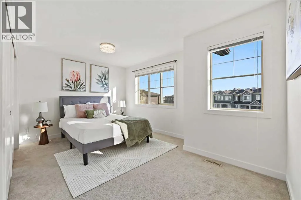 Welcome to incredible value in Sage Hill! This stylish and modern townhome offers three spacious bedrooms, each with its own ensuite bathroomâperfect for investors, families, or those who love hosting out-of-town guests. The entry level features a private bedroom with a full ensuite, ideal for guests or a home office. On the next floor, youâll find a bright and open kitchen and dining area, complete with sleek stainless steel appliances, stone countertops, and plenty of room for entertaining. The living room is filled with natural light and provides direct access to the southwest-facing backyard that backs onto green space and a walking trailâperfect for enjoying sunshine all day long. The top floor boasts two generous primary suites, each with a walk-in closet and private ensuite, along with a conveniently located laundry area featuring a stacked washer and dryer. Situated just minutes from Stoney Trail, this home offers easy access to shopping, dining, Walmart, and Creekside Shopping Centre. With its unbeatable layout and location, this is truly one of the best opportunities Sage Hill has to offer. Contact your favourite Realtor today to book a private showing! (id:27476)