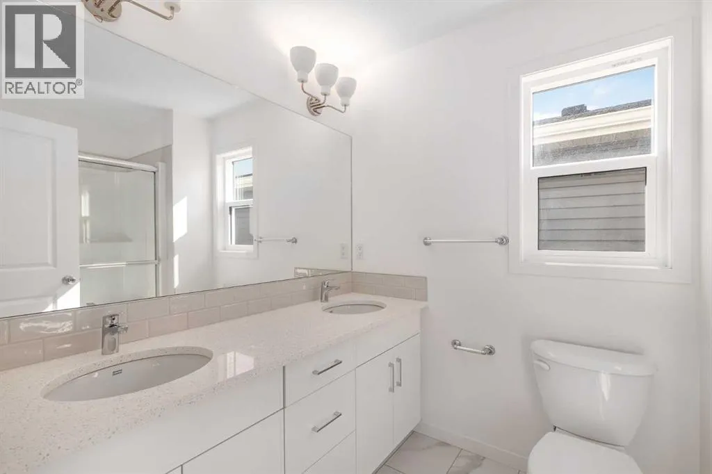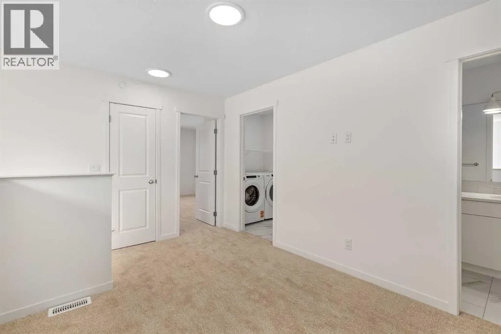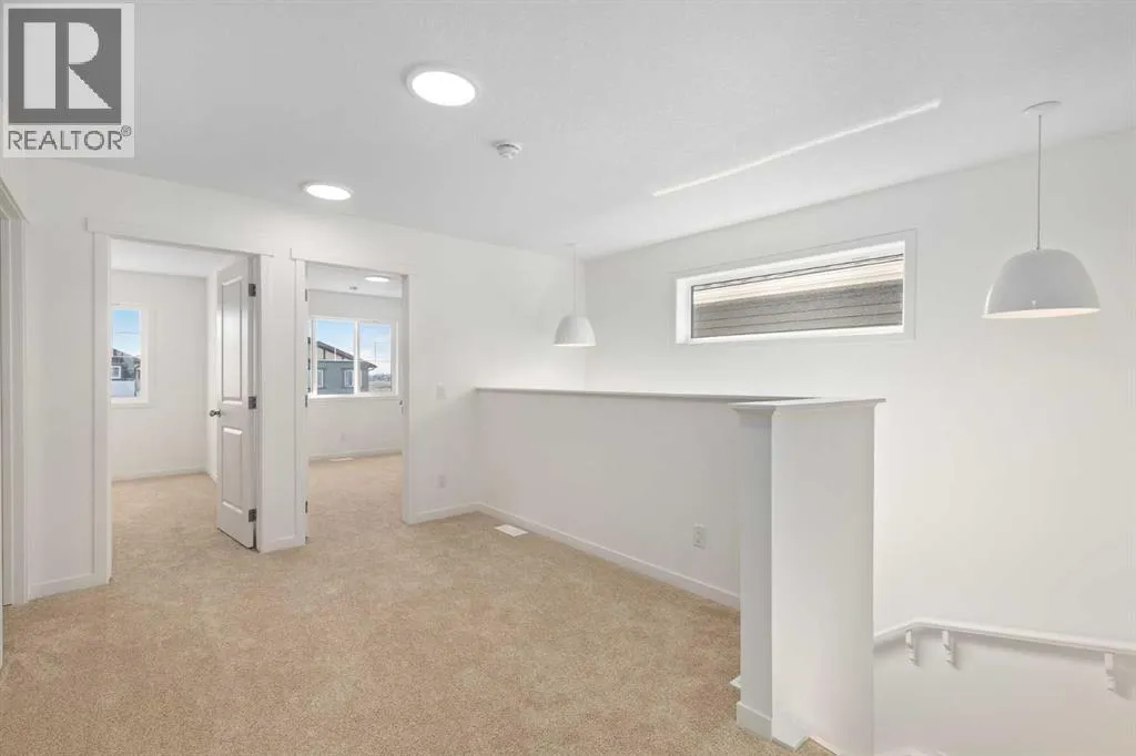 Welcome to this brand-new âLyallâ floor plan, a beautifully crafted home that blends modern style with functional design. From the moment you step inside, youâre greeted by soaring 10â ceilings and warm luxury vinyl plank flooring that flows throughout the main level. At the front, a versatile flex room offers the perfect space for a home office, reading nook, or play area. Moving toward the back, the open-concept living space unfolds with a bright and inviting living room, complete with an elegant electric fireplace, an oversized dining area ideal for family gatherings, and a stunning kitchen that serves as the heart of the home. The kitchen is a true showpiece, featuring timeless white cabinetry extended to the ceiling, quartz countertops, a hammered white subway tile backsplash that wraps around the sleek range hoodfan, stainless steel appliances, and a spacious islandâperfect for both everyday meals and entertaining. Upstairs, a central loft provides a flexible second living space and creates separation between the primary suite and the additional bedrooms. The staircase is highlighted with modern black spindle railing, adding a contemporary touch to the homeâs design. The spacious primary retreat includes a walk-in closet and a spa-inspired 4-piece ensuite with dual sinks. Two more bedrooms, a full 4-piece bathroom, and a convenient upper laundry room complete this level. The fully finished basement adds incredible value with two additional bedrooms, a large rec room, and a 4-piece bathroom. With a separate entrance, itâs roughed in for a wet bar and extra laundry. **This home also comes complete with full front and backyard landscaping, including sod, mulch on the side yards, and trees/shrubs in the front as per community guidelines. Located in the growing southeast community of Hotchkiss, this home offers more than just a beautiful interior. Residents here enjoy a family-friendly setting with scenic pathways, green spaces, and quick access to major routes lik e Stoney Trail and Deerfoot. Youâre also just minutes away from the amenities of Seton, including restaurants, shopping, the South Health Campus, and recreation options. This is your opportunity to own a brand-new, move-in ready home in one of Calgaryâs up-and-coming communitiesâcomplete with a finished basement and high-end upgrades that make it truly stand out. (id:27476)