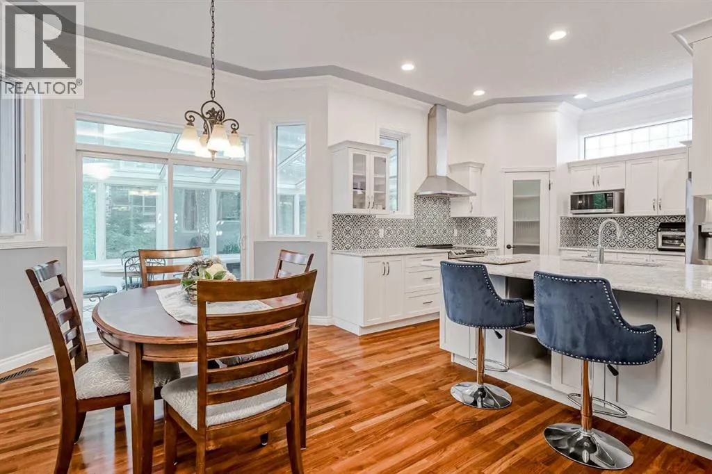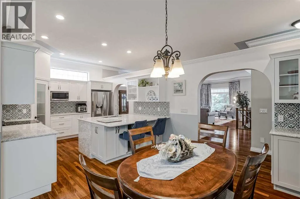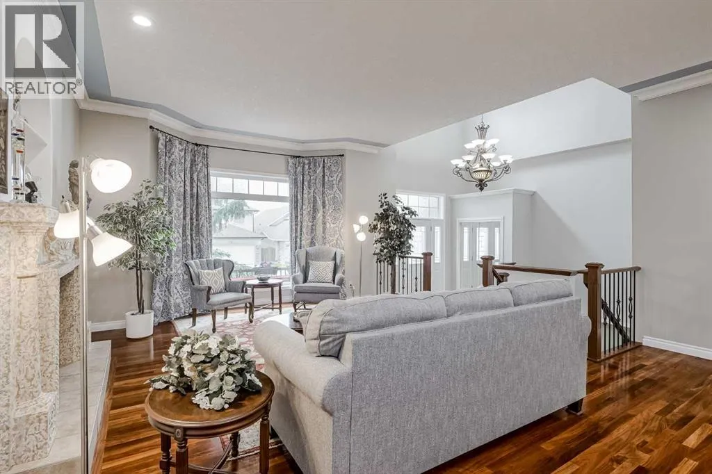 **OPEN HOUSE SUN NOV 16th - 2PM TO 4PM** Tucked away on a quiet street near parks and walking paths in the coveted NW community of Rocky Ridge, this custom-designed raised bungalow offers timeless elegance, modern updates, and thoughtful design. Situated on an expansive 8,500+ sqft lot, this home impresses inside and out. **From the welcoming west-facing front porch, step into a grand foyer with tiled floors, wrought iron railings, and soaring 17-foot ceilings. The main level features Brazilian mahogany hardwood floors and 10-foot ceilings. A striking Tyndall stone fireplace anchors the family room, seamlessly connecting to the formal dining areaâperfect for entertaining. **The updated kitchen boasts two-tone grey and white cabinetry, quartz countertops, intricate backsplash tiles, wall oven with microwave, induction stove with warming drawer, decorative range hood, and premium stainless appliances. The custom peninsula with quartz waterfall edge adds style and storage, while a dining nook leads to the fully enclosed four-season sunroom with electric fireplace, overlooking the private backyard. **The main-floor primary suite offers private deck access, dual sinks, jetted tub, separate shower, and walk-in closet. A second bedroom with Murphy bed and full bath provide flexibility. **The fully finished walk-up basement impresses with 9-foot ceilings, a large recreation room with second fireplace, and a wet bar with microwave and dishwasher. Two additional bedrooms (one with walk-in closet) and another full bath complete the level. **Step outside to a backyard oasis with covered patio and BBQ gas line, underground irrigation, finished playhouse/bunky, greenhouse, fruit trees, mature landscaping, and a fire pit area with interlocking brick patio and propane fire table. The front yard features low-maintenance zeroscaping. **Additional highlights include central air conditioning, spray foam insulation in walls and attic for high efficiency, an oversized heated triple garag e with tandem bay, and a loft/mezzanine for storage or hobbies. **As a resident, enjoy access to the Rocky Ridge Ranch HOA with tennis and basketball courts, summer splash pad, lake with canoes and kayaks, winter skating rink, and community hall rentals. **This remarkable home blends sophistication, comfort, and functionality, perfectly designed for everyday living and unforgettable entertaining. Love where you live. Call your favourite Realtor today!** (id:27476)