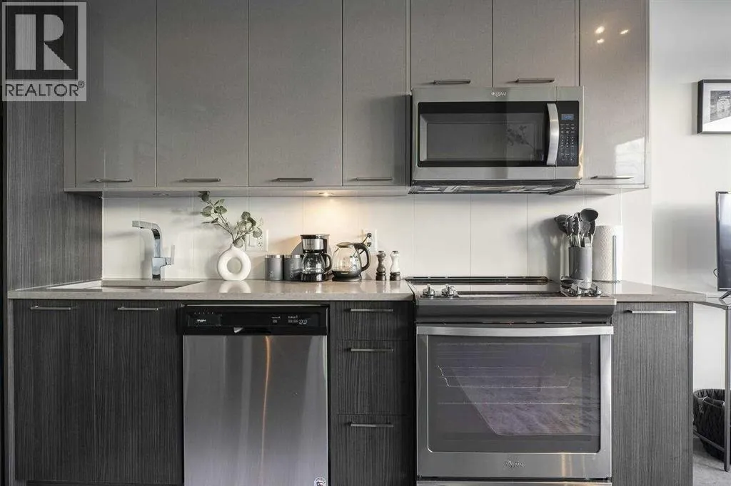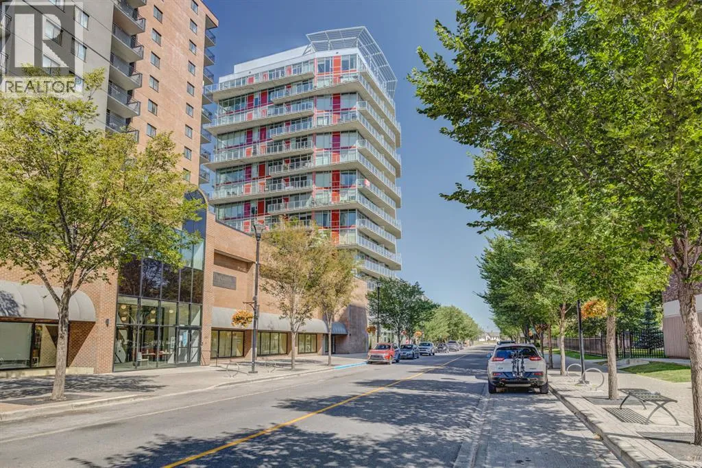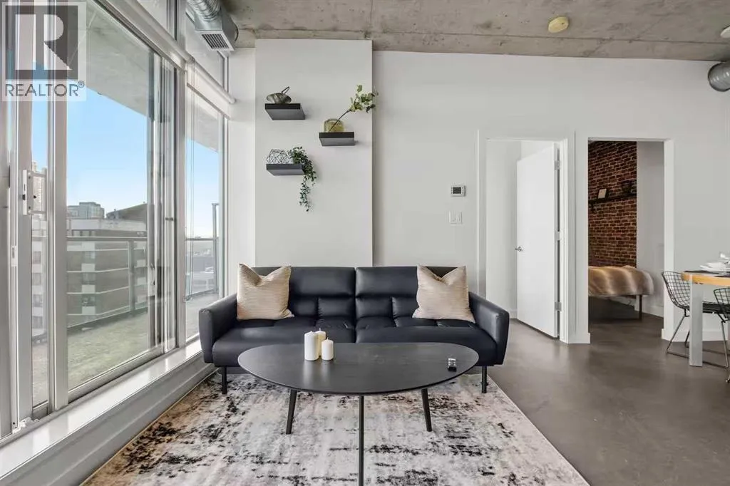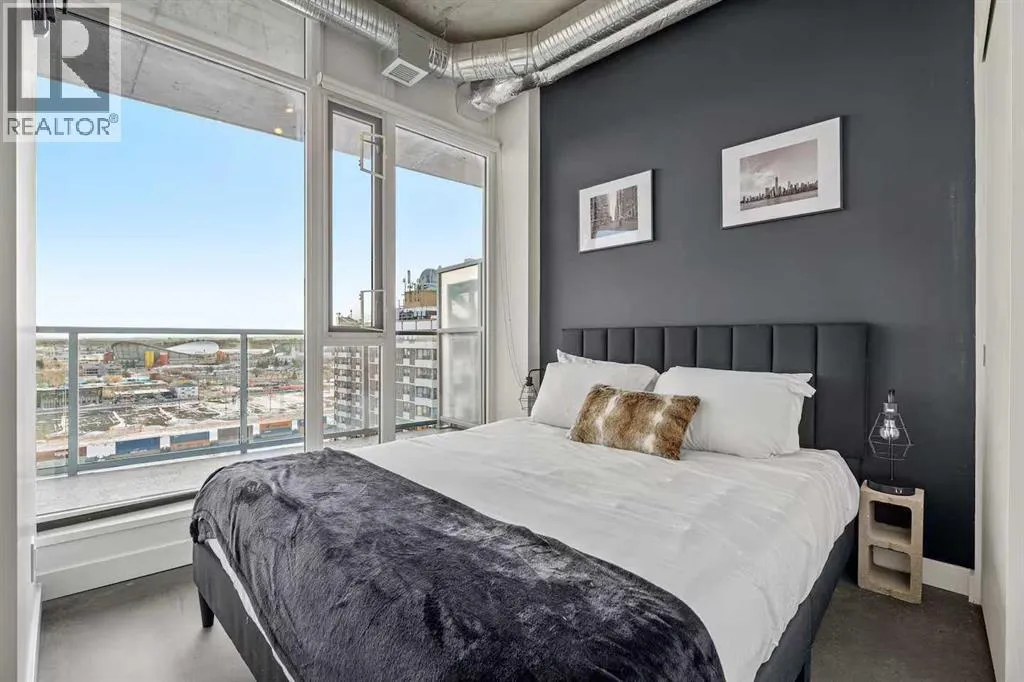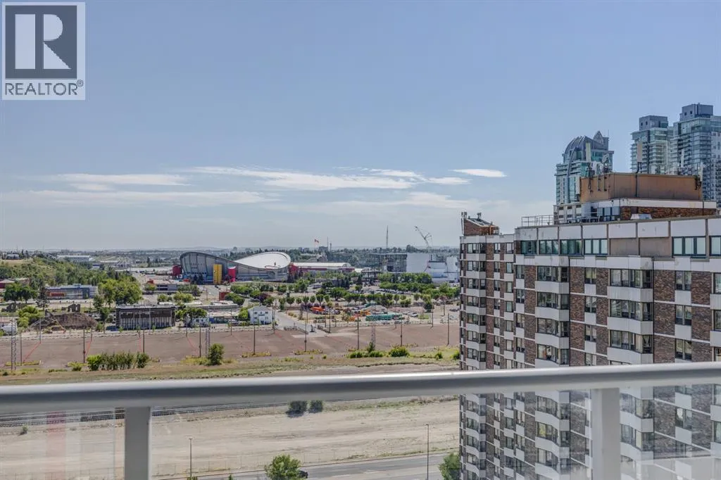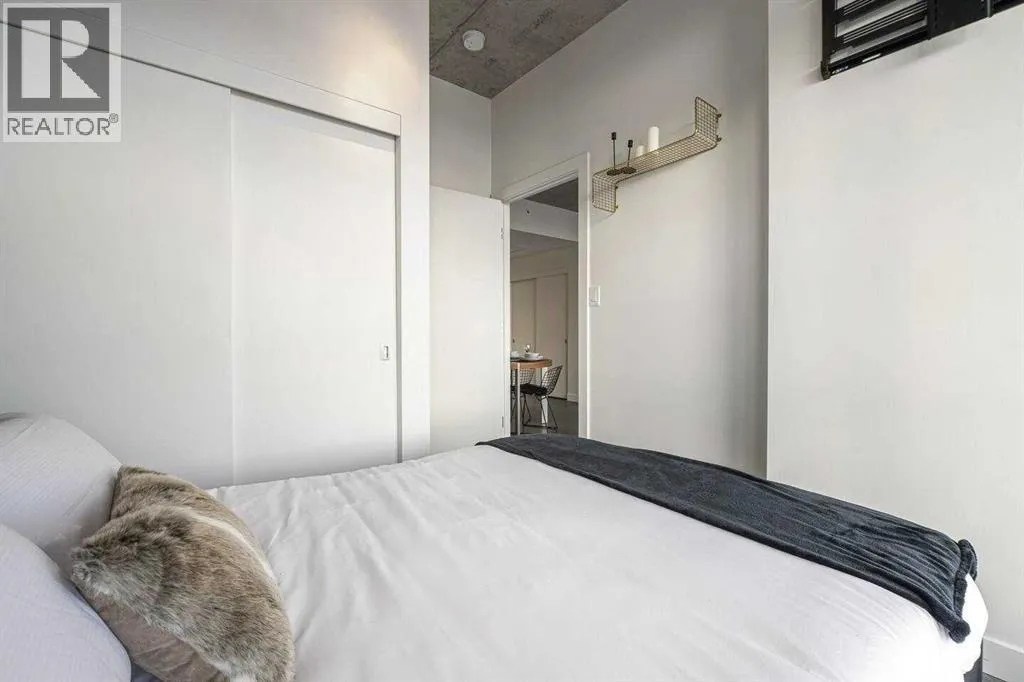 Welcome to INK by Battistellaâwhere modern design meets vibrant downtown living. Perfectly situated in the heart of East Village, this striking condo is ideal for first home owners and professionals seeking a stylish urban retreat! Just steps from the City Hall LRT, Superstore, the award-winning Central Library, National Music Centre, Studio Bell, RiverWalk, and St. Patrickâs Island, this is truly the best of Calgary at your doorstep. Inside, this sun-drenched south-facing residence showcases uninterrupted views of the Saddledome and Stampede Grounds through expansive floor-to-ceiling windows. The industrial loft-inspired design exudes sophistication with 9â exposed concrete ceilings, matte polished concrete floors, and central air conditioning for year-round comfort. The open-concept layout includes a versatile den/office (currently used as a bedroom), spacious primary bedroom, and a sleek 4-piece bathroom. The kitchen is a showpiece in itself, boasting quartz countertops, glossy metal upper cabinetry, premium hardware, and full-size stainless-steel appliancesâseamlessly blending function and style. With in-suite laundry and a modern floorplan, this residence is perfectly tailored for the urban lifestyle. Whether youâre seeking your own inner-city sanctuary or a rental investment, INK offers a rare opportunity to own in one of Calgaryâs most dynamic communities! (id:27476)
