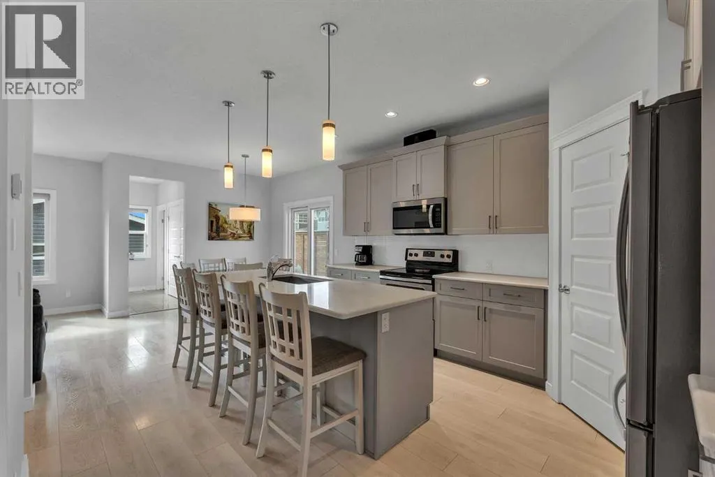 Welcome to this beautiful 1786 sqft home on a HUGE CORNER LOT in Cornerstone; 6 bedrooms, 3.5 baths, fully finished basement by the builder, & double detached garage! Main level: 9ft ceilings, laminate and tile flooring; there is a good size living room in the front and a large family room at the back of the house; the kitchen offers tasteful cabinets w/ crown molding, quartz countertops, stainless steel appliances, and a corner pantry; the spacious dining room leads to the huge wrap around and two tier deck, which also has a BBQ gas line; a half bath and laundry complete the main level. Upstairs you'll find a large primary bedroom w/ a walk-in closet & full ensuite bath that has a soaker tub & separate shower; there are 3 more good size bedrooms on this floor & another full bath; all bathrooms in the house have quartz countertops. The builder-developed fully finished basement offers 9 ft ceilings, a very large rec room, one bedroom, & a full bath. Windows in this home are enlarged for extra natural light, especially in the basement. Parking is never a problem w/ the double detached garage, extra gravel pad next to garage, & street parking in front and on the side, since it's a corner lot. Well located near variety of shopping, pond, parks, bike/walk pathways, and close to Stoney Trail. Don't miss this well-priced home, call today.SELLER WILL NOT REPAIR THE DAMAGE ON SIDING ON WEST SIDE OF THE HOUSE. (id:27476)