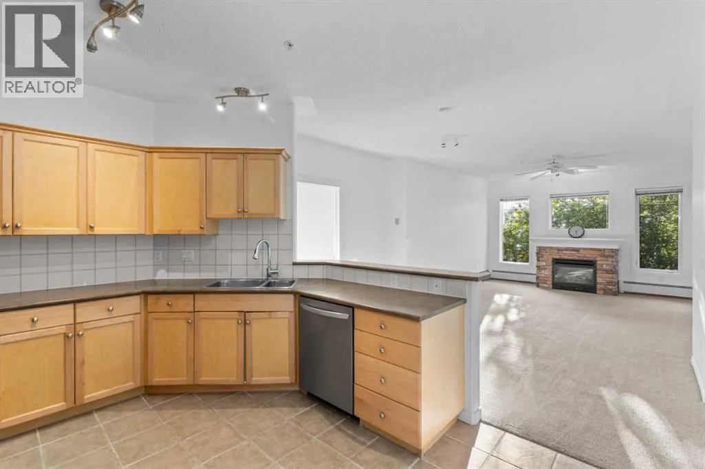 Welcome to this stunning 2-bedroom plus den condo in the highly sought-after Waterford of Erlton. This third-floor unit offers a spacious open-concept layout with a large living room filled with natural light from its big windows. The modern kitchen boasts recently upgraded stainless steel appliances and ample cabinet and countertop space. The large primary bedroom features a walk-in closet and a luxurious 4-piece ensuite bathroom with a corner soaker tub. The second bedroom is ideally situated on the opposite side of the condo, ensuring privacy. Additionally, there's a versatile den that could be used as an office, hobby room, or for accommodating guests. Enjoy relaxing on your private, covered, west-facing balcony that has a storage closet, ideal for storing seasonal items. This condo includes a titled parking stall conveniently located close to the elevator. Residents of the Waterford have access to fantastic amenities including a car wash, game room, meeting gazebo, well-maintained courtyard, and indoor bike storage. This condo was recently painted throughout. Located just steps away from the Elbow River, Lindsay Park, MNP Sports Center, dog parks, and the Saddledome, with easy access to the Stampede Grounds and Erlton C-Train station. A quick 6-minute drive will take you to downtown Calgary. Donât miss out on this exceptional opportunity! (id:27476)