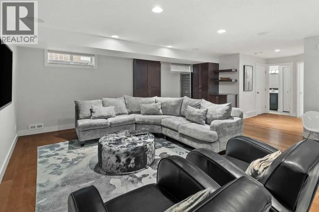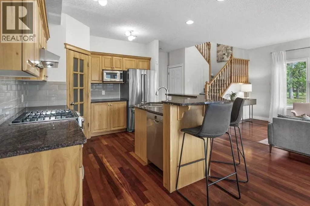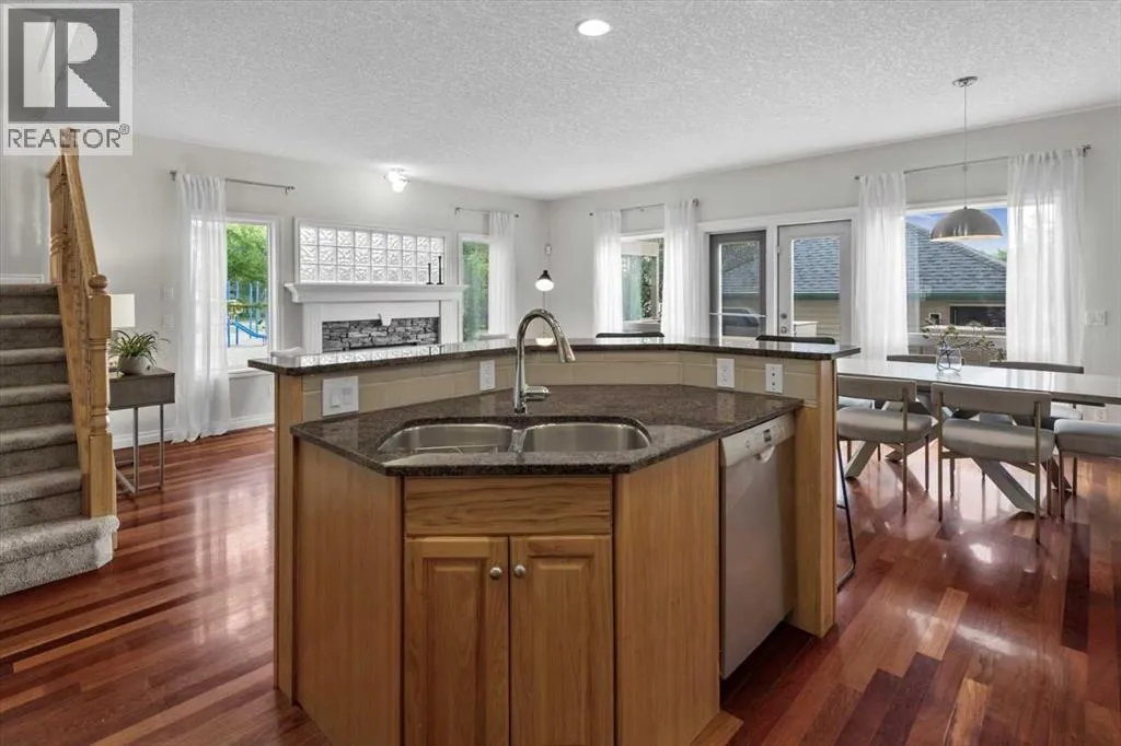 Charming park-side family home built with love in year 2000 located on a quiet cul-de-sac and Passchendaele Park. Enjoy the gorgeous park beside this inviting 3 bedroom, main floor office, lower level fitness room, and 3.5 bathroom home that offers over 2,500 sq. ft. mostly original but well laid out living space in one of Calgaryâs most desirable communities, Garrison Woods. Recent upgrades include full home newly painted, new light fixtures throughout, central air conditioning, new roof 2024, and new siding 2024. The main level welcomes you with 9â ceilings, hardwood floors, and a bright open layout. A private front office inspires productivity with serene park views, while the spacious living room with a feature fireplace flows effortlessly into the dining area and kitchen. Designed for both everyday living and entertaining, the kitchen boasts granite counters, a central island with seating, abundant cabinetry, and stainless steel appliances. French doors lead to the private newly refinished dual deck complete with built-in seating and planters, and the fully fenced backyard â perfect for summer gatherings.Upstairs, the serene primary retreat offers a walk-in closet and a spa-like 5-piece ensuite with heated floor, dual sinks, a jetted soaker tub, and a separate shower. Two additional bedrooms, a full bathroom, and a convenient laundry room complete the upper level.The fully developed basement expands your living space with a large family/recreation room, dry bar with wine fridge, a fourth bedroom, full bathroom, and room for fitness equipment or play room.Additional highlights include a Sonos sound system, new air conditioner, double detached garage, and the unmatched lifestyle of Garrison Woodsâwhere walkable streets, playgrounds, top-rated schools, and the vibrant shops and dining of Marda Loop are just minutes away. With quick access to downtown and Mount Royal University, this home offers both convenience and community.If youâre seeking the perfect bl end of design, comfort, and locationâlook no further. Schedule your private showing today and discover why this is more than a house, itâs your familyâs next home. (id:27476)