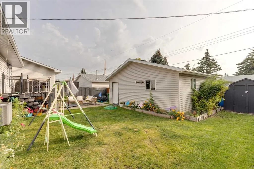 **BACK ON THE MARKET DUE TO FINANCING** Great family home with 5 bedrooms, 3 up and 2 down! This home has had many upgrades in recent years for you to enjoy. And the long list of upgrades includes: air conditioning, laminate flooring on the main, newer windows, updated bathrooms, a dishwasher, a new electrical panel, a new front door, a large fence in the back yard, newer vinyl siding, newer roof, and a new double garage. The main level has a nice layout, with newer laminate flooring throughout, a spacious living area and a large dining space with a door to the large back yard. The kitchen offers a backsplash and has a new dishwasher. Besides the 3 bedrooms up, there is a 4-pc bathroom on the main, also recently updated. The lower level offers another great family room with large, new windows for plenty of natural light. Here, two more bedrooms and a 3-pc, updated, bathroom makes this level complete. The garage was built in 2018. It is oversized, heated and insulated. In addition, there is a RV parking pad. The back lane is paved. With a nice 50 ft wide lot, the backyard offers a great space to enjoy and includes a shed and veggie box. The home is close to several schools and shops and has easy access to both Memorial Drive and Stoney Trail. A great place to call home so don't delay requesting a showing! (id:27476)