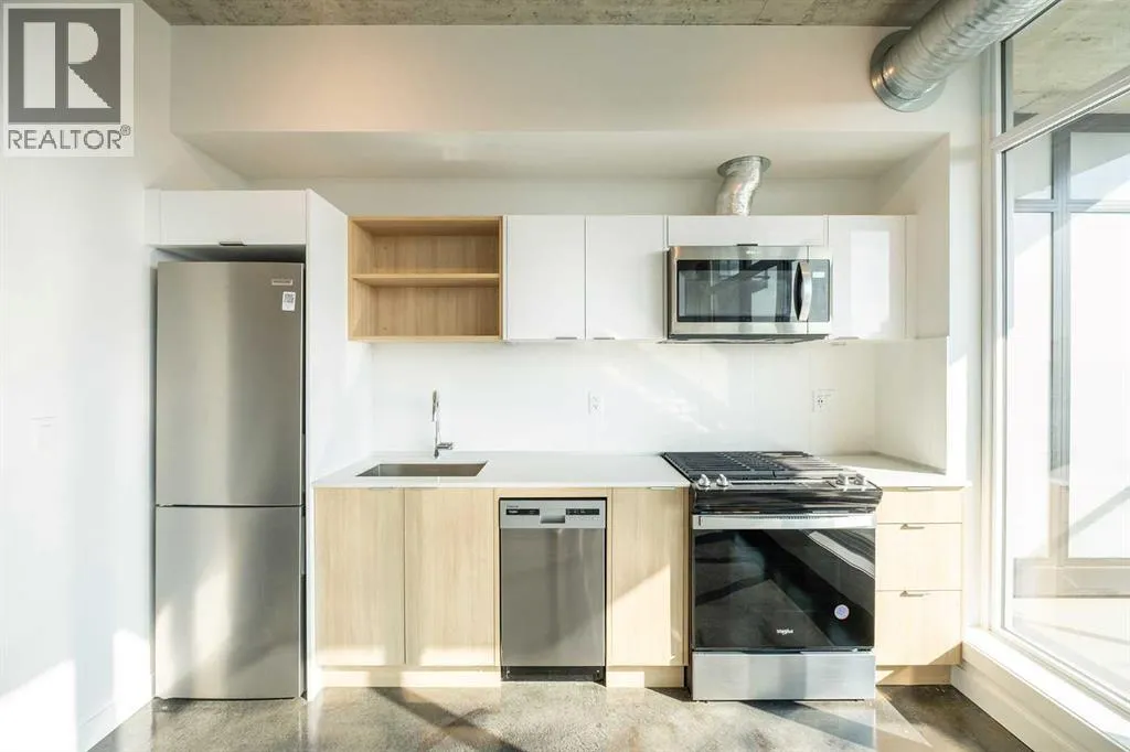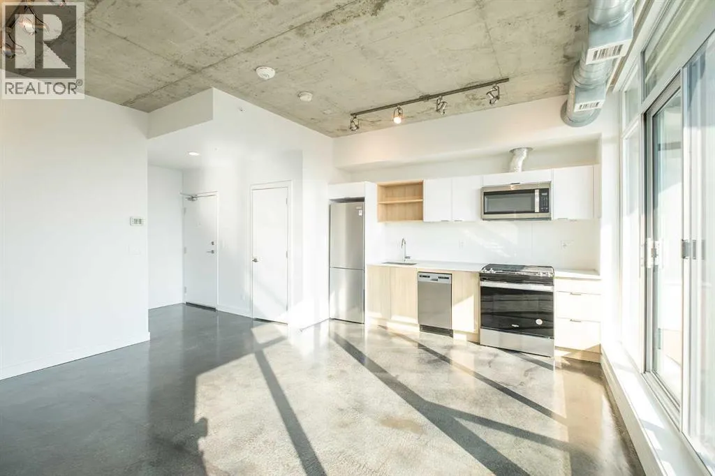 If you're looking for a new asset with the potential for cash flow, this studio condo in NUDE by Battistella is it. Located on the west side of the Beltline - where new builds are rare - this 2024-built condo checks the boxes for short-term and long-term rental income. Inside, youâll find the design todayâs renters want: cool & modern aesthetic, 9.5ft exposed concrete ceilings, polished concrete floors, and floor-to-ceiling windows showcasing stunning views of the downtown skyline and Calgary Tower. The open-concept layout is compact and efficient, with in-suite laundry, a full 4-piece bathroom, central A/C and a balcony complete with a gas hookup. There are also rooftop social spaces: kitchen, bathroom, games room with pool table, and 360° city views - big perks for guest experiences and listing photos. The building is short-term rental compliant (Airbnb!) and only steps from the Sunalta C-Train station. The area has a strong rental demand and was constructed by Battistella, a trusted local boutique developer known for quality builds. Whether you self-manage or use a management company, this unit is ideal for Airbnb or long-term leases. Turn the key and start generating income! (id:27476)