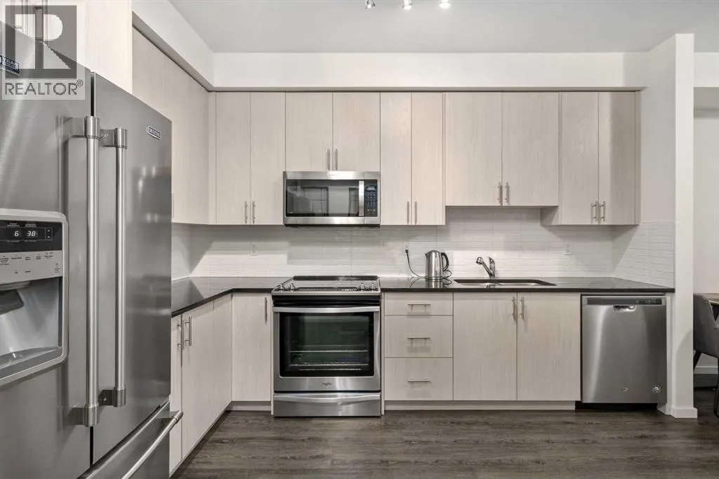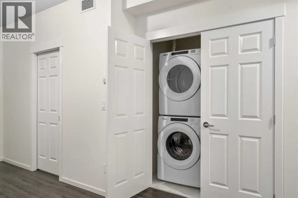 Welcome to a truly exceptional offering â a very rare CORNER EXTRA LARGE (NEARLY 1000 SQ.FT) apartment condo in the highly sought-after Legacy Park. This residence is EXTREMELY CLEAN and feels virtually BRAND NEW. Built by award-winning Brad Remington Homes, one of Calgaryâs most respected and high-quality builders, this property delivers exceptional craftsmanship and attention to detail.This particular unit remained unoccupied until August 2023 and has been used only very gently since. All Whirlpool appliances are in pristine condition, and youâll enjoy the incredible bonus of 2 UNDERGROUND TITLED PARKING STALLS â a rarity in todayâs market â along with a secure storage locker ideal for tires, bikes, and seasonal belongings.Inside, you are greeted by 9' ceilings that create a sense of openness and light. The kitchen is a chefâs delight, featuring GRANITE COUNTERTOPS, extended cabinetry and abundant cupboard space. Luxury vinyl flooring flows through the main living areas, while the bedrooms are finished with lush, soft carpet for a touch of warmth and comfort. The spacious laundry room provides excellent additional storage, keeping your home organized and functional.The primary suite is a private retreat, complete with a WALKTHROUGH CLOSET with built-in shelving and a stunning, state-of-the-art 5PC ENSUITE bathroom. The second bedroom is equally impressive, boasting 3 WINDOWS for natural light and its own WALK-IN CLOSET with built-in cabinetry. Every inch of this home has been immaculately cared for, leaving it absolutely squeaky clean and move-in ready.The location is second to none â within walking distance to a vibrant shopping plaza with restaurants, coffee shops, and Sobeys, a nearby high school, and a vast park that connects to the beautiful Fish Creek Park. Two serene ponds sit just across the street, along with a network of walking and biking pathways, offering endless opportunities for outdoor enjoyment. With LOW CONDO FEES and an unbeatable combin ation of style, quality, and convenience, this home is an outstanding opportunity that must be seen to be appreciated. (id:27476)