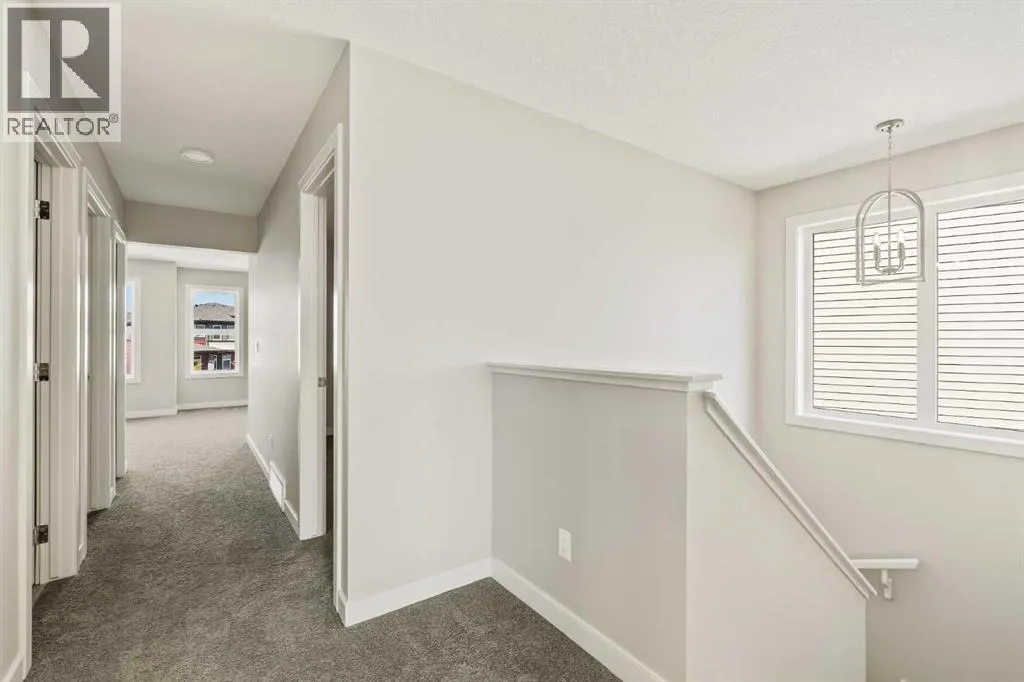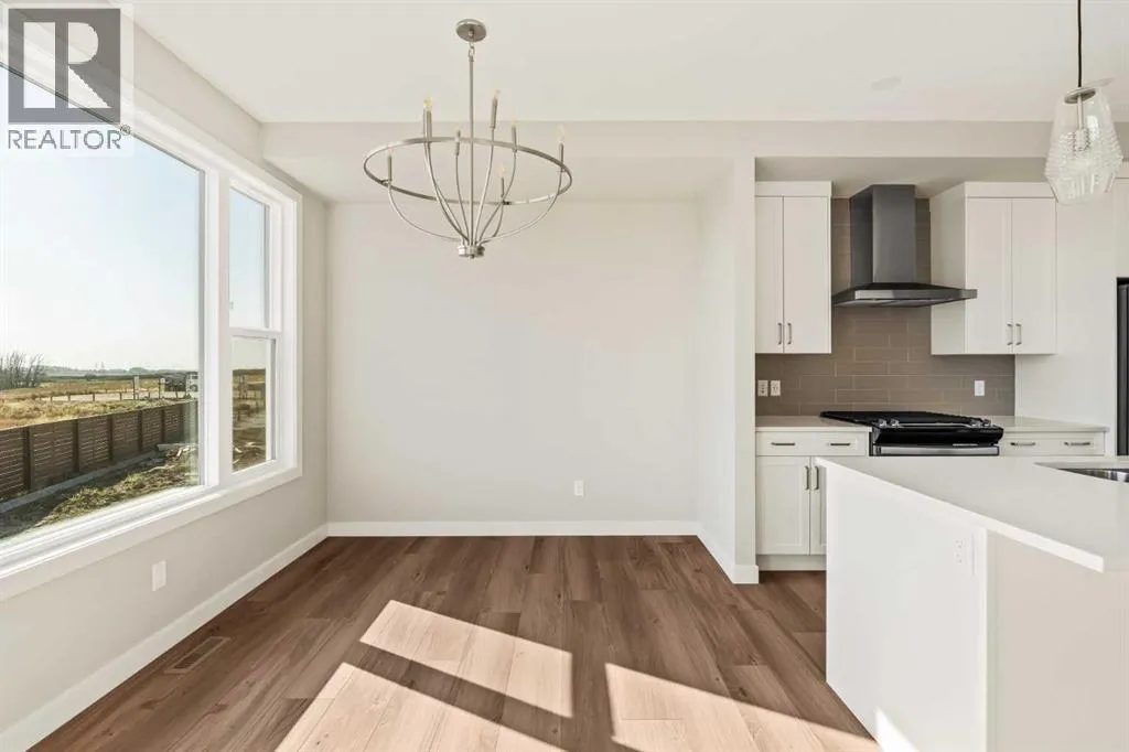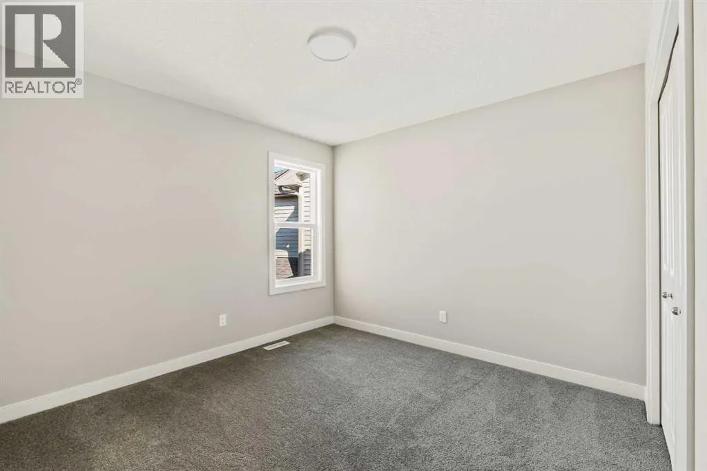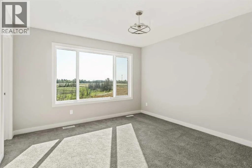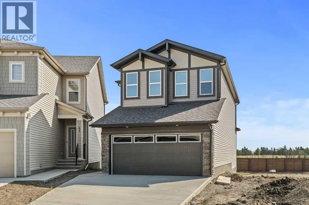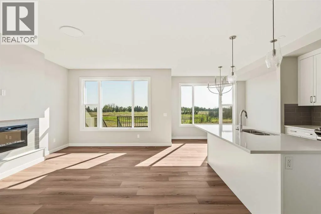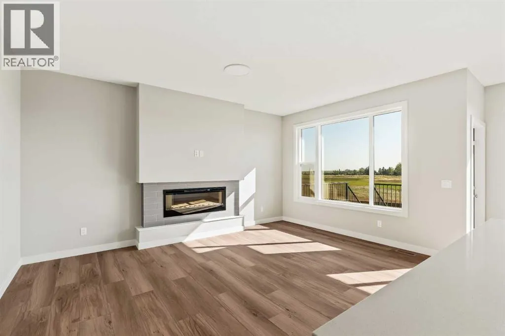 **OPEN HOUSE - SUNDAY, NOVEMBER 16th FROM 1:00-3:00!** An incredible opportunity awaits in this brand-new, move-in ready home on an oversized pie lot in the vibrant new community of Belvedere! Offering nearly 2,100 sq. ft. of beautifully designed living space above grade, plus a full basement with side entrance, this 4-bedroom, 3-bathroom home is ideal for growing families or multi-generational living. The open-concept main floor is both stylish and functional, featuring a central kitchen that seamlessly connects to the living and dining areas - perfect for family gatherings or entertaining. The chefâs kitchen is finished with ceiling-height white shaker cabinetry, timeless subway tile backsplash, quartz countertops, a built-in chimney hood fan, lower microwave, and a spacious pantry. The oversized island provides additional seating and serves as the heart of the home. The bright and inviting living room (~16âx14â) is anchored by a cozy fireplace, while a wall of rear windows floods the space with natural light year-round. From the dining area, patio doors lead to a 12âx10â deck overlooking your private backyard - ready for summer BBQs and outdoor entertaining. Completing the main floor is a bedroom that could be used as a home office space, full bathroom, and a functional mudroom with direct access to the double attached garage. Upstairs, the expansive 14âx18â family room with a wall of windows offers endless possibilities for a media space + home office or playroom. The primary suite is a true retreat with a 5-piece ensuite featuring dual sinks, quartz counters, a tiled walk-in shower, soaking tub, and a spacious walk-in closet with large window. Two additional large bedrooms, a full bath, and a large laundry room complete the upper level. The side entrance provides direct access to the basement, offering future flexibility. With rough-ins already in place, the lower level could be developed into a legal suite (subject to municipal approval) for rental income, or customized into additional living space for your family with ample room for a living space, bedroom and full bathroom. Set on a generous 3,800 sq. ft. pie lot, this home provides plenty of space inside and out. Plus, with full builder warranty and Alberta New Home Warranty, you can purchase with complete peace of mind. Donât miss this opportunity to own a brand-new, move-in ready home in Belvedere - designed with todayâs modern family in mind! (id:27476)