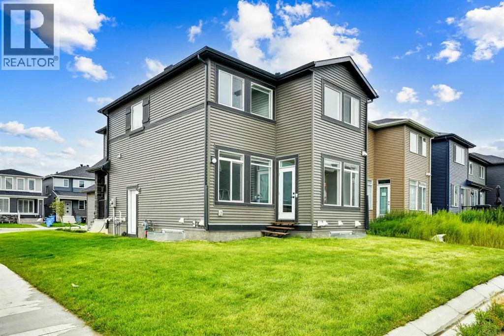 Back on the market due to Financing. Stunning Corner Lot Home with Pond View â 2,738 Sq.Ft. Total Living Space | 6 Bed | 4 Bath | Legal 2-Bedroom Basement Suite | Main Floor Bedroom & Full Bath | Bonus Room | Separate Laundry Up & Down. This beautifully maintained home in the sought-after community of Cornerstone offers a rare combination of style, functionality, and outstanding income potential. Situated on a prime corner lot just steps from the pond and kidsâ playground, this property boasts abundant natural light, thoughtful upgrades, and a legal basement suite for rental income or extended family living. The open-concept main floor features a spacious bedroom with a full bathroom, ideal for guests or multi-generational living, while the bright living area flows into the upgraded kitchen complete with gas stove, large walk-in pantry, and dining space with serene pond and playground views. Upstairs offers a generous bonus room, a luxurious primary suite with a 5-piece ensuite and walk-in closet, plus two additional bedroomsâeach with walk-in closetsâsharing a full bathroom, along with convenient upper-level laundry. The fully developed legal basement suite includes two bedrooms, a full bathroom, a modern kitchen, its own laundry, and a private side entrance. Additional highlights include plentiful parking space, beautiful curb appeal, and a location close to Stoney Trail, Amazon warehouse, CrossIron Mills, and Costco, as well as parks, walking paths, shopping, transit access, and planned community amenities. With its flexible layout and excellent revenue potential, this property is a perfect choice for families and investors alike. (id:27476)