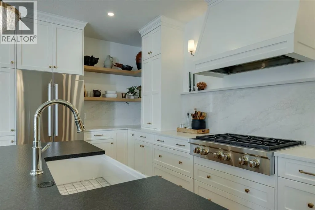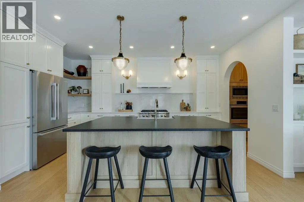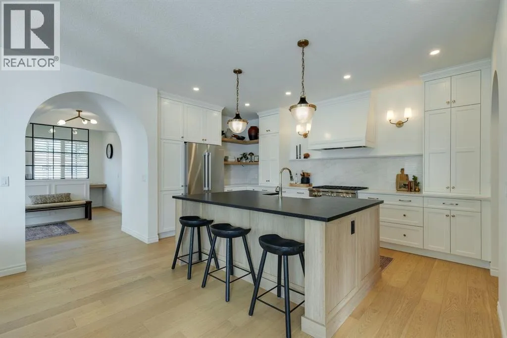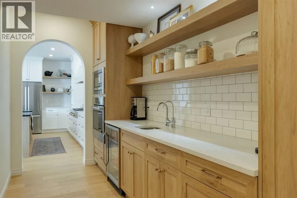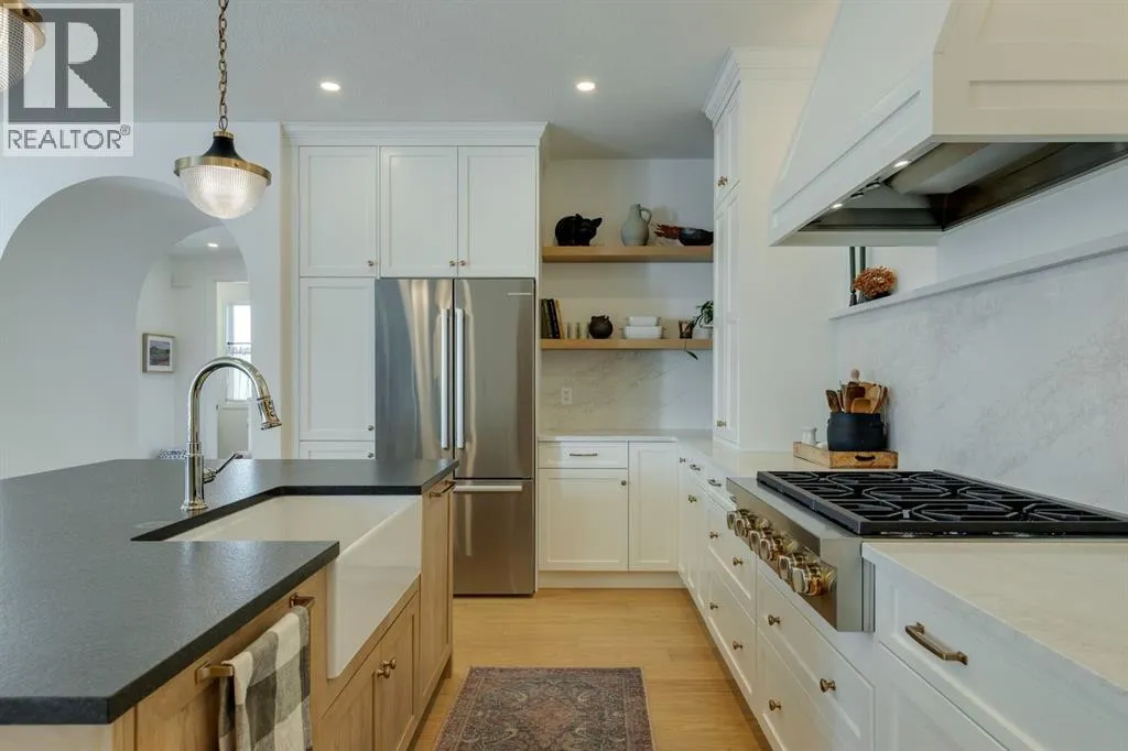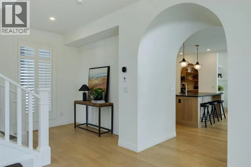Experience timeless elegance in this custom-built family home, ideally located in the heart of West Hillhurst. Crafted with exceptional attention to detail and interiors designed by renowned Bay and Co., this residence blends high end finishes, thoughtful design, and a truly functional layout that feels as welcoming as it is refined. Step into a spacious, light filled foyer and immediately appreciate the quality craftsmanship. A custom glass walled home office sits just off the entry, both a striking design element and a practical workspace. A wide, arched hallway leads into the heart of the home, where sophistication and comfort effortlessly converge. A dreamy kitchen is the centrepiece anchored by an oversized island that invites gathering and connection. Outfitted with premium stainless steel appliances including a Wolf gas cooktop, extensive cabinetry, and sleek counters, itâs a space designed to inspire. An expansive butlerâs pantry with built-in wall oven, microwave, and bar fridge offers ample storage and seamless access to the attached double garage (pre-wired for EV hookup); a rare and coveted inner city feature. The main living area features a cozy yet elegant living room with a gas fireplace flanked by custom built-ins, and a spacious dining area perfect for hosting. Sliding glass doors extend the living space outdoors to a covered patio, complete with an automatic privacy screen, creating a year-round outdoor retreat. Upstairs, the open riser staircase adorned with plush carpeting, leads to a large bonus room, laundry room with sink, 4pc bathroom, and three generous bedrooms. The primary is a true sanctuary, featuring a custom walk-in closet and an indulgent 6pc ensuite with in-floor heat, glass enclosed shower, and deep soaker tub for the ultimate relaxation experience. The fully developed lower level continues the theme of comfort and versatility with heated tiled floor workspace, a spacious rec room, games/exercise area, and a fourth bedroom ideal for guests or teens. Outside, enjoy a peaceful, fenced backyard with lush green space that's perfect for children and pets. Located steps from Helicopter Park, Karl Baker off-leash dog park, the Bow River Pathway, Foothills Hospital, and just minutes to Kensington and the downtown core, this exceptional property offers the ultimate in inner city living. A home where impeccable design meets everyday comfort, come experience the elevated lifestyle this gem has to offer. (id:27476)