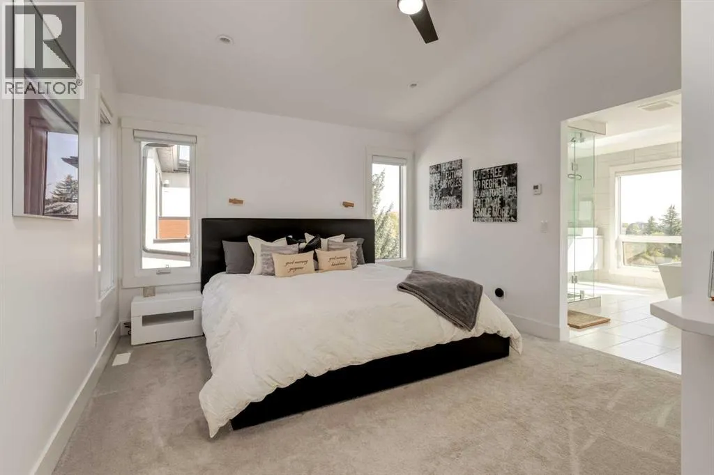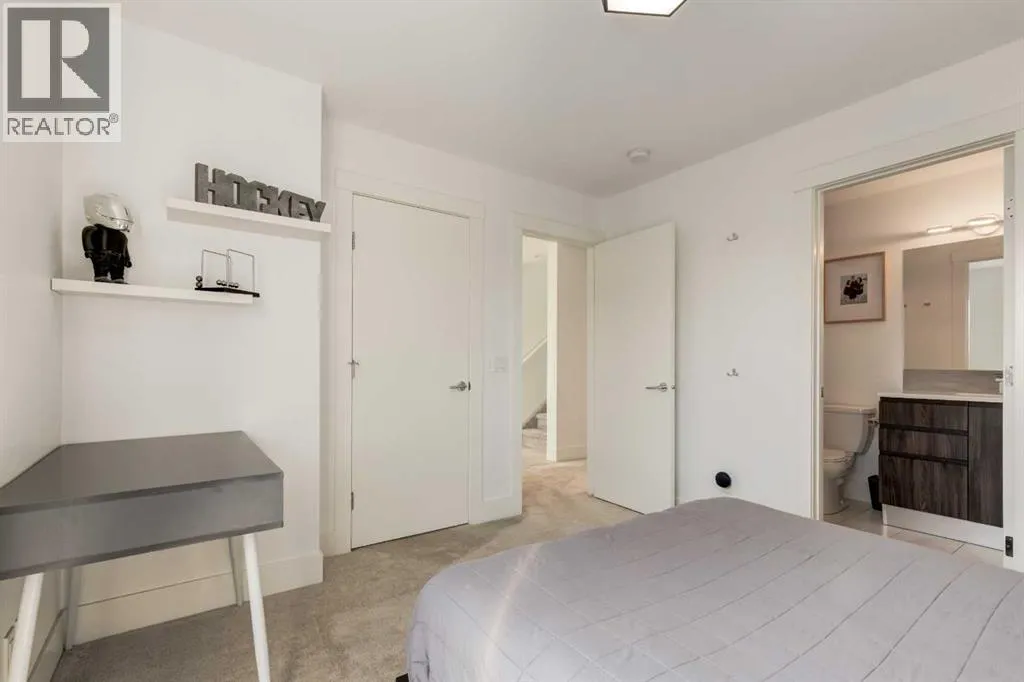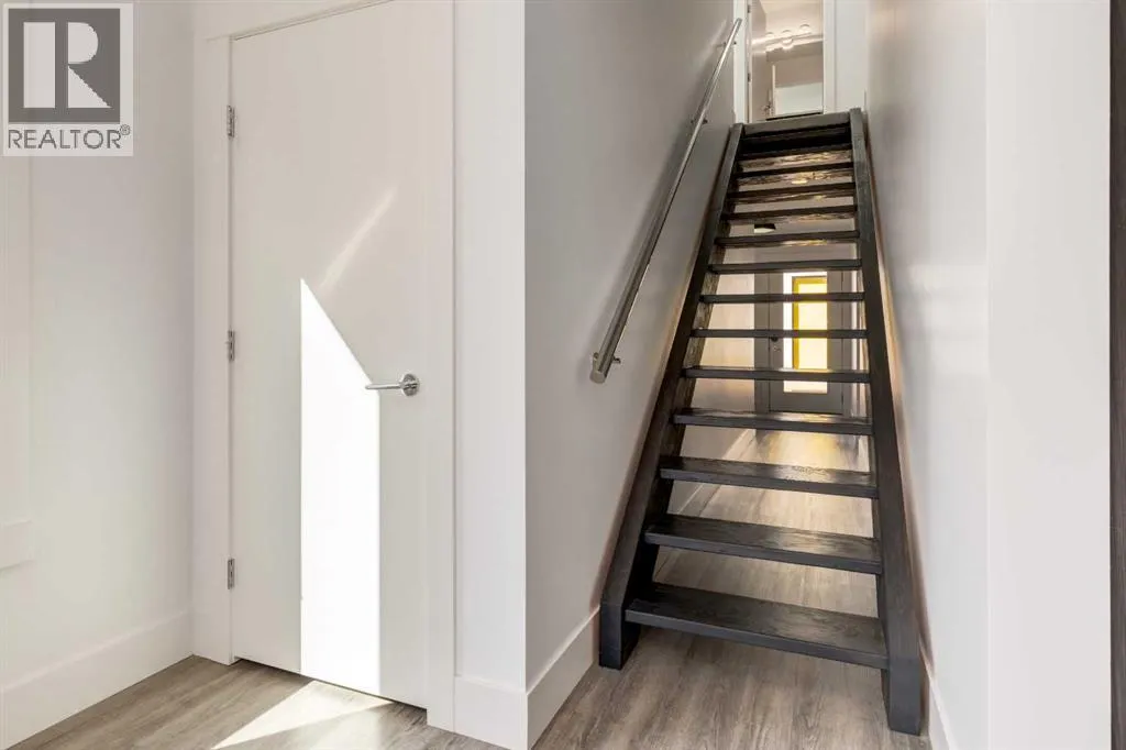 The house with the yellow door⦠we know youâve been wondering about this one. Donât miss the incredible chance to own this modern beauty in the community of Highwood. Set on an extra-wide lot and offering over 2,900 square feet spanning 3 levels and developed basement, the home is thoughtfully designed to maximize light and space. Featuring clean linear lines, neutral tones, and expansive windows that create a calm, airy ambiance, the home features a floor plan that flows effortlessly with sleek finishes, tall ceilings and two dramatic open-to-below spaces illuminated by four skylights. The kitchen showcases understated elegance with functional luxury in the form of stainless steel appliances, gas range, custom soft-close Italian cabinetry and sparkling white quartz countertops with waterfall island. The living space showcases a unique BioFlame fireplace and leads to a 600 square foot deck and professionally landscaped west facing backyard. Upstairs on the second floor, there are 3 bedrooms, one offering a private ensuite complete with heated floors. The abundance of custom built-ins ensures seamless organization. The 3rd floor primary suite feels like a serene spa retreat. The ensuite features in-floor heat, oversized shower, and neutral finishes. The private balcony overlooks downtown views â perfect for watching fireworks in quiet comfort. The legal 1-bedroom/bathroom basement suite is equally refined, featuring a completely separated side entrance, a custom Italian kitchen, radiant floor heating, floating insulated main floor for soundproofing, oversized shower and spacious closet/storage. With current tenants keen to stay, itâs an effortless income generator or multi-generational space. Additional highlights include oversized 22â x 24â insulated garage with 220V EV charging, custom window coverings and USB outlets throughout, high efficiency furnace & hot water tank, roughed-in A/C, and prime east-facing front on a quiet cul-de-sac across from a lush park. Surr ounded by mature trees and top-rated schools (Mandarin, Spanish, French, Catholic, Public, and Foundations for the Future), Highwood is a hidden gem ~ a family-friendly community that grows with you. Confederation Park, outdoor rinks, golf courses, pools, and playgrounds are all nearby, while downtown, SAIT, U of C, and Kensington are just minutes away. With bike paths, major bus routes, and the future Green Line LRT station within walking distance, convenience meets tranquility. A rare opportunity to own a home where peaceful minimalism, design sophistication, and inner-city living intersect. (id:27476)