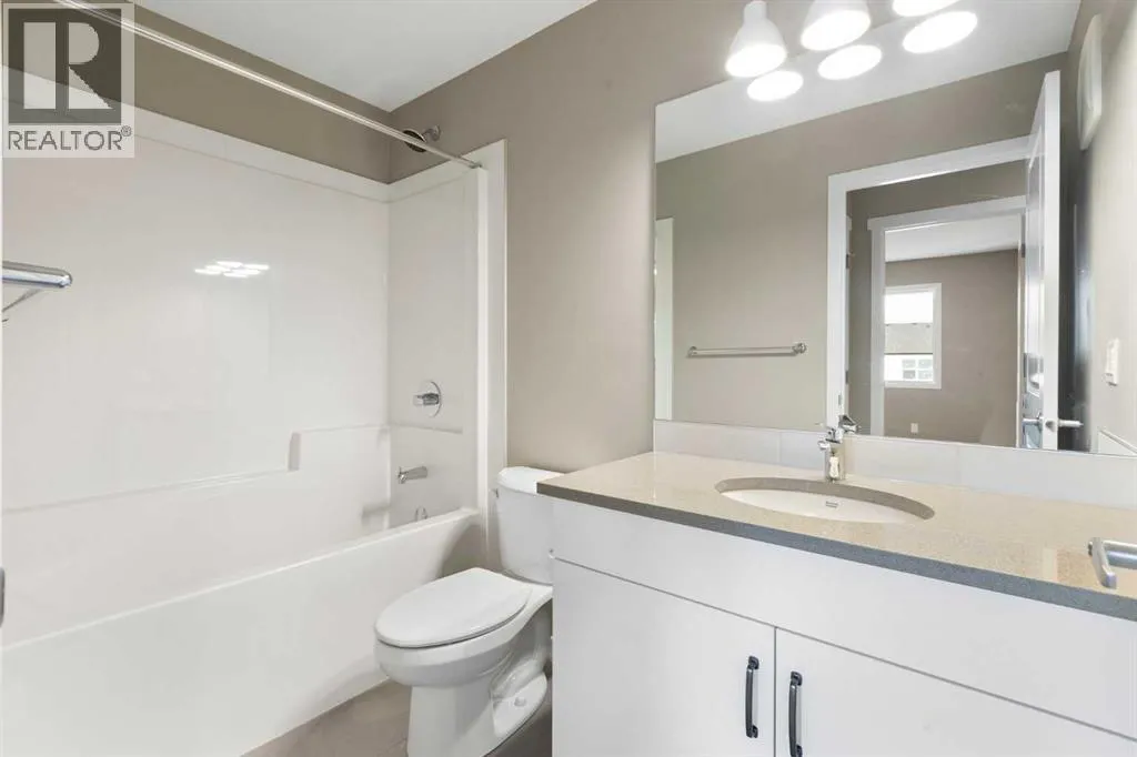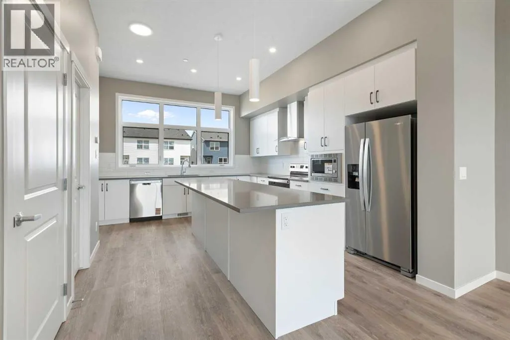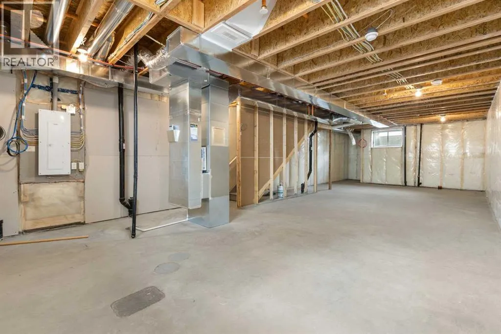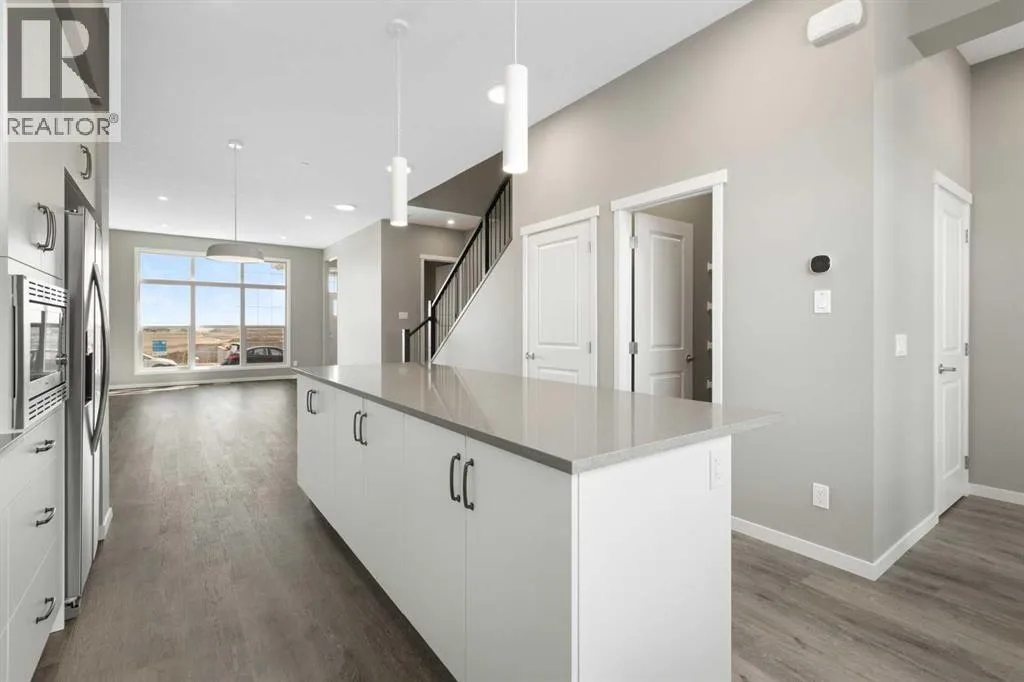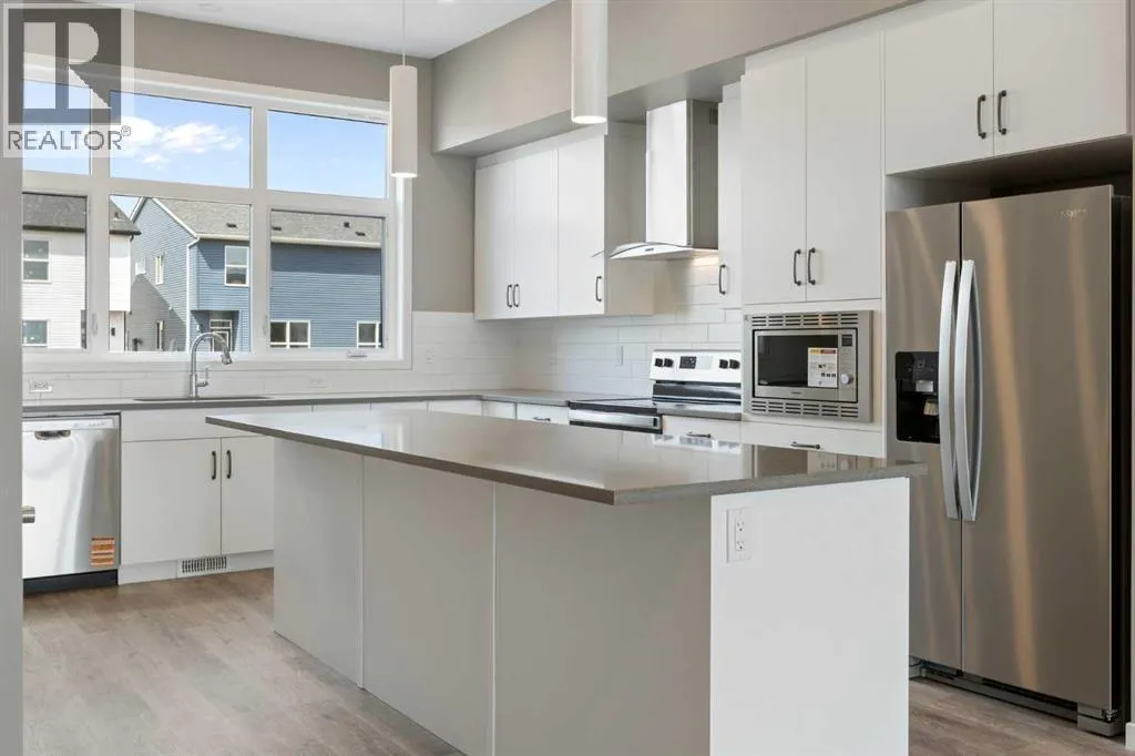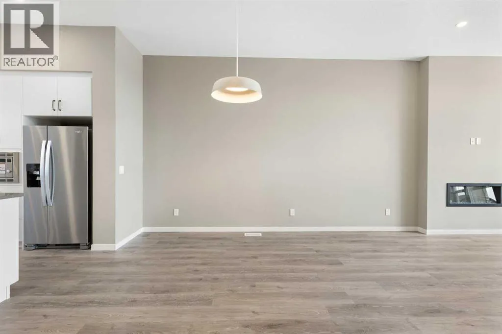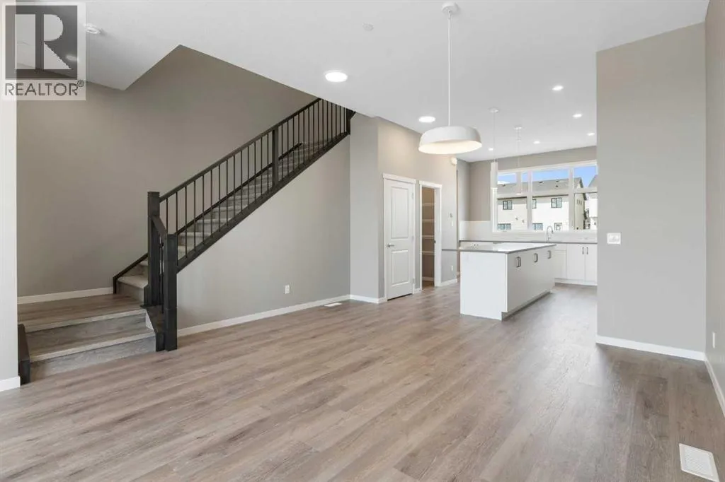 Welcome to this brand-new âLyallâ floor plan, a beautifully crafted home that blends modern style with functional design. From the moment you step inside, youâre greeted by soaring 10â ceilings and warm luxury vinyl plank flooring that flows throughout the main level. At the front, a versatile flex room offers the perfect space for a home office, reading nook, or play area. Moving toward the back, the open-concept living space unfolds with a bright and inviting living room, complete with an elegant electric fireplace, an oversized dining area ideal for family gatherings, and a stunning kitchen that serves as the heart of the home. The kitchen is a true showpiece, featuring timeless white cabinetry extended to the ceiling, quartz countertops, a hammered white subway tile backsplash that wraps around the sleek range hoodfan, stainless steel appliances, and a spacious islandâperfect for both everyday meals and entertaining. Upstairs, a central loft provides a flexible second living space and creates separation between the primary suite and the additional bedrooms. The staircase is highlighted with modern black spindle railing, adding a contemporary touch to the homeâs design. The spacious primary retreat includes a walk-in closet and a spa-inspired 5-piece ensuite with dual sinks. Two more bedrooms, a full 4-piece bathroom, and a convenient upper laundry room complete this level. The fully finished basement adds incredible value with two additional bedrooms, a large rec room, and a 4-piece bathroom. The basement is roughed in for a wet bar and has extra laundryâmaking it an ideal setup for multi generational living, or space for your older children. Located in the growing southeast community of Hotchkiss, this home offers more than just a beautiful interior. Residents here enjoy a family-friendly setting with scenic pathways, green spaces, and quick access to major routes like Stoney Trail and Deerfoot. Youâre also just minutes away from the amenities of Seton, includi ng restaurants, shopping, the South Health Campus, and recreation options. This is your opportunity to own a brand-new, move-in ready home in one of Calgaryâs up-and-coming communitiesâcomplete with a finished basement and high-end upgrades that make it truly stand out. (id:27476)