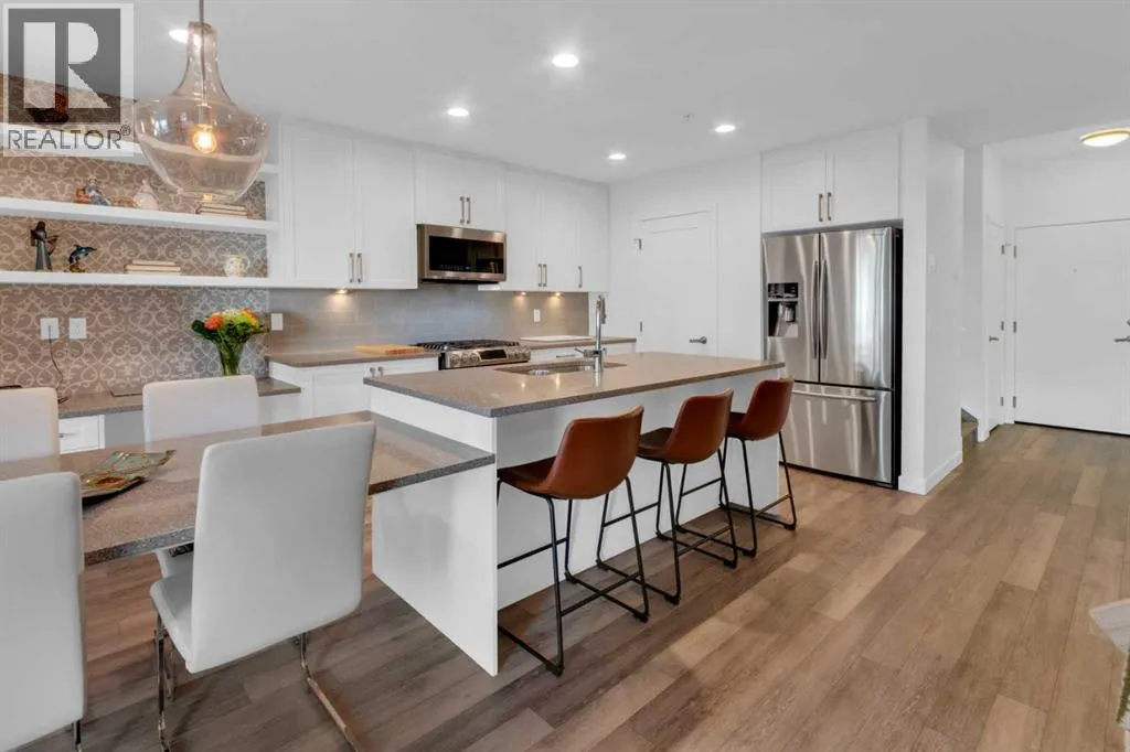 Enjoy modern living in this stunning 2-level, 2-bedroom, 2.5-bathroom home in sought-after West Springs. With 1,310 sq. ft. of thoughtfully designed space, this property blends style and function with 9-ft ceilings, radiant in-floor heating, and luxury vinyl plank flooring throughout. The chefâs kitchen features a gas range, quartz countertops, upgraded stainless steel appliances, a large eating bar, walk-in pantry, and a built-in tech nookâperfect for both daily life and entertaining. The open layout connects seamlessly to the dining and living areas, while two private outdoor spacesâa large 300 sq. ft. ground-level patio and a private balcony off the primary suiteâoffer the ideal setting for morning coffee or summer BBQs. Both bedrooms act as private suites with their own bathrooms and walk-in closets, providing flexibility for family, a roommate, or a home office. The primary retreat is complete with a spa-inspired ensuite and private patio for your own oasis. Pet-friendly and practical, this home includes 2 parking stalls (one heated underground, one above ground) plus a storage locker. Well-managed with a healthy reserve fund, youâll enjoy peace of mind alongside a vibrant lifestyle. Walk to shops, cafés, and restaurants, explore nearby parks and Paskapoo Slopes, or take advantage of the ever-growing West District just minutes away. Only 20 minutes to downtown and an hour to the mountains, this West Springs gem truly checks every box. (id:27476)