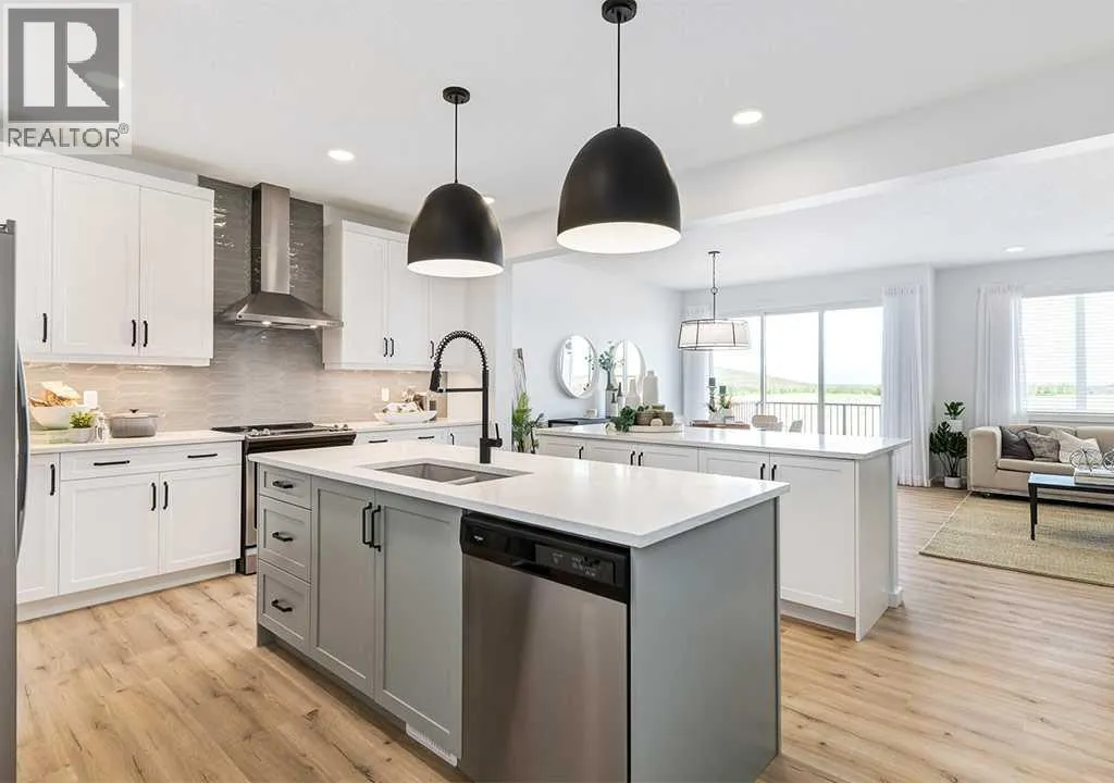 DINNER PARTIES SHOULDNâT FEEL LIKE TRAFFIC JAMS, AND WEEKDAY ROUTINES SHOULDNâT EITHER. Thatâs why this Jefferson model comes with TWO KITCHEN ISLANDSâone for prep, one for gathering. Mornings, coffee lands on one while kids claim the other for cereal and backpacks. Afternoons, homework spreads across one while dinner simmers on the other. And when friends drop by, the conversation flows as easily as the wine, because everyone has space to land without crowding the cook.The rest of the kitchen is just as considered: QUARTZ COUNTERS, 50" UPPER CABINETS, a Silgranit undermount sink, gas line roughed to the stove, and a THREE-PANEL PATIO DOOR that expands the eating nook toward the deck. The living room balances cozy and contemporary with a 50" ELECTRIC FIREPLACE on a full-height bump-out feature wallâthe kind of anchor that makes evenings feel grounded. Around the corner, the mudroom and pantry tuck neatly behind the garage entry so groceries, boots, and sports gear all disappear in a single move.Upstairs, the rhythm shifts to rest and reset. FRENCH DOORS frame the primary bedroom, giving it a sense of arrival. Inside, the ensuite delivers DOUBLE VANITIES, a four-foot GLASS-WALLED SHOWER, and a SOAKER TUB that turns hectic days into quiet evenings. Each of the three bedrooms has its own walk-in closet, and the laundry room is outfitted with a sink rough-in so weekend chores stay on one level. The bonus room stretches wide enough for family movie nights without borrowing from bedroom space.Practical upgrades run through every floor: a 200-amp electrical panel, 8' garage door, sod in the front yard, and a 9' FOUNDATION WITH SIDE ENTRY, LAUNDRY ROUGH-INS, and BAR SINK ROUGH-IN that make the basement ready for future plans. Out back, a 10' X 10'6" DECK invites barbecues and lazy Saturdays, with a gas line roughed in so you can ditch the propane tanks for good.Set in Walden, youâre connected to PLAYGROUNDS, PATHWAYS, AND NEIGHBOURHOOD CONVENIENCES, all while being minutes from Calgaryâs main south corridors. Itâs 2,276 square feet of smart planning, layered upgrades, and everyday easeâready to welcome its first owners this fall. Tour it in person and picture how smoothly your days could run here. ⢠PLEASE NOTE: Photos are of a Showhome of the same model â fit and finish may differ. Interior selections and floorplans shown in photos. (id:27476)