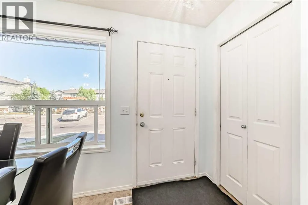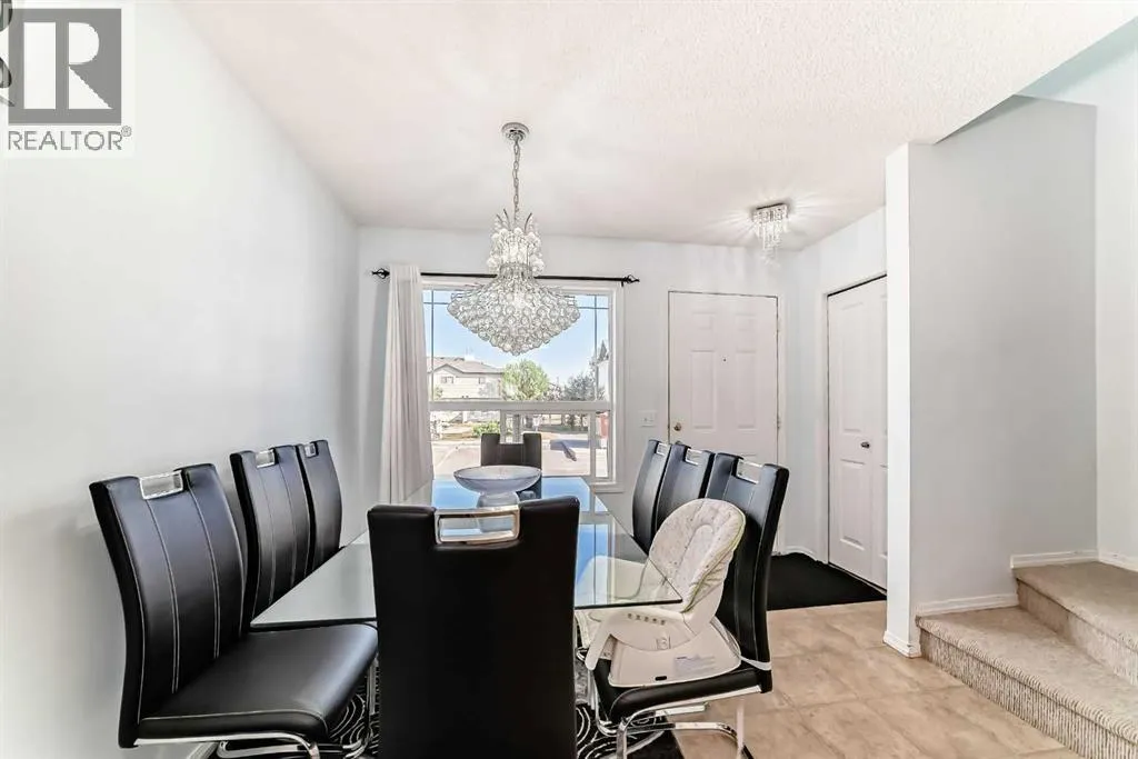 Welcome to this stunning townhouse in Saddleridge, Calgary, boasting 900 + square feet of meticulously designed living space, with an open-concept main floor and the upper floor featuring two spacious bedrooms.The main floor is perfect for entertaining, featuring an expansive living area filled with natural light pouring in through a large window and glass door, leading to a concrete patio. The sleek kitchen is equipped with stainless steel appliances, ample cabinetry and a spacious pantry. A beautifully lit dining area, complete with an elegant chandelier and big windows, flows seamlessly from the kitchen.Two bedrooms and the full washroom is located on the upper floor of the house. The master bedroom boasts expansive window and a spacious double-door closet. The second bedroom is equally impressive, featuring two double-door closets and plenty of natural light coming from window. A full bathroom and an additional storage space complete this floor. The laundry is located in the unfinished basement.The backyard is perfect for spending evenings outdoors , and for children's playing. There is a big concrete patio complete with some trees and area with grass.Conveniently located in the desirable community of Saddleridge, this townhouse offers easy access to schools, parks, walking trails, shopping plazas and Calgary transit. Don't miss out on this incredible opportunity! Book your private showing today. (id:27476)