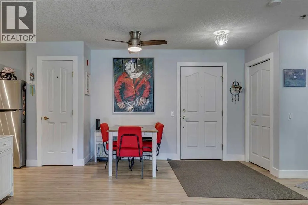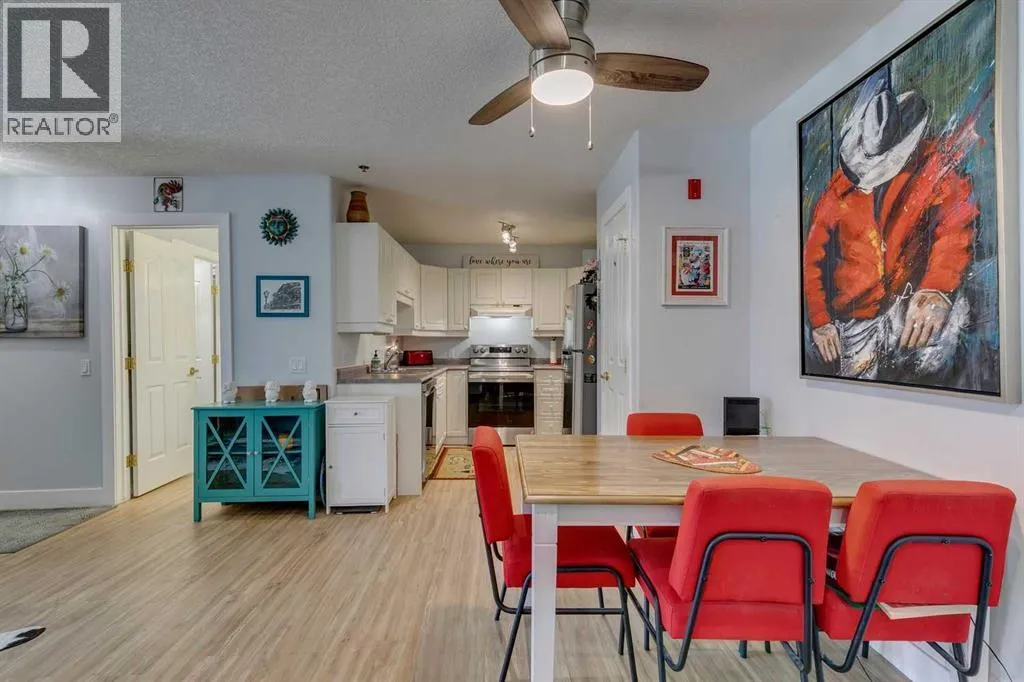 Welcome to Dana Village, where you can enjoy a 'turn key' lifestyle. Quick possession works on this preferred MAIN floor 55+ unit. Signal Hill offers easy access for commuting, LRT, parks and pathways and numerous amenities & services in this well established central community. Heated underground parking stall, carwash, workshop, weekly rides for shopping trips, pot lucks, social activities & exercising/recreation events. Gorgeous central dining hall for residents to enjoy. Covered balcony (west facing) steps out to the beautifully landscaped courtyard and grounds. Patio has a BBQ gas line, room for deck furniture, gardening and ample space for you to read, relax and repeat. Balcony storage room as well as secured caged storage in front of parking stall located near elevator. Unit has been lovingly maintained and updated: newer furnace, Central A/C, efficient Stainless Steel appliances, modern luxury vinyl plank flooring, high end kitchen faucet & bath/light fixtures. Versatile floor plan ( 820 sq. ft.) features 2 LARGE Bedrooms, 3 piece Bathroom, In-suite laundry, full pantry and utility area. Decorated in a modern neutral colour palette. Single floor living, accessibility features to help with mobility ease. Another perk of main floor living is that you can have a dog or cat (board approval) & direct outside access from your balcony. Complex is well managed and ready for those seeking their new chapter in a dynamic, multi faceted setting. Don't miss this opportunity, call and view today! (id:27476)