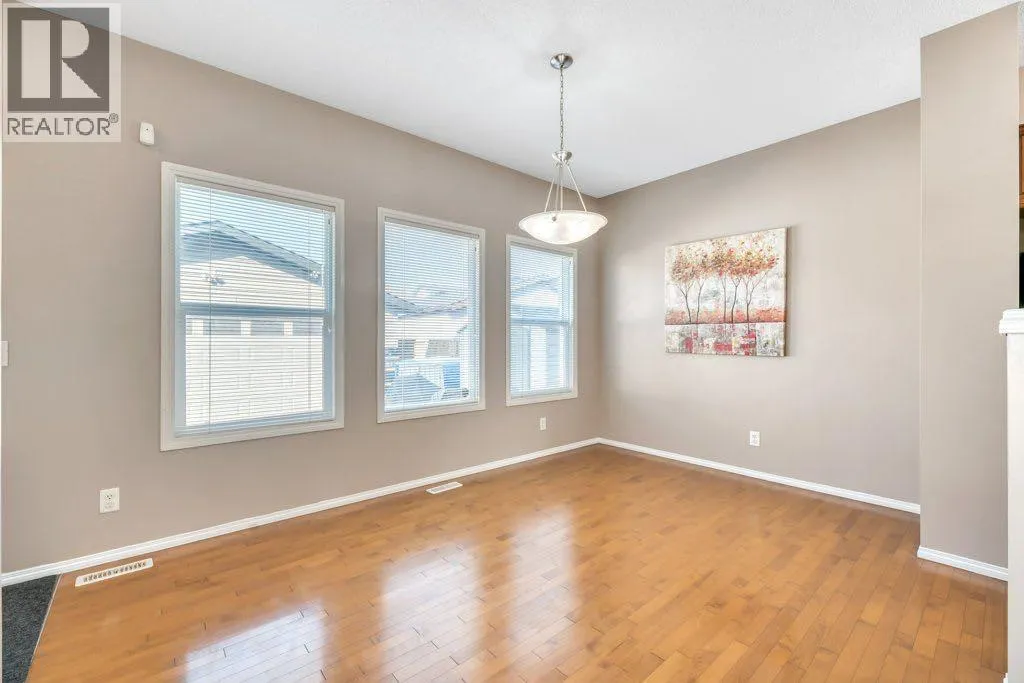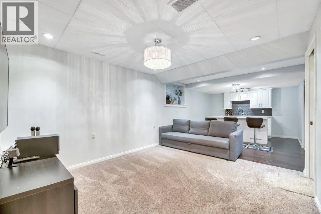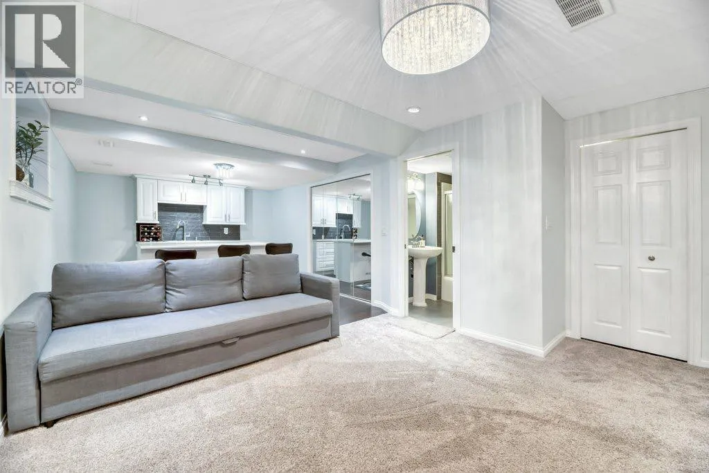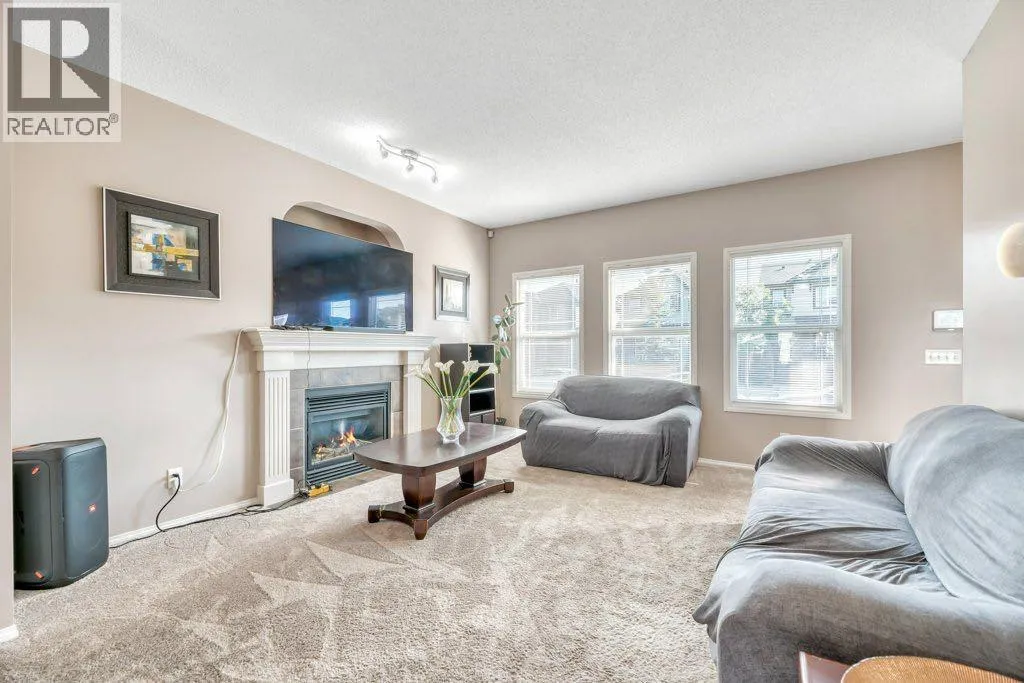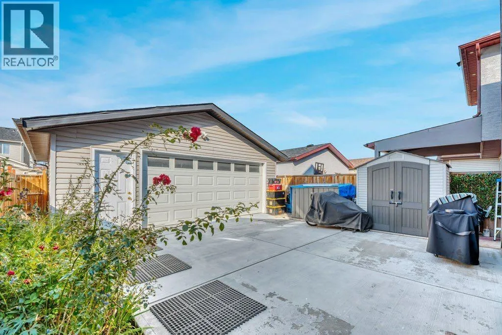 This home beautifully blends elegance with practicality. Tucked away on a tranquil street, it offers a peaceful retreat while keeping you close to the action. Enjoy a short walk to schools, parks, and public transit, including the C-train station.Step inside and be captivated by the expansive living room, where a central gas fireplace and soaring 9-foot ceilings create an immediate sense of grandeur. The kitchen is perfect for both casual meals and entertaining, featuring a raised island with seating for four. The adjacent dining area comfortably accommodates a table for 6-8 guests.Upstairs, the thoughtful layout shines. A vaulted ceiling in the hallway and primary bedroom adds to the open, airy feel, while windows fill the space with natural light. The primary bedroom is a true sanctuary, complete with a walk-in closet and a 4-piece ensuite. Two additional well-sized bedrooms share a full 4-piece bathroom. The laundry is conveniently located right in the hall.The separate side entrance leads to a versatile illegal basement suite, perfect for a rental or extended family. It includes a den, bedroom, 4-piece bath, kitchen, dining area, living room, and plenty of storage.Outside, the backyard is an entertainer's dream, featuring low-maintenance poured concrete with space for gardening. The oversized double garage has two garage doors that open to the backyard, providing extra covered space for gatherings when needed. This property is packed with thoughtful features and upgradesâitâs a must-see! (id:27476)