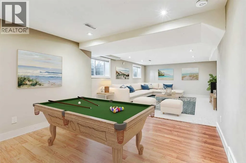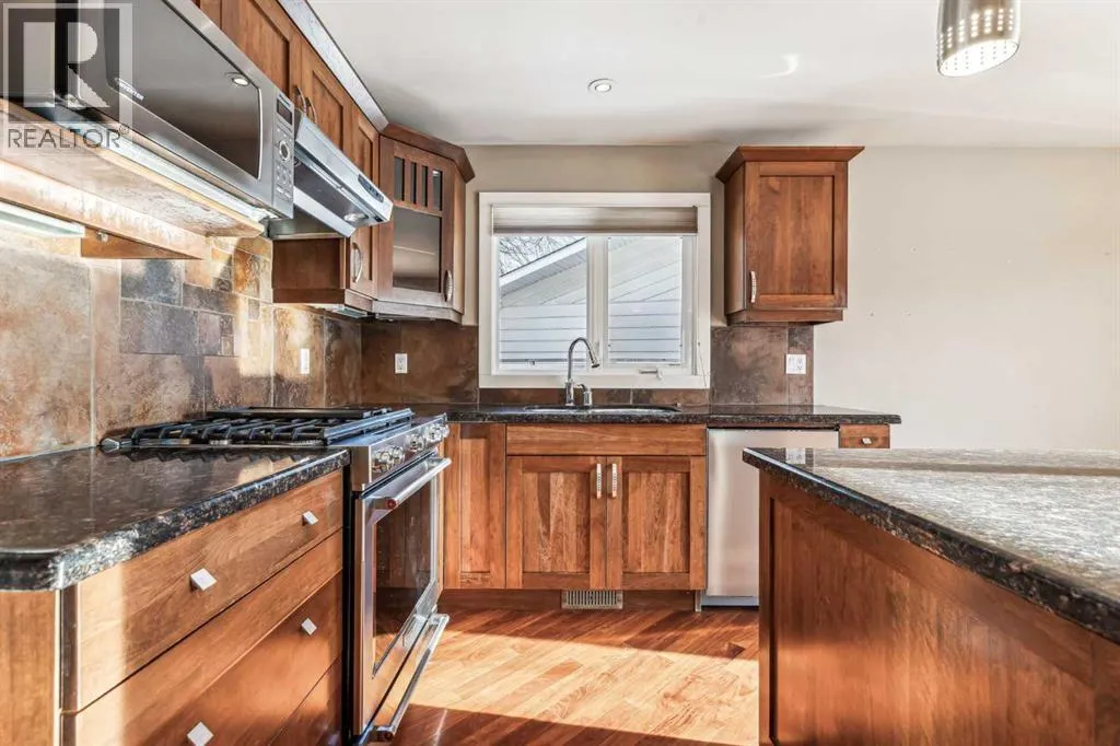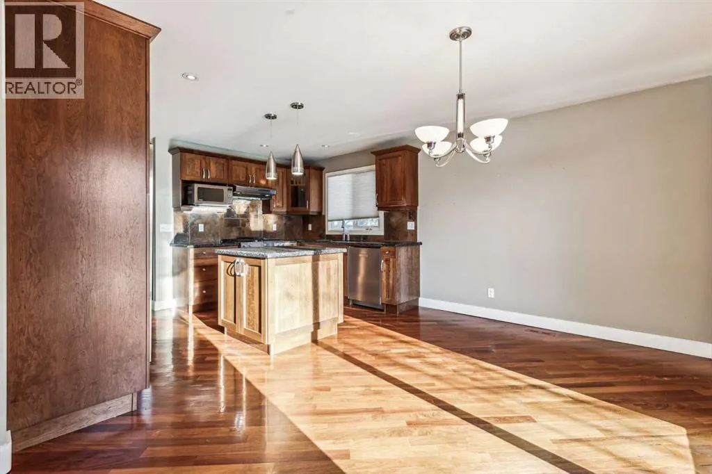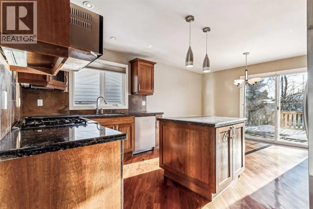 This stunning Lakeview bungalow sits on a spacious corner lot with 79 feet of frontage and 6265 total square feet. The main floor features a bright and airy living room flooded with light from the large bay window, and from the adjacent double glass patio doors leading from the kitchen and large dining room out to the wrap around deck and bbq area. This home with its gleaming hardwood floors has the perfect layout for entertaining, flowing effortlessly from the inviting living room with a large gas fireplace, into the spacious dining room. The kitchen boasts high end cabinetry, gorgeous granite counter tops, a large island, and plenty of storage. Down the hall youâll find two of the home's three bedrooms. The primary is generously sized, featuring a 5 piece ensuite with a double vanity, jetted tub, and elegant finishes. The second bedroom also offers plenty of space, and a large closet. A second 4 piece bathroom completes the main level. The finished lower level has a separate entrance, allowing for a potential suite, (subject to approvals and permitting from the city of Calgary). There is an extremely large family room, ideal for movie nights, and with ample room for a pool table or home gym. This level features the home's third bedroom, as well as a den. The bedroom is bright and spacious with vinyl plank flooring, and plenty of natural light through a large window. The unfinished laundry room provides additional storage, and plenty of room for potential customization. The property has an expansive yard and a large wrap around deck. This beautiful home, located in a coveted neighbourhood on a generously sized corner lot, offers exceptional value. It has potential for development or for a suite conversion. It is also an amazing opportunity for a family to just move in and start making memories. Call to book your private viewing. (id:27476)