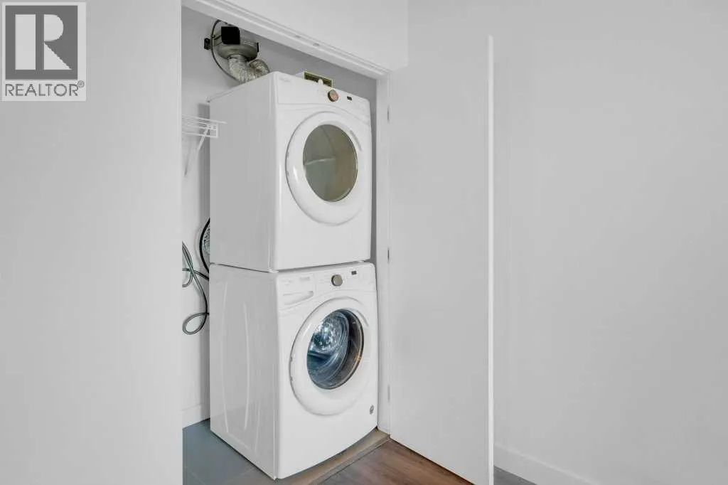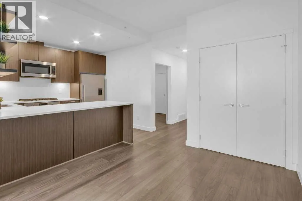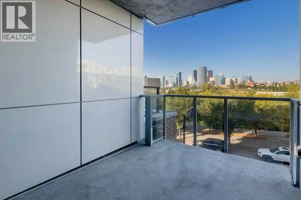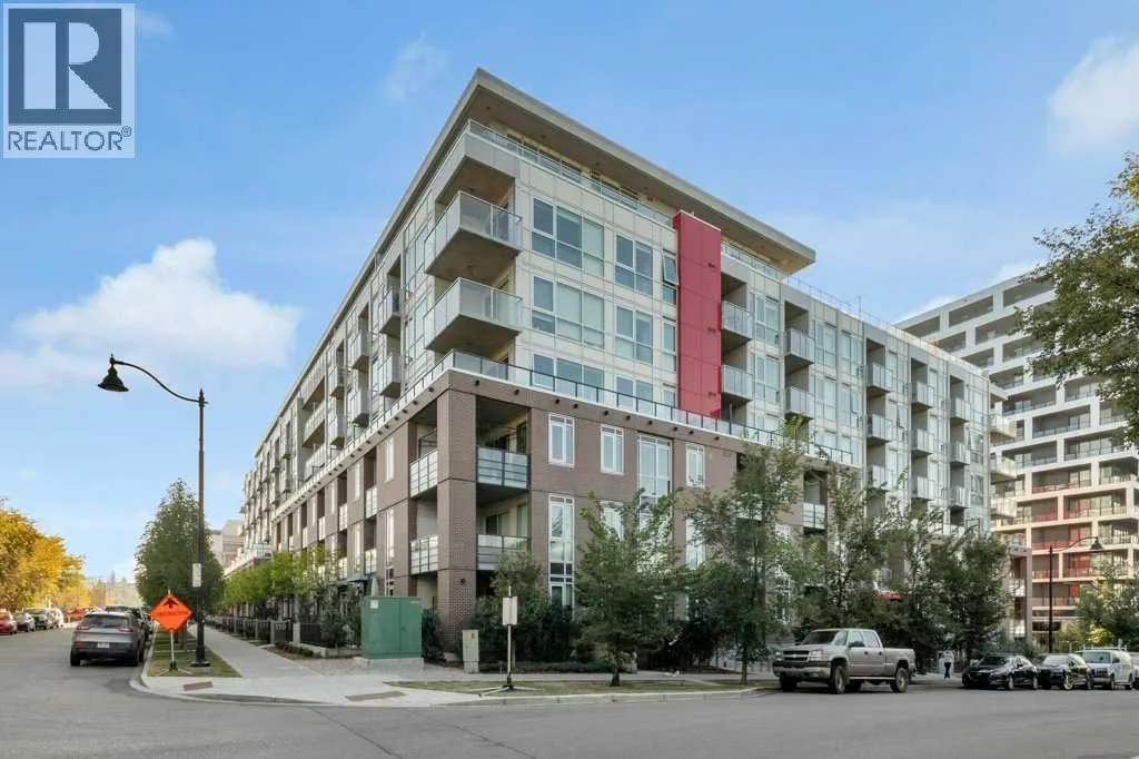Welcome to Radius in Bridgeland, a modern, trendy, concrete, pet-friendly building! This west-facing 2 bedroom, 2 bathroom condo offers 634 sq ft of modern living space and features an unobstructed view of Murdock Park across the street and downtown view! Thoughtfully designed condo with open-concept living. The kitchen features modern cabinetry, quartz countertops, breakfast bar seating and sleek premium stainless steel appliances including a gas cooktop. Private balcony facing Murdoch Park with BBQ gas hook-up Bright, west-facing primary bedroom with ensuite bathroom, and 2nd bedroom with it's own bathroom across the hall. Vinyl plank flooring through main living space and 2nd bedroom, carpeted primary bedroom, and tiled bathroom floors. In-suite laundry, underground titled parking stall and an assigned storage locker included. Radius is a LEED Platinumâcertified, concrete building built by Bucci withs many amenities including daytime concierge, several fitness facilities including 2 gyms, bike studio, & yoga studio, massive rooftop patio with gardens and modern furniture, bike storage room, bike workshop, dog wash & grooming area, and car wash. Steps to parks, pathways, shops, transit and all that Bridgeland has to offer, this is the perfect blend of inner-city living and trendy living space. Very well run stylish building in a great urban location check this one out! Up to 2 pets allowed with no size restriction! (id:27476)